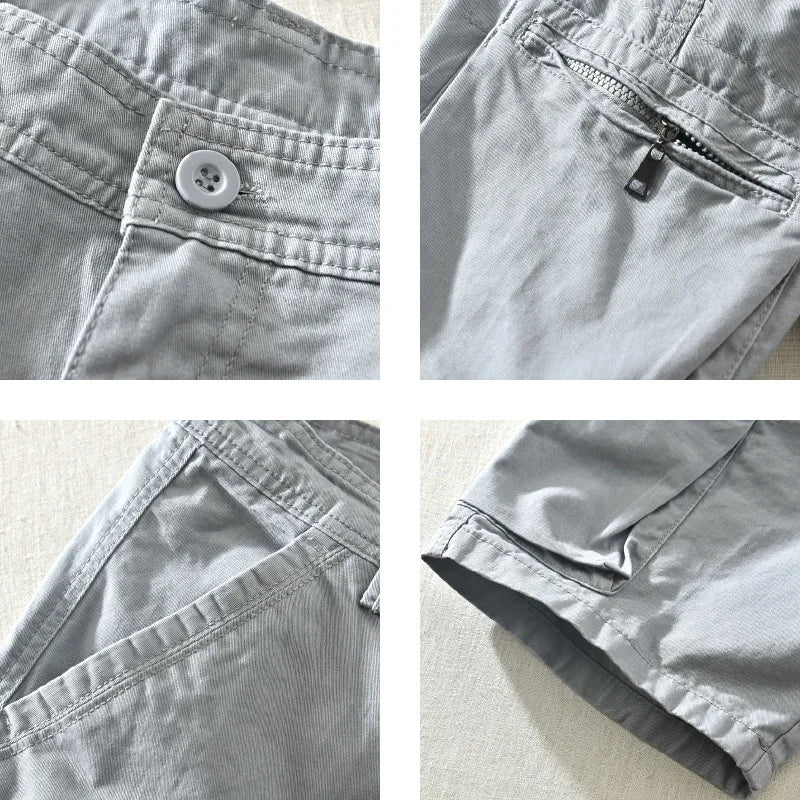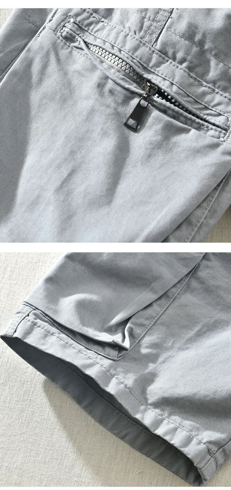 BONSIR - Summer Male Cargo Five Point Pants Fashion Men's Workwear Versatile Pure Cotton Washed Multi Pocket Shorts Pants