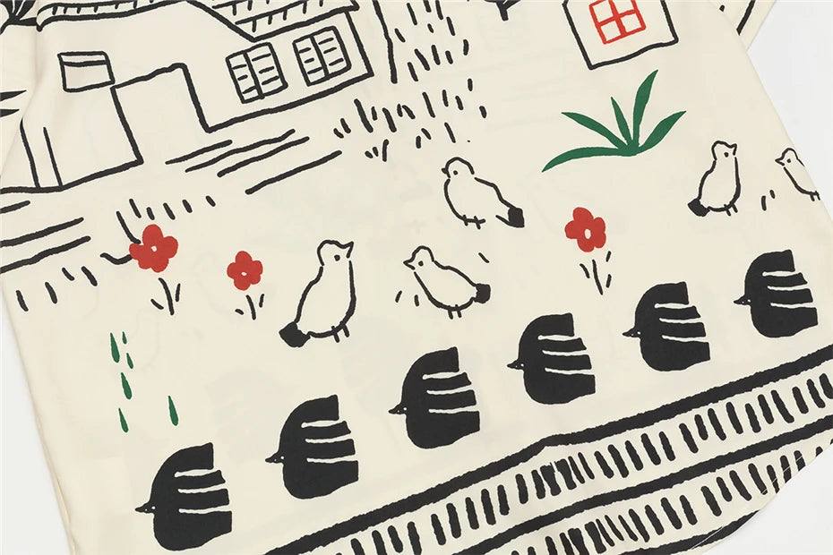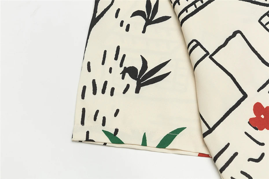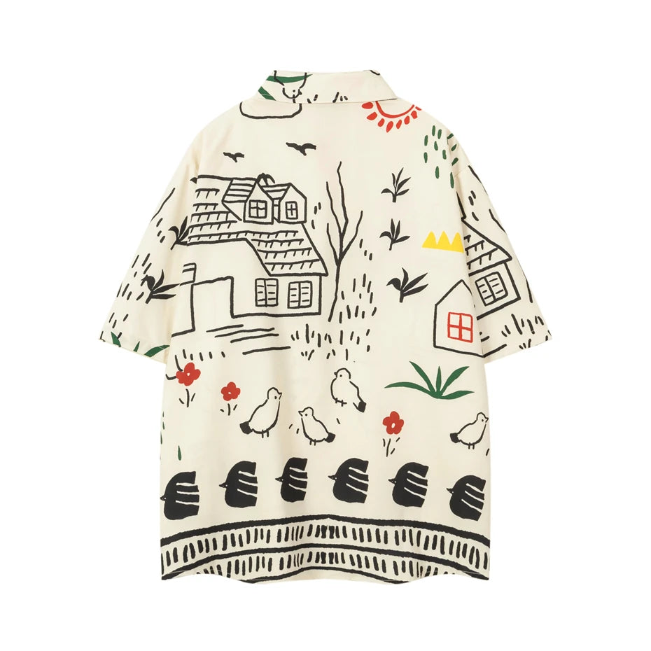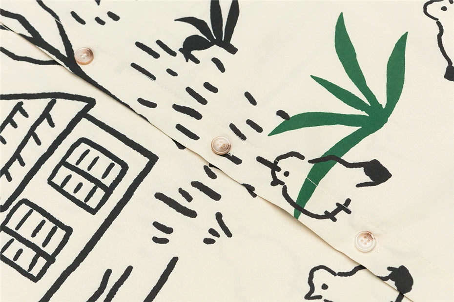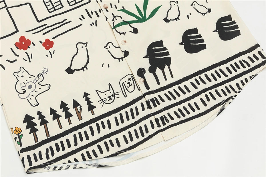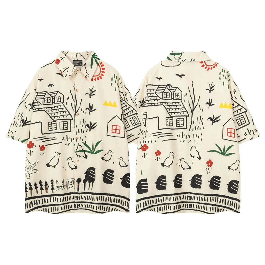 BONSIR  -  Summer Mens Hawaiian Beach Shirt Vintage Cartoon Graffiti Hawaii Blouse Men Harajuku Streetwear Fashion Casual Aloha Shirts Male