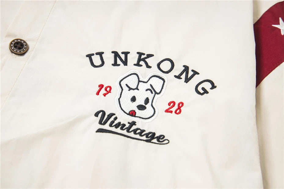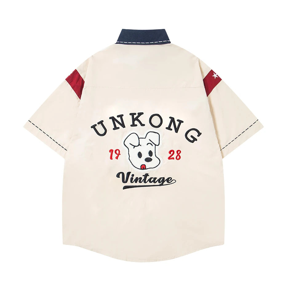 BONSIR - Summer Mens Splicing Short Sleeve Shirts Hip Hop Stars Embroidered Patch Blouses Harajuku Streetwear Casual Fashion Loose Shirts