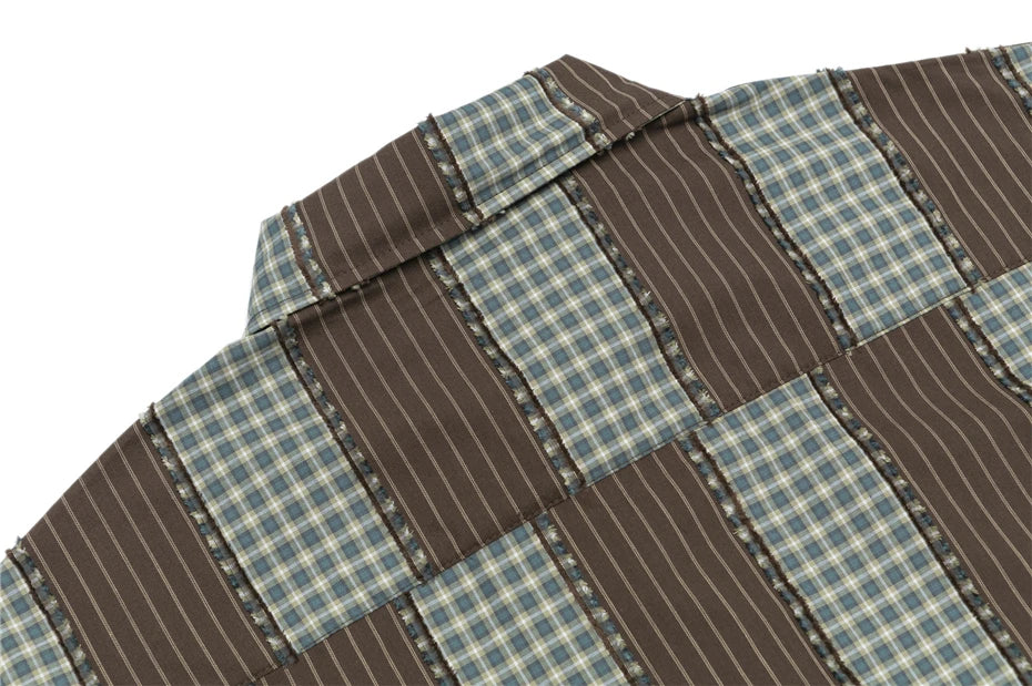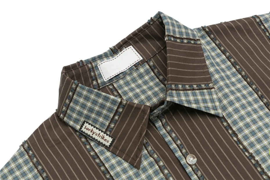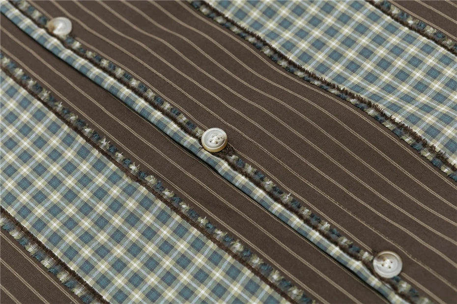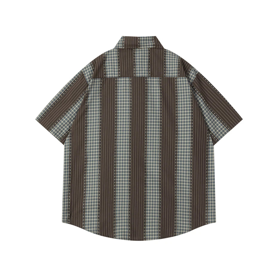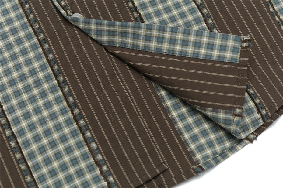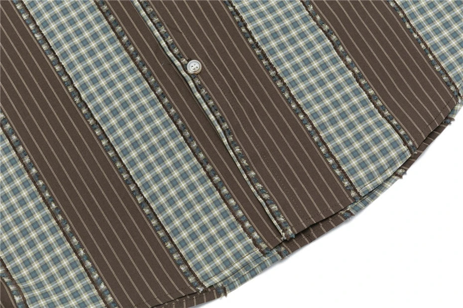BONSIR - Summer Mens Striped Shirts Hip Hop Patchwork Cactus Embroidery Blouses 2025 Harajuku Streetwear Casual Fashion Loose Shirts