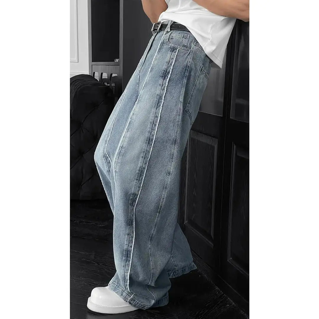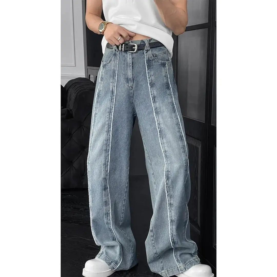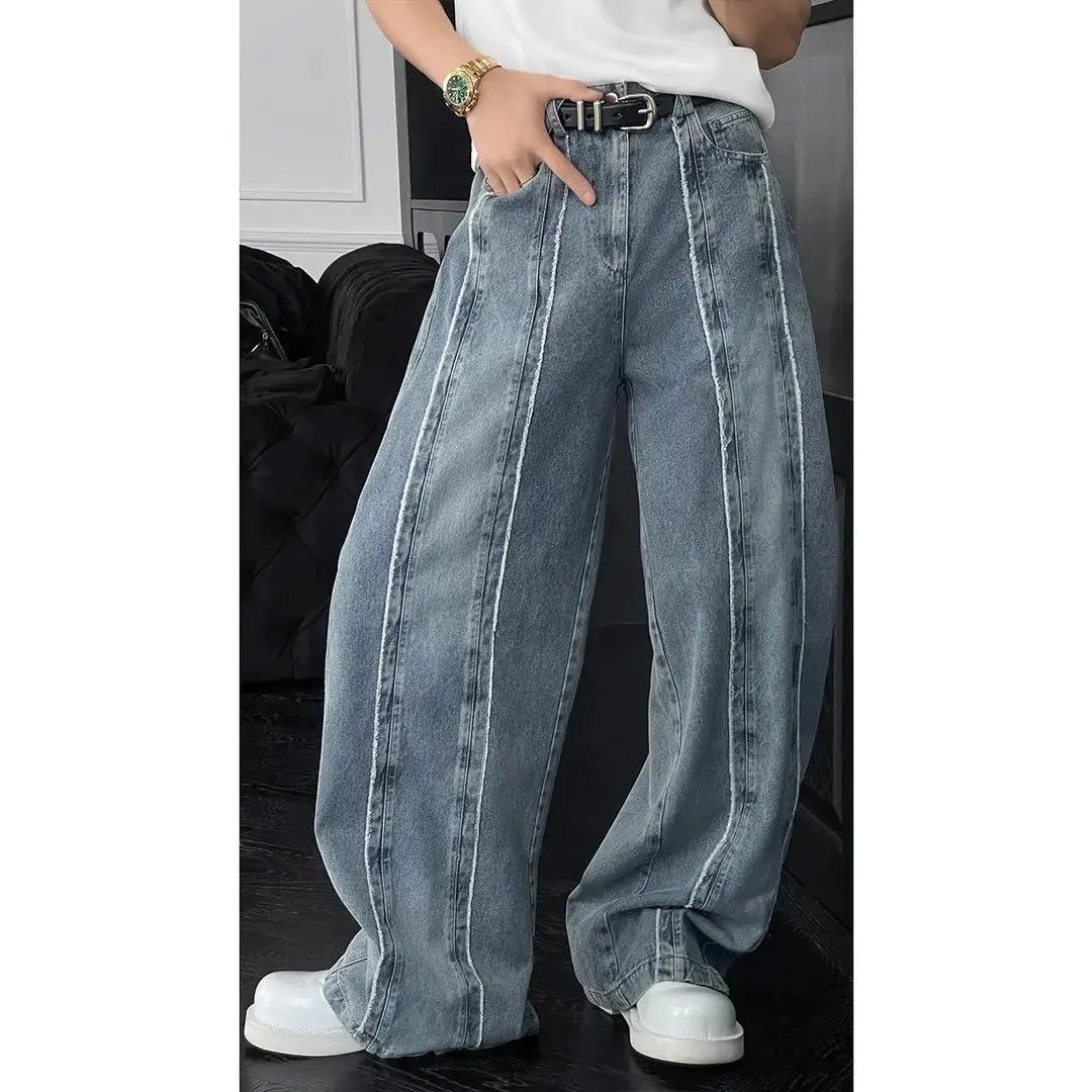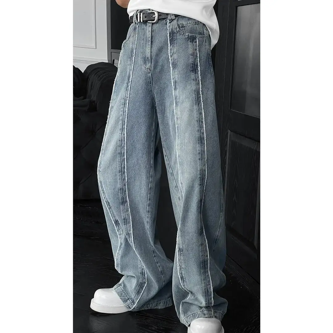 BONSIR - summer new style American retro splicing design three-dimensional scimitar versatile loose denim trousers