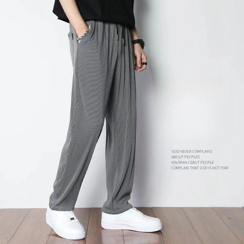 BONSIR - Summer Straight Pants Men's Loose Thin Section Drape Ice Silk Pants Wide Leg Sports Pants Casual Pants Fits
