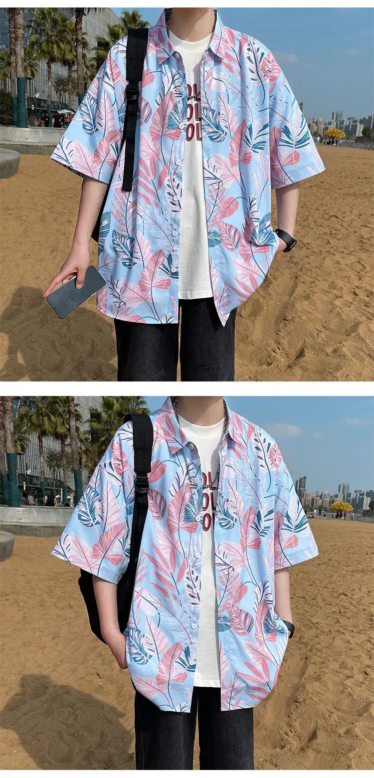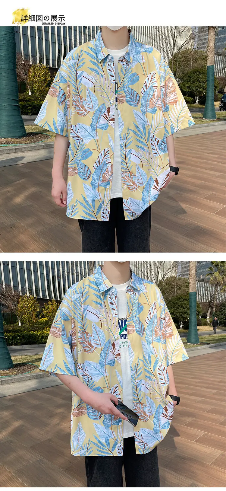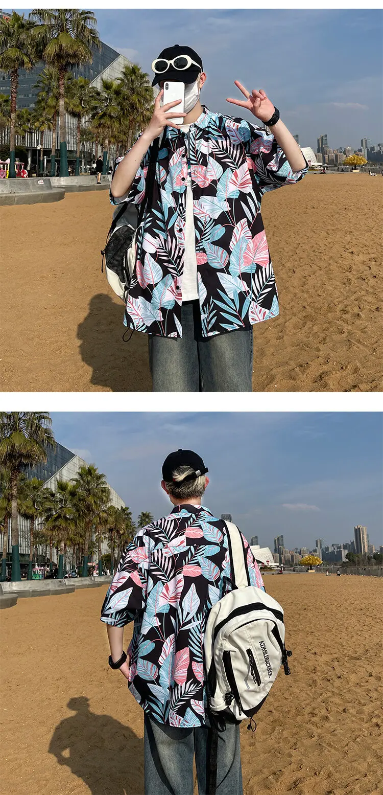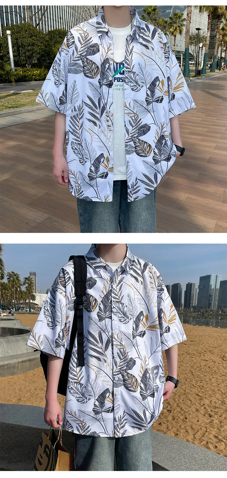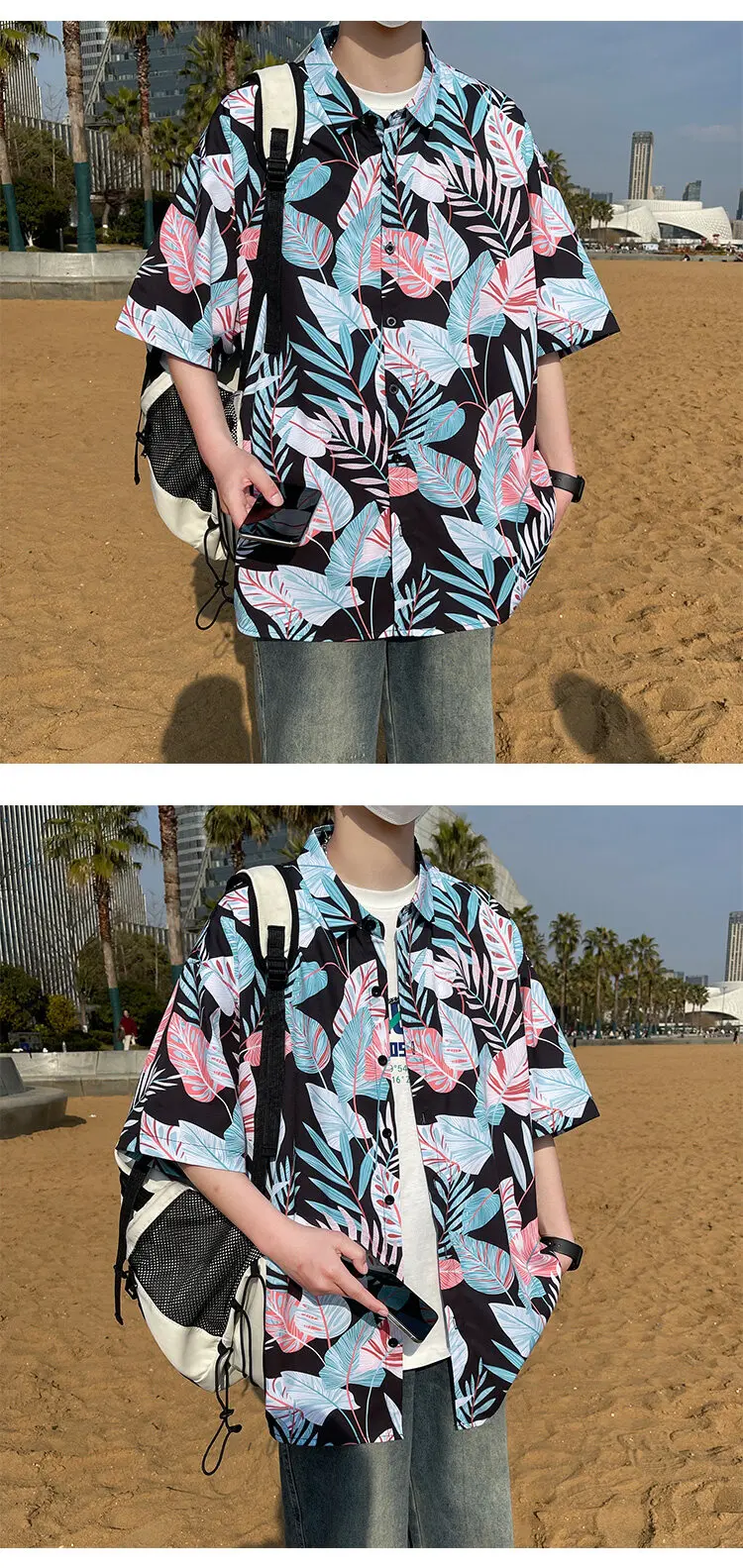 BONSIR - Summer Tropical Plants Printed Men's Shirts Hawaiian Beach Short Sleeved Man Floral Shirt Plus Size Loose Mens Blouse Streetwear
