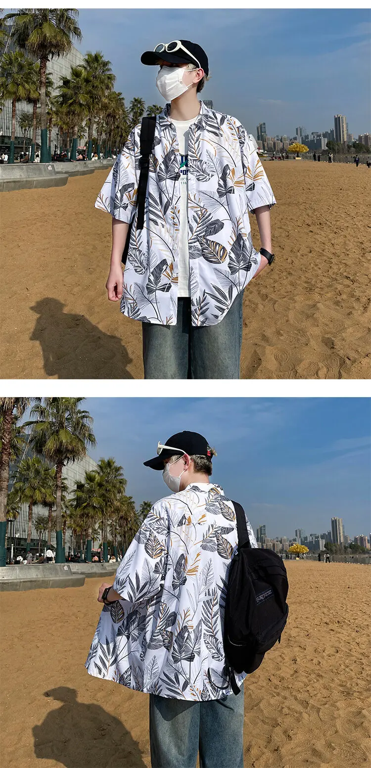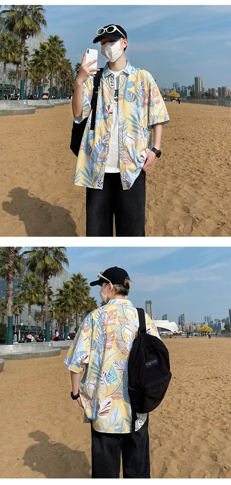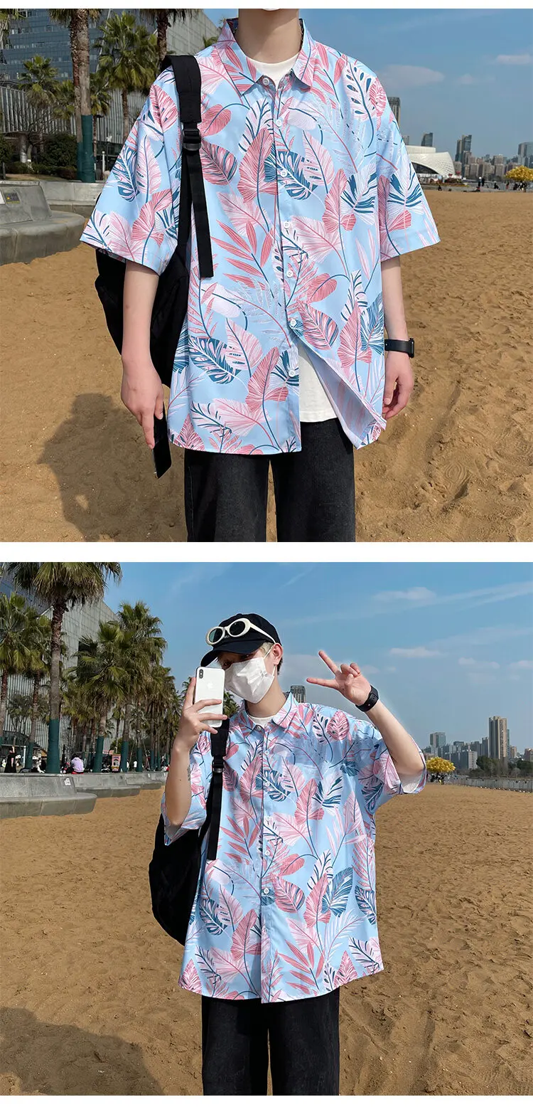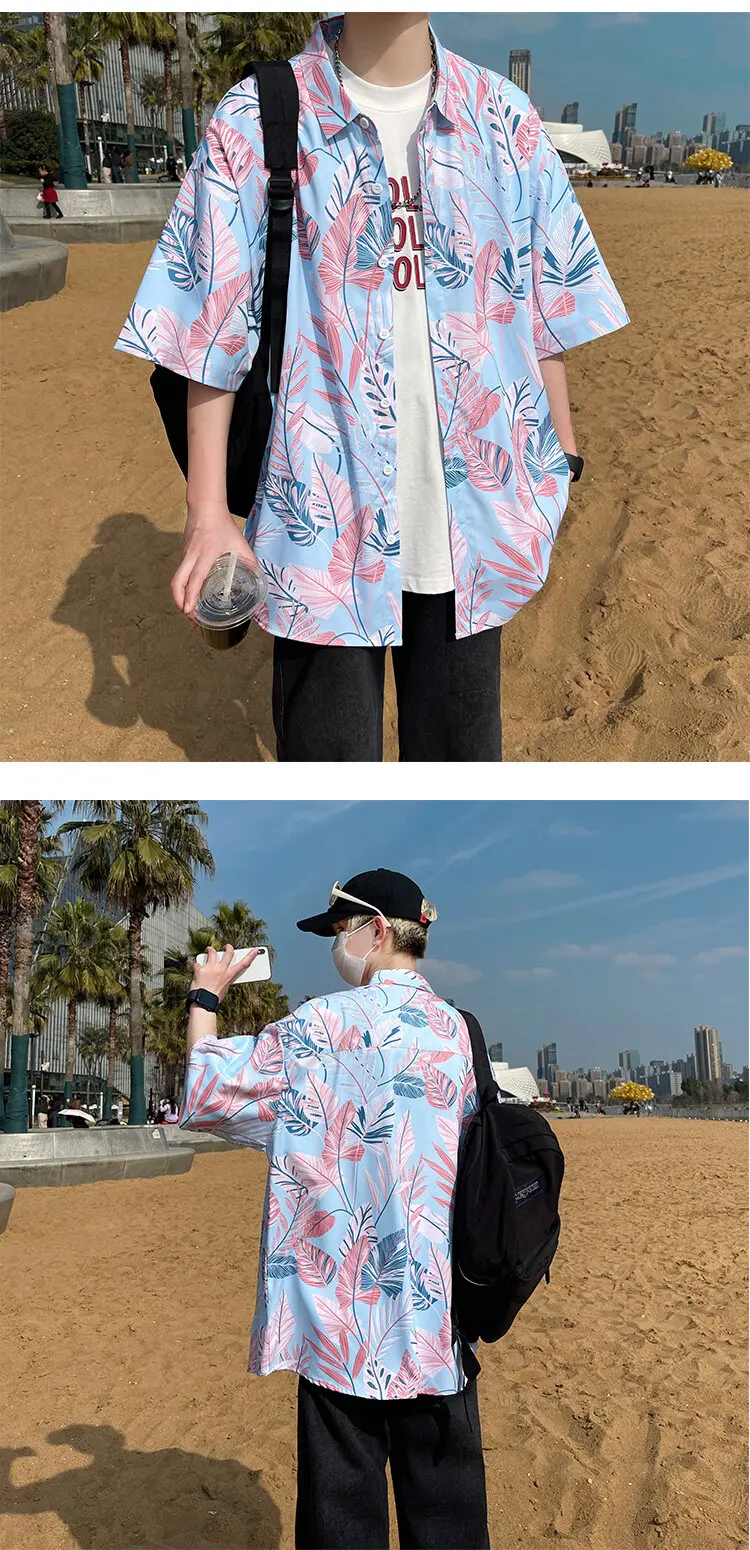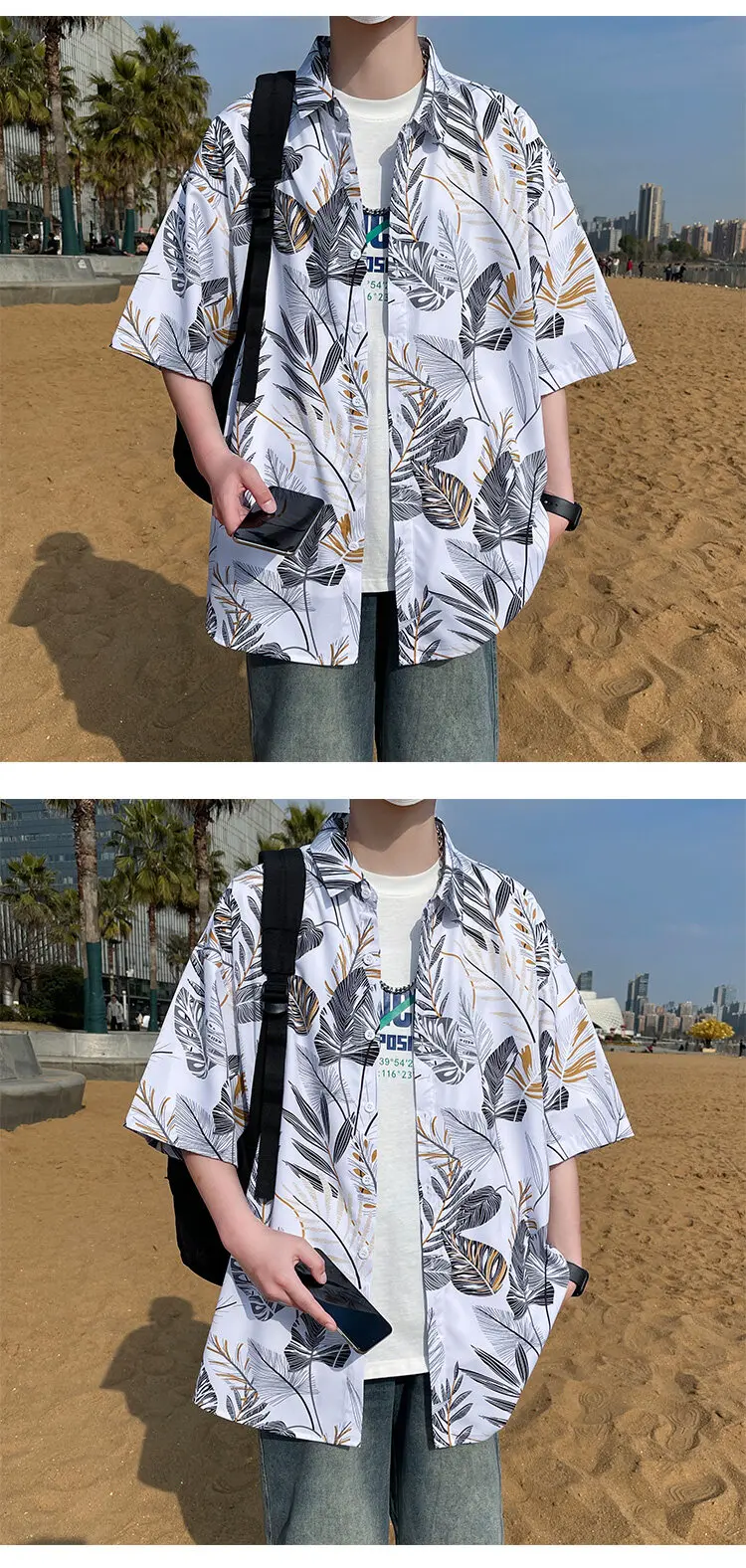 BONSIR - Summer Tropical Plants Printed Men's Shirts Hawaiian Beach Short Sleeved Man Floral Shirt Plus Size Loose Mens Blouse Streetwear