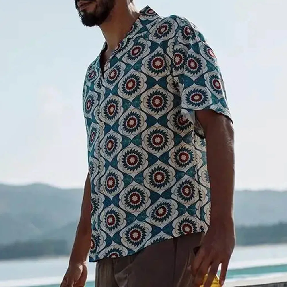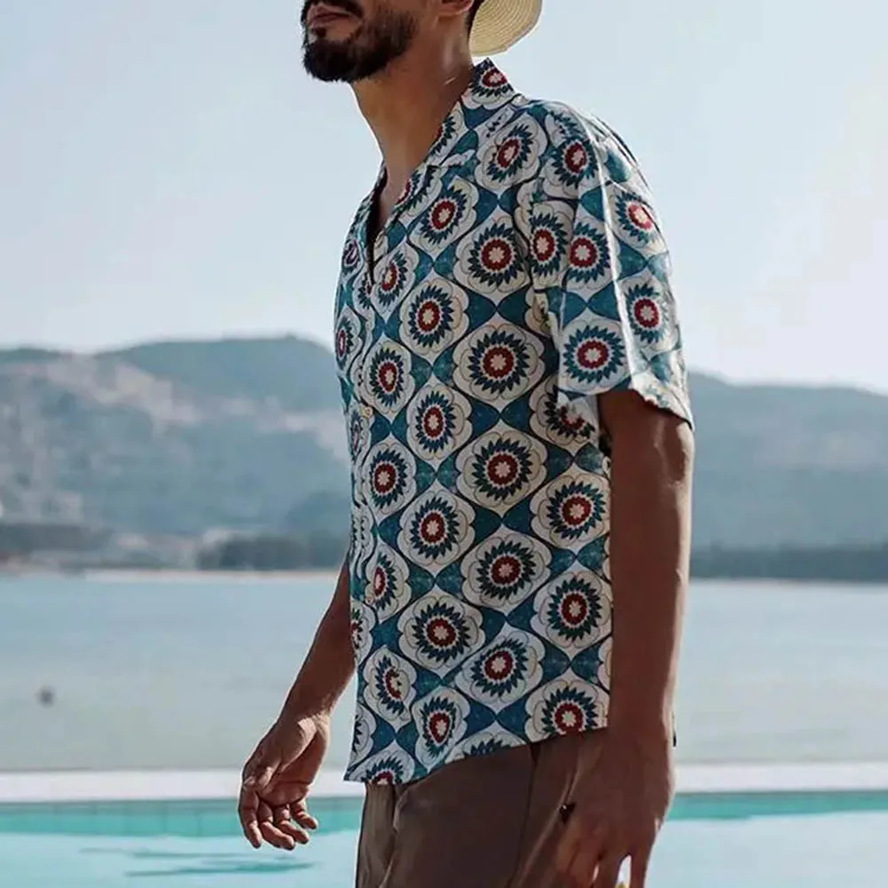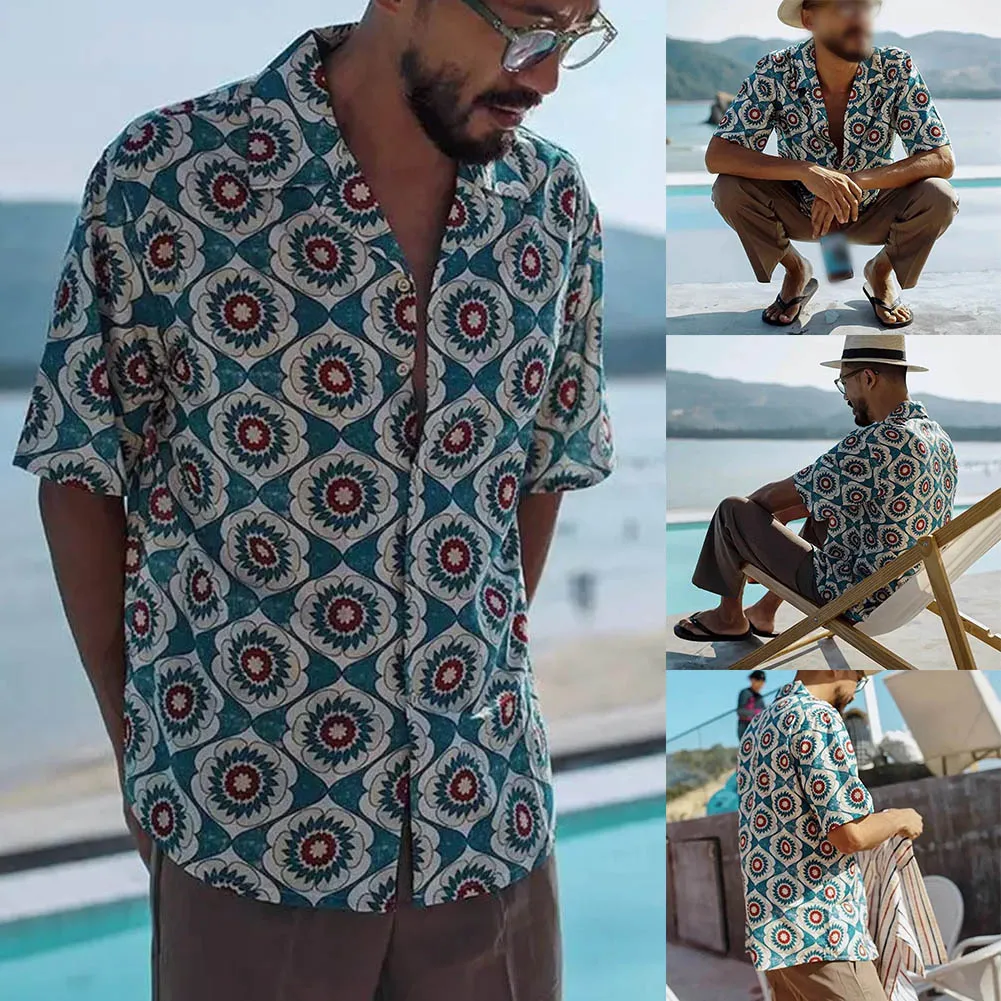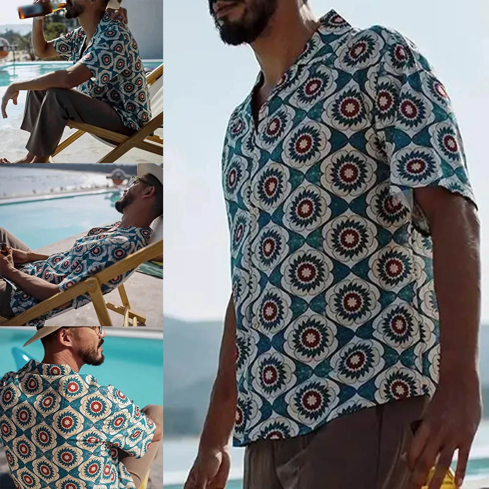 BONSIR - Y2K Shirt Shirt Floral Printed Summer Casual Tops Daily Vacation Floral High Stretch Holiday Lapel Men Polyester