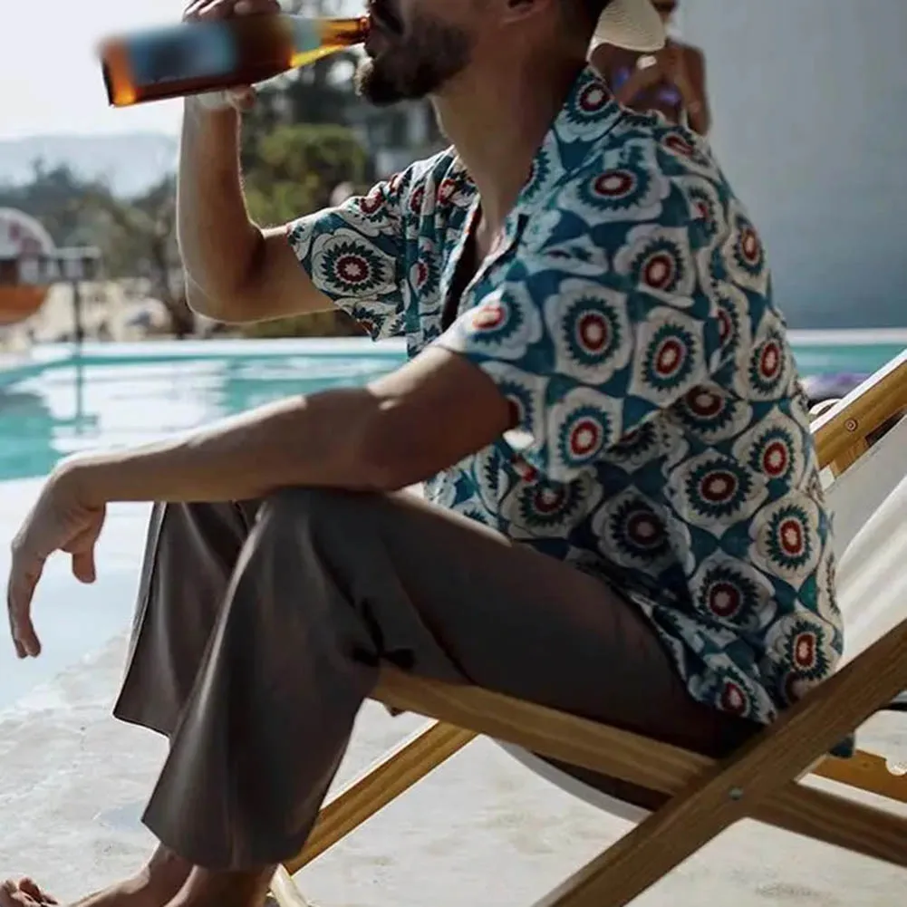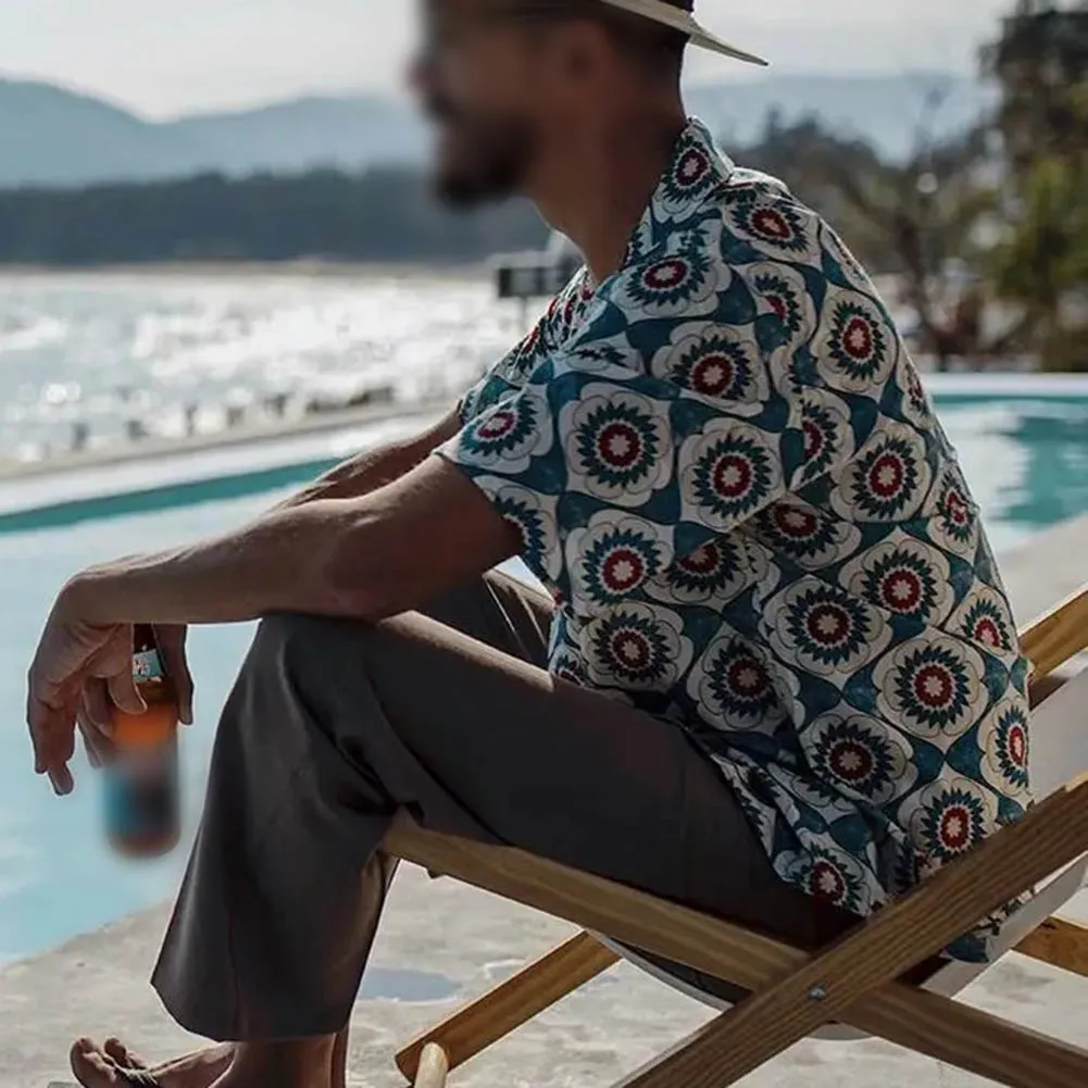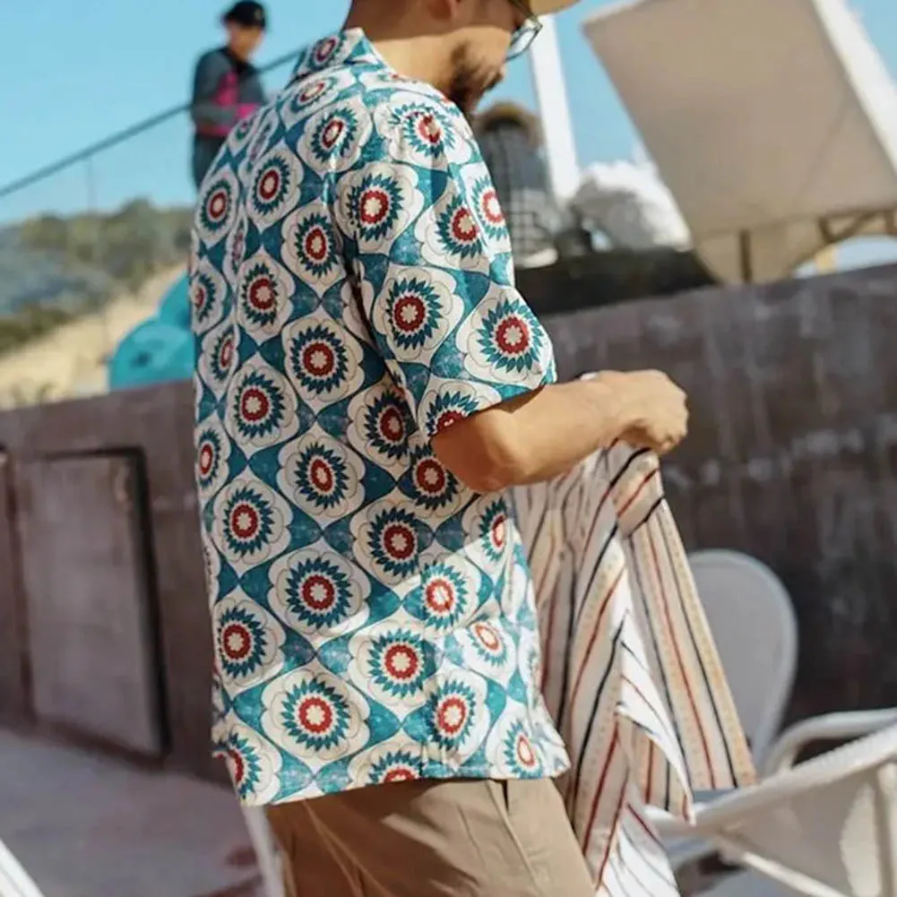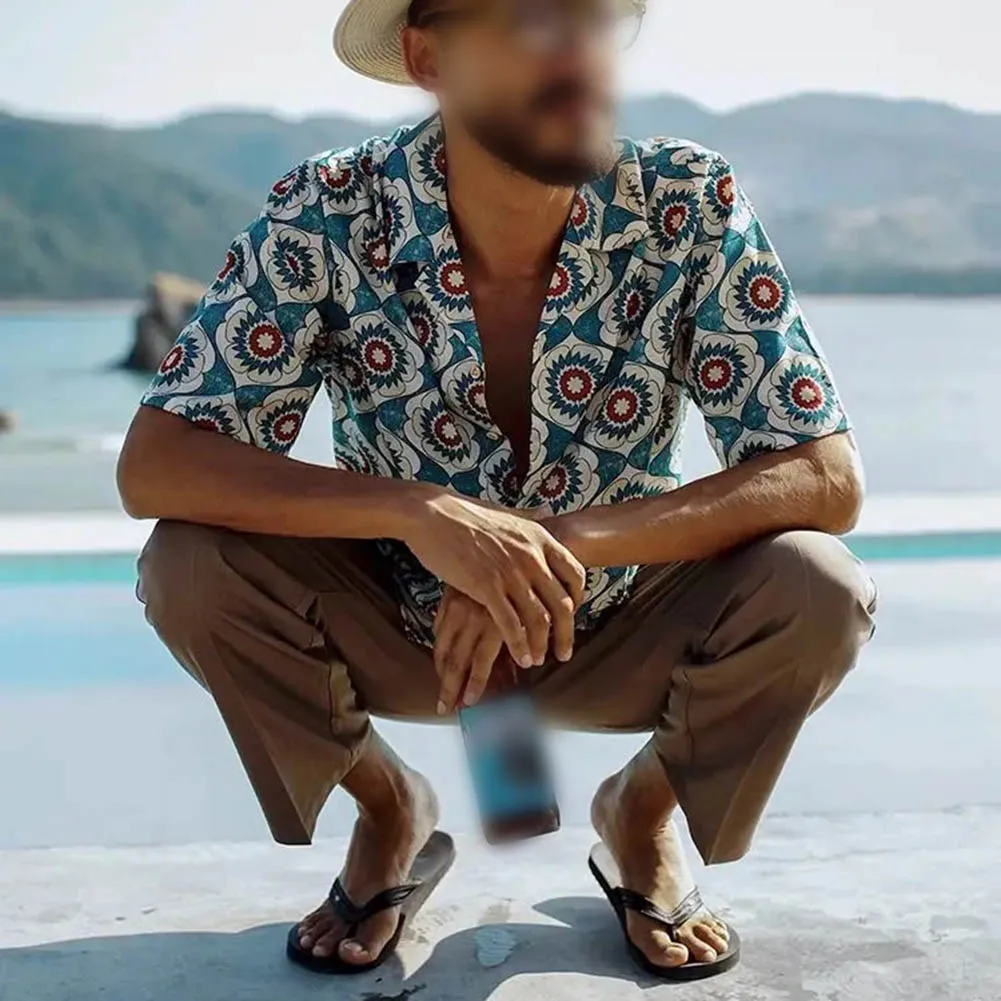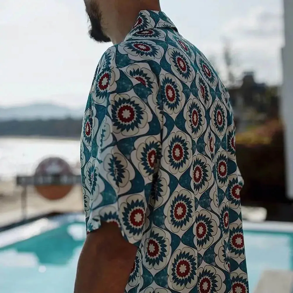 BONSIR - Y2K Shirt Shirt Floral Printed Summer Casual Tops Daily Vacation Floral High Stretch Holiday Lapel Men Polyester