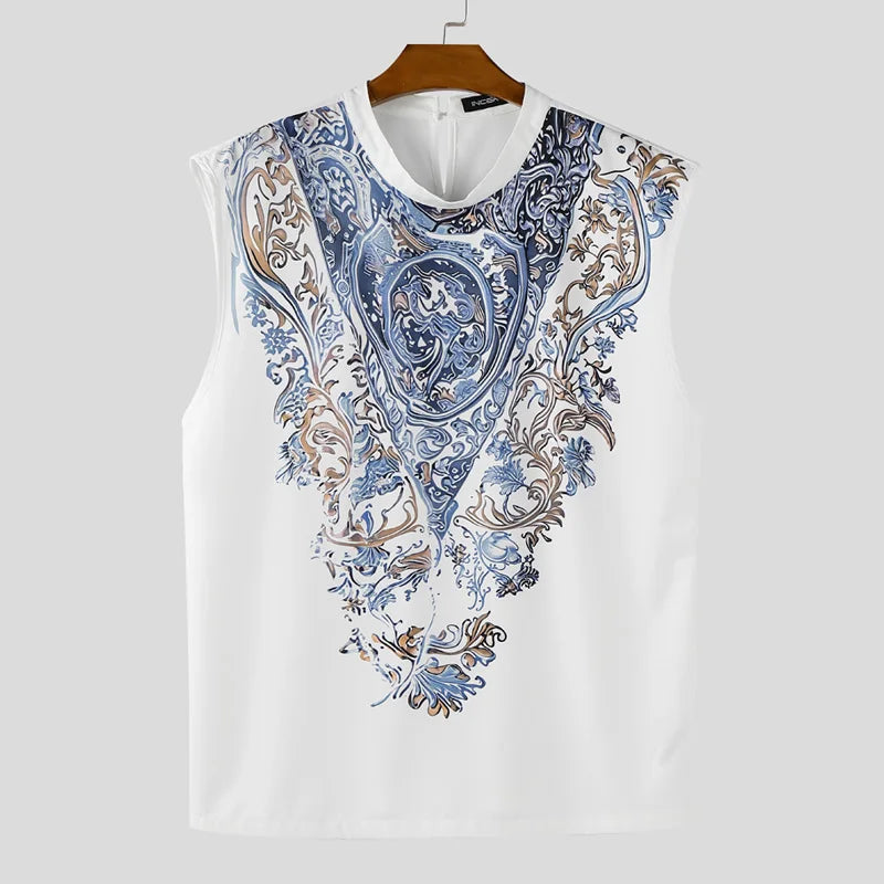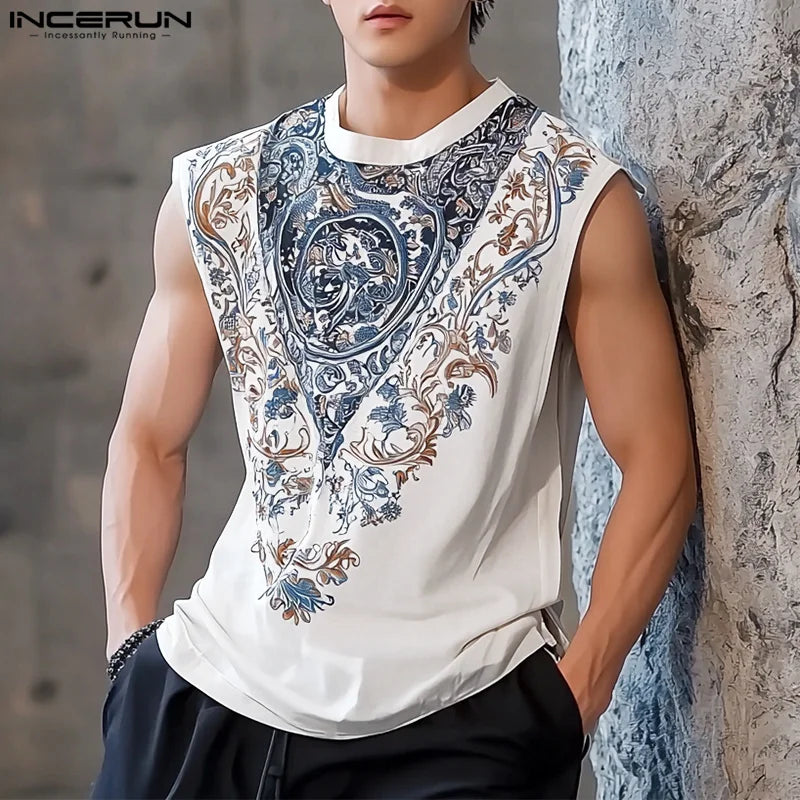 INCERUN Men Tank Tops Printing O-neck Sleeveless Summer Male Vests Streetwear 2025 Oversize Fashion Casual Men Clothing S-5XL