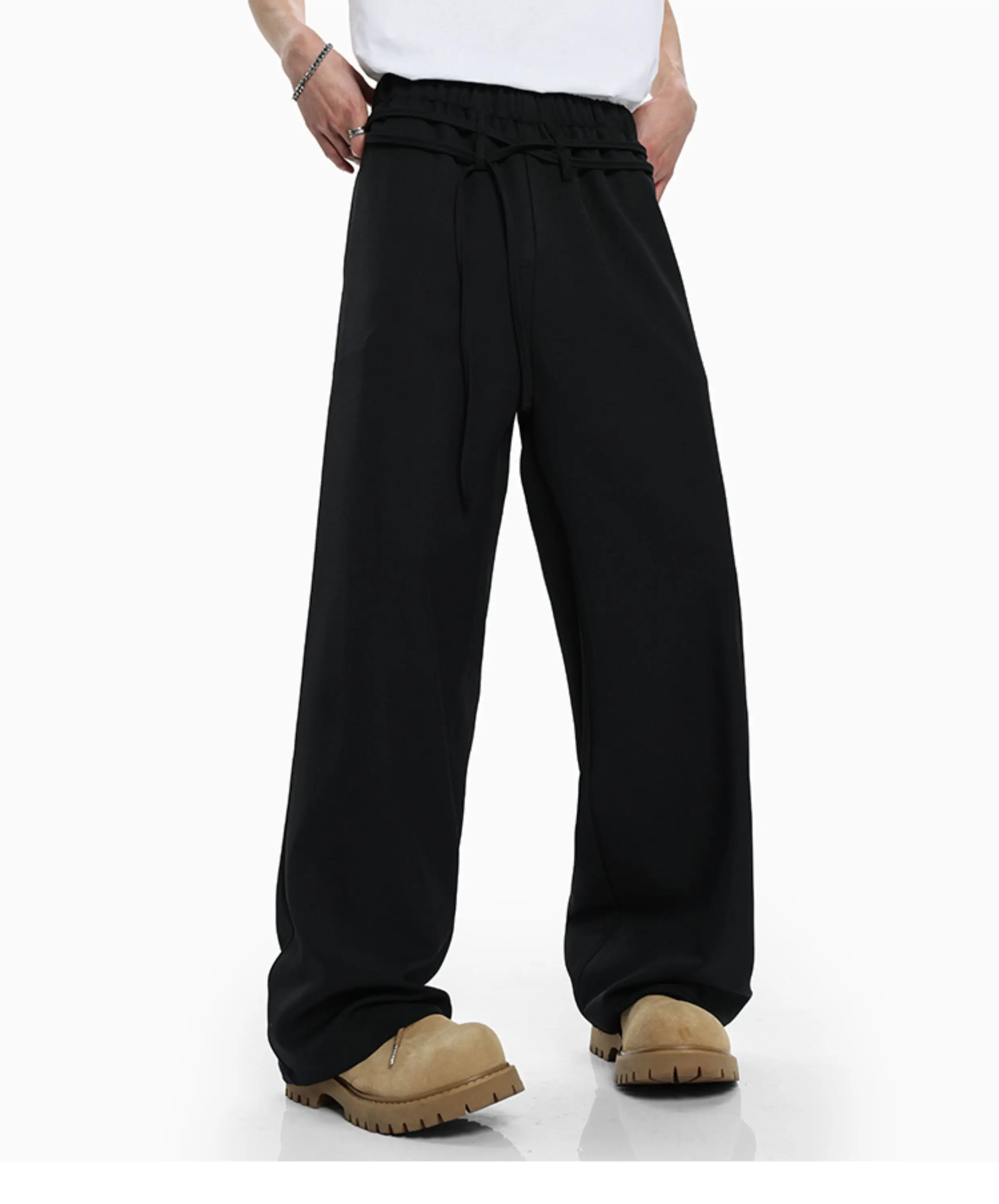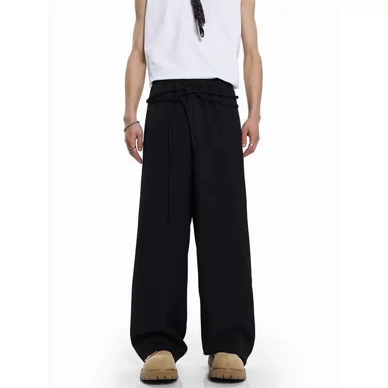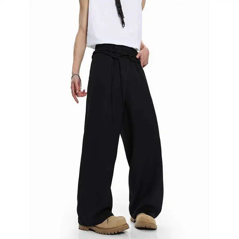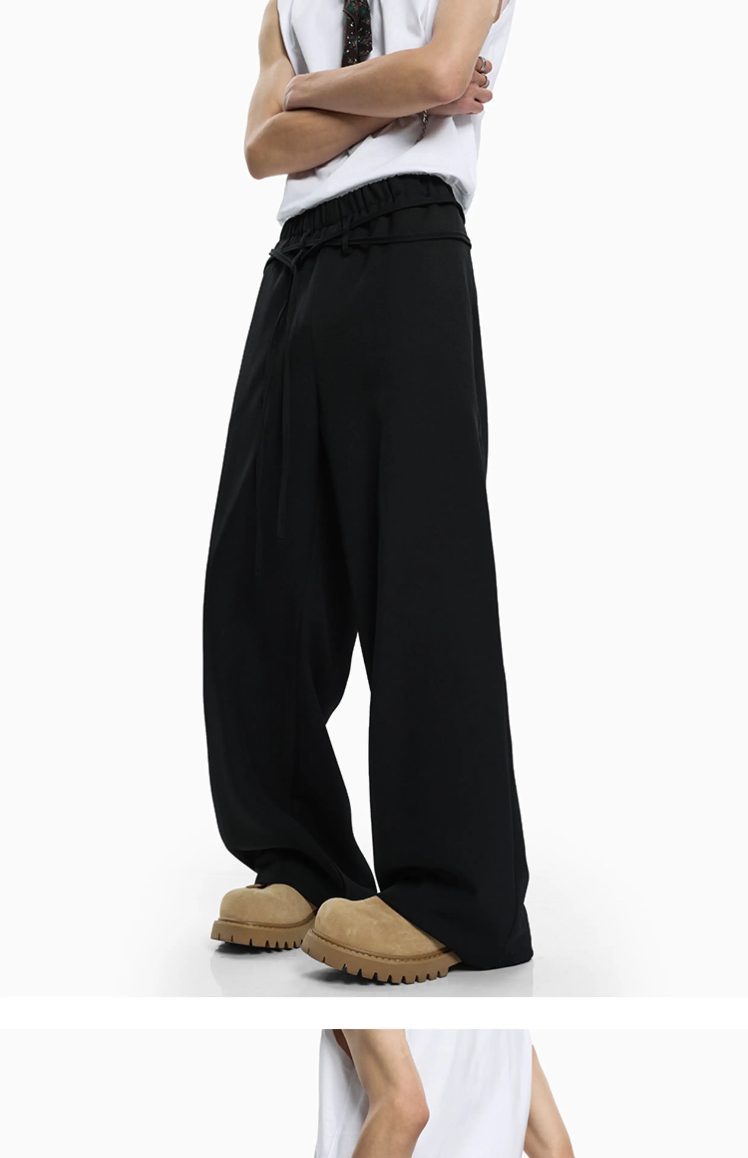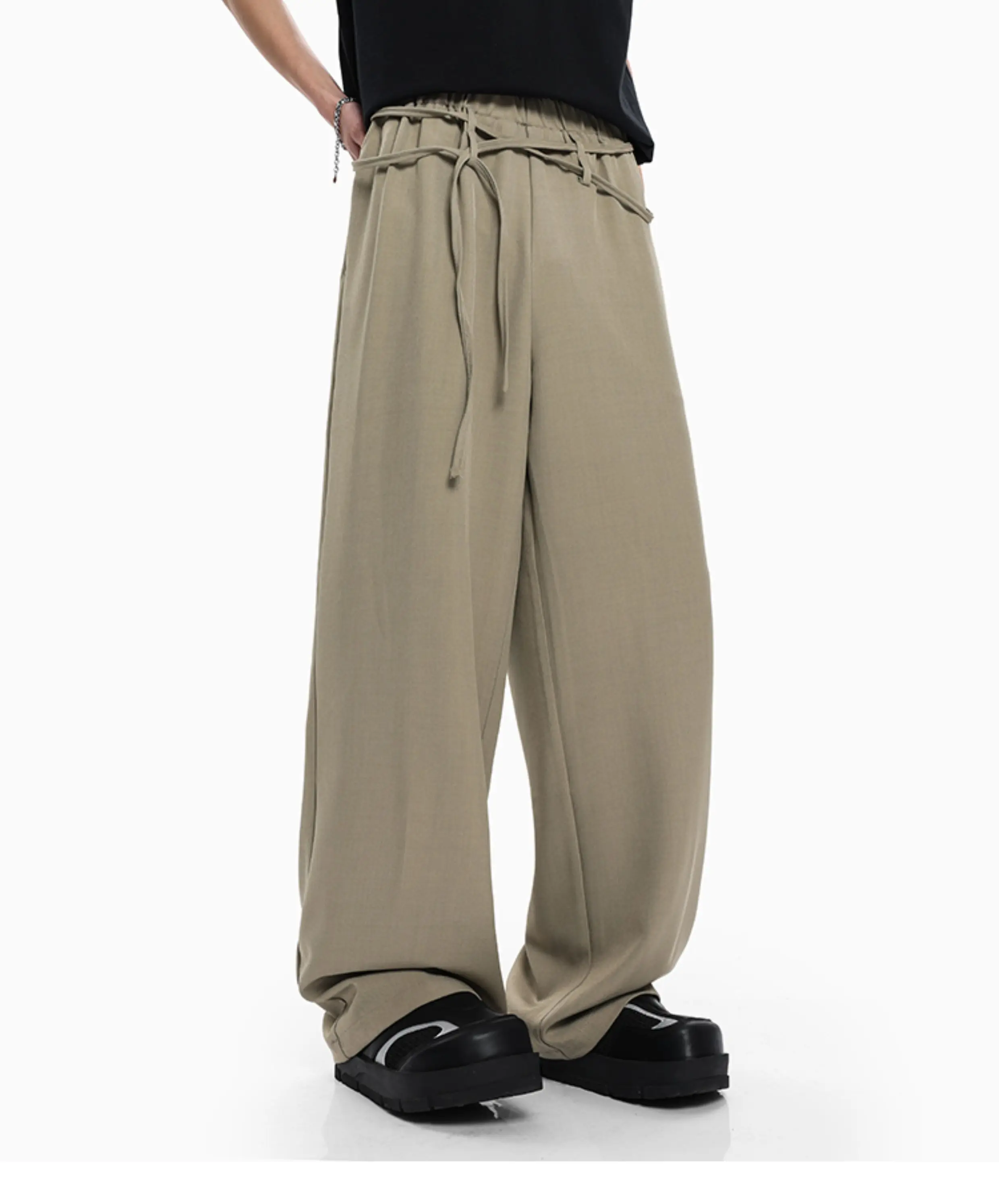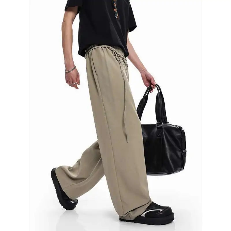 BONSIR - Khaki Black Suit Pants Men Fashion Society Mens Dress Pants Korean Loose Wide Leg Pants Mens Office Formal Trousers S-2XL