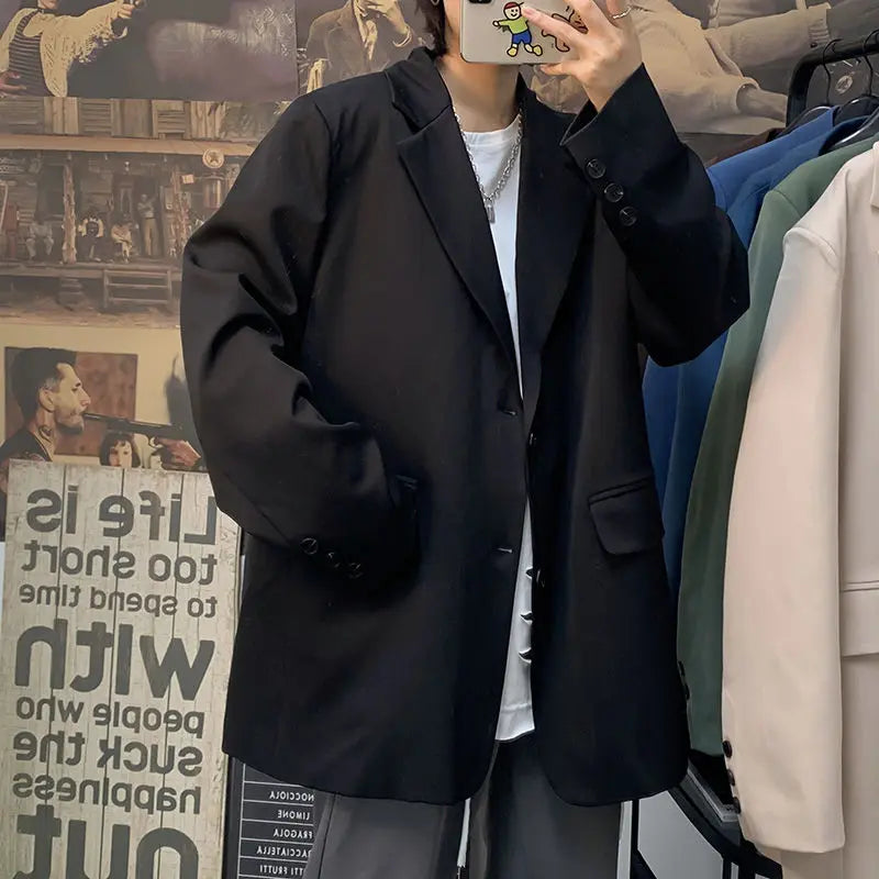 BONSIR  -  Korean Style Blazer Men Fashion Solid Color Business Casual Suit Jacket Men Streetwear Loose Dress Jackets Mens Formal Blazer