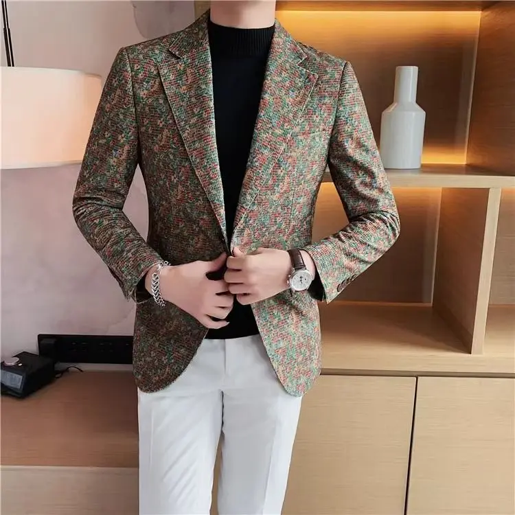 Bonsir Man Business Suits and Blazers Double Breasted Dress Jacket for Men Printed Stamp Classic Spring Clothes Handsome Clothing Coats
