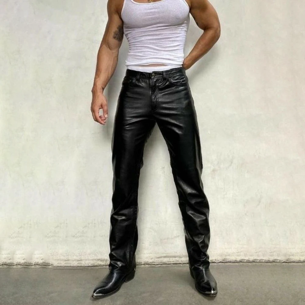 Bonsir New Mens Stretchy Leather Pants Slim PU Leather Skinny Trousers Fashion New Casual Tights Pants Man Sexy Motorcycle Long Pants
