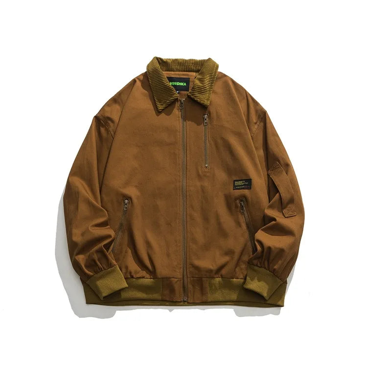 BONSIR - Autumn Vintage New Fashion American Men's Turn-down Collar Long Sleeve Zipper Casual Trendy Cargo Coats Male Streetwear