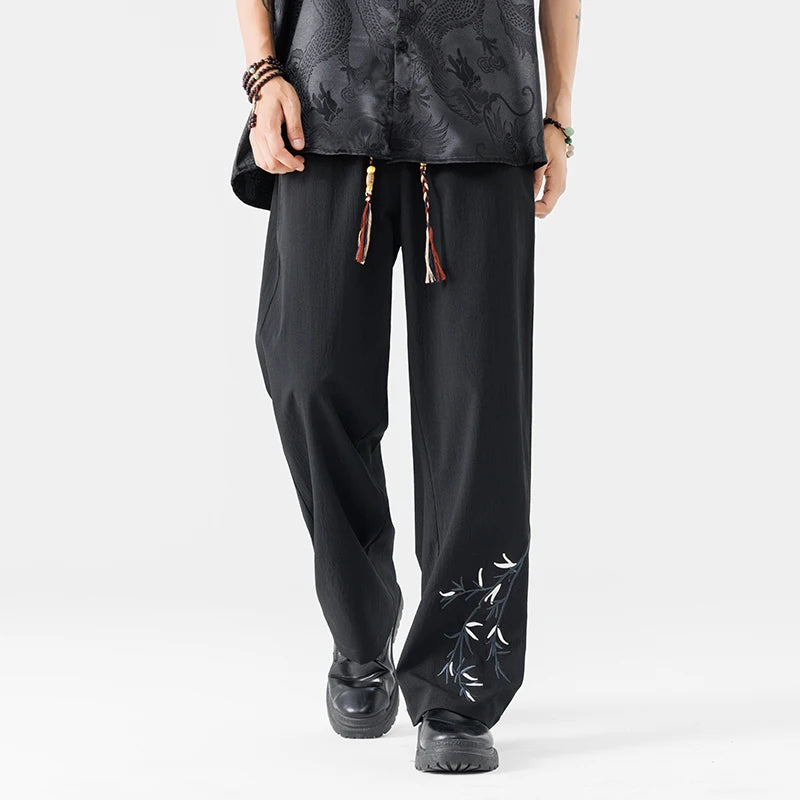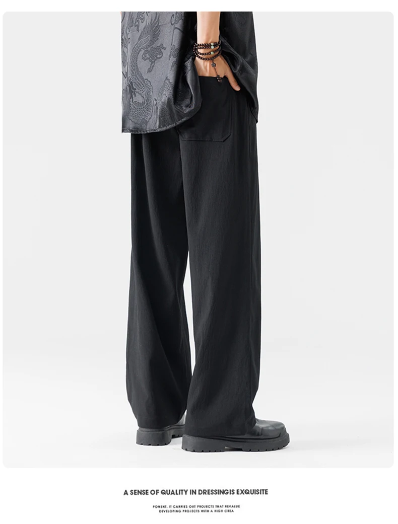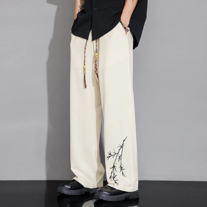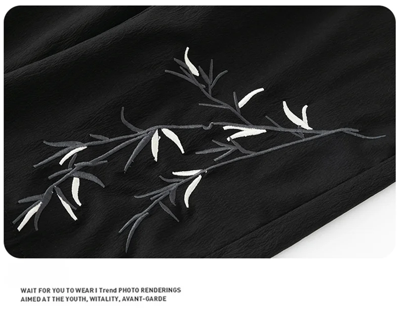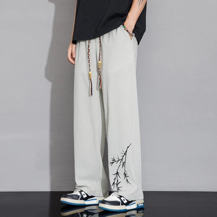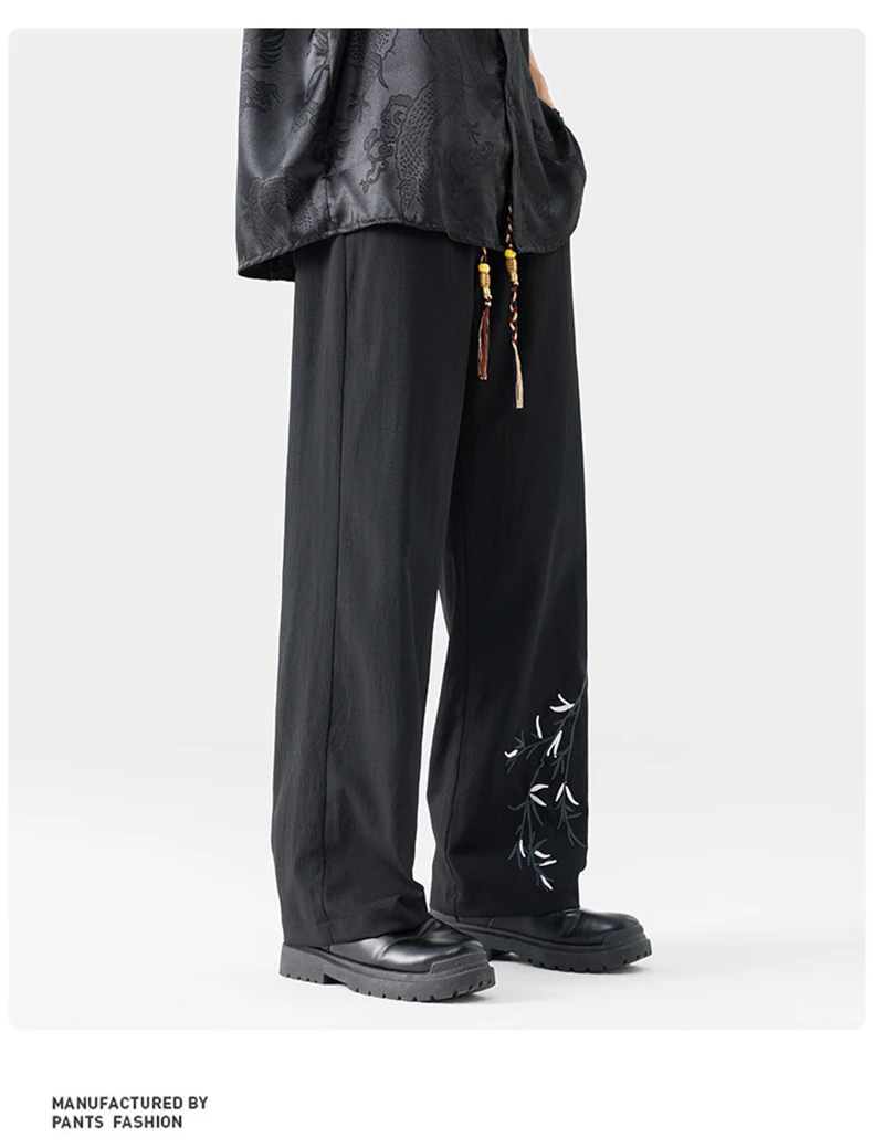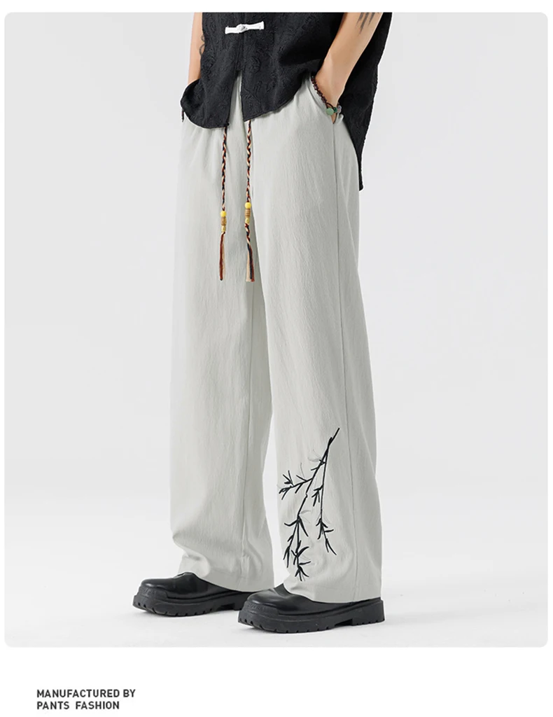 BONSIR - Drawstring Sweatpants Thin Men's Fashion Embroidered Wide Pants Straight Comfortable Casual Male Clothes Trousers Streetwear