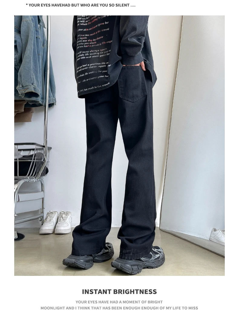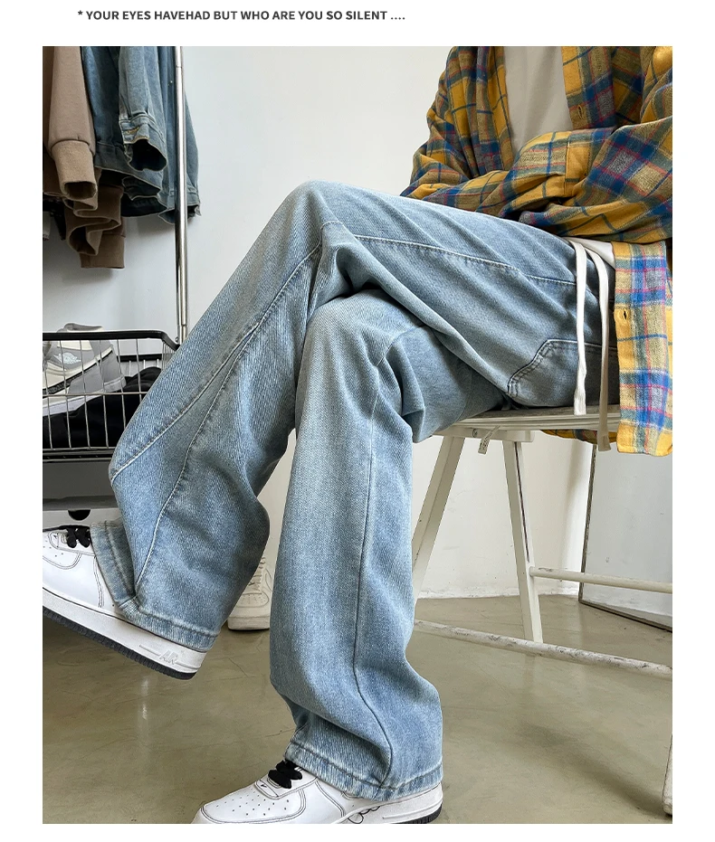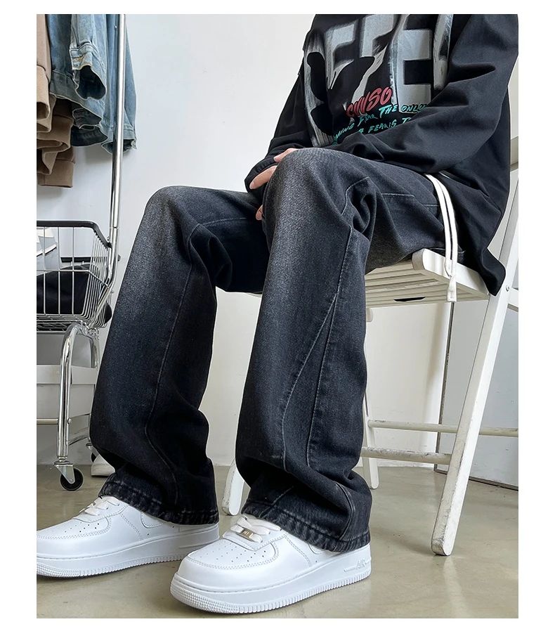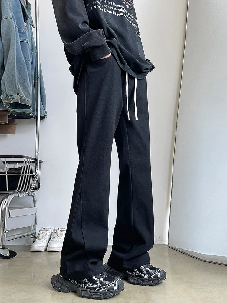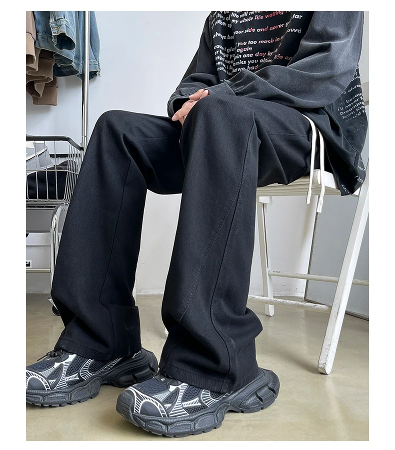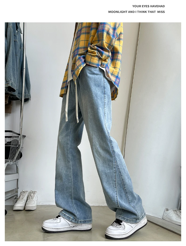 BONSIR - Fashion Patchwork Men's Bootcut Jeans Elastic Waist Drawstring Denim Pants High Street Classic Light Blue Black Male Trousers
