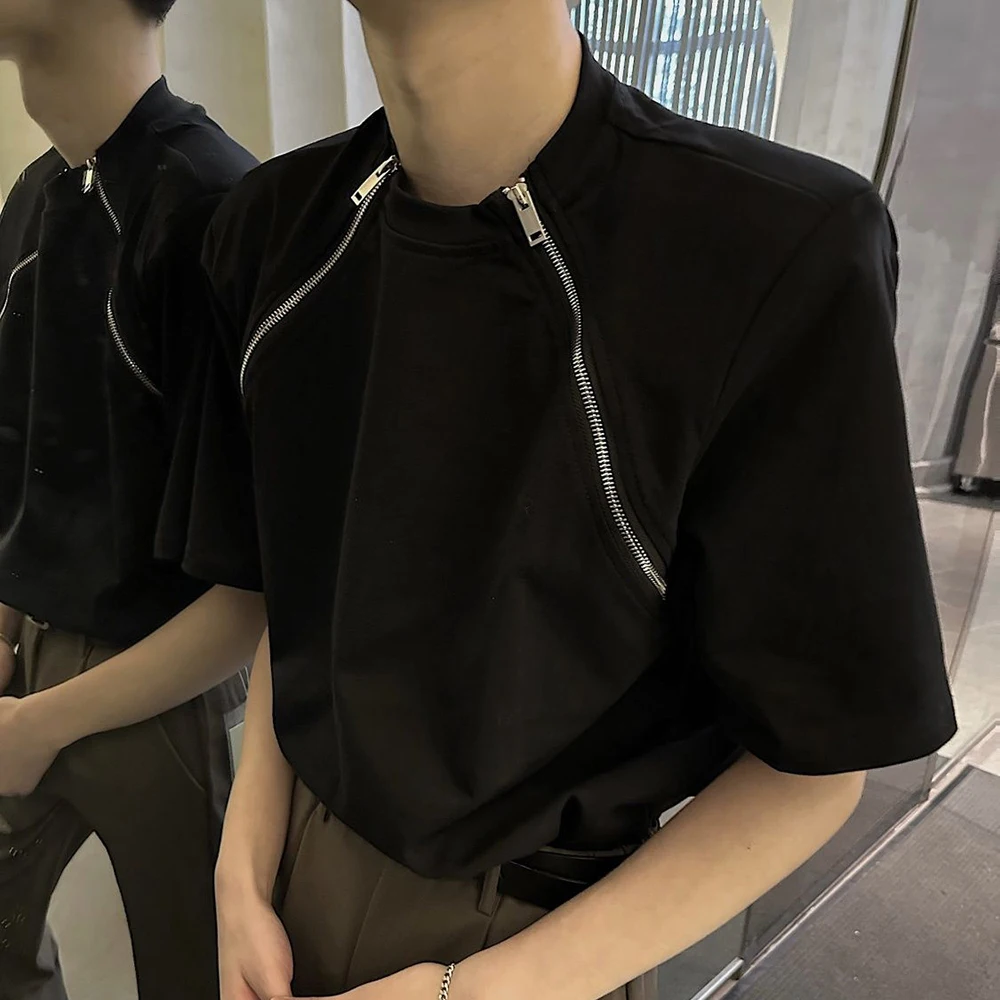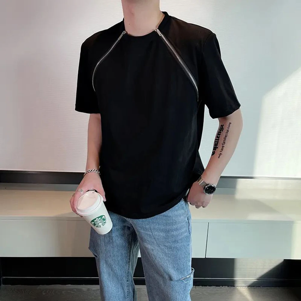 Bonsir Korean Fashion Zipper T-Shirt Men Loose Short Sleeve Casual T Shirts Summer New Oversized Streetwear Y2K Function Tops Pullover