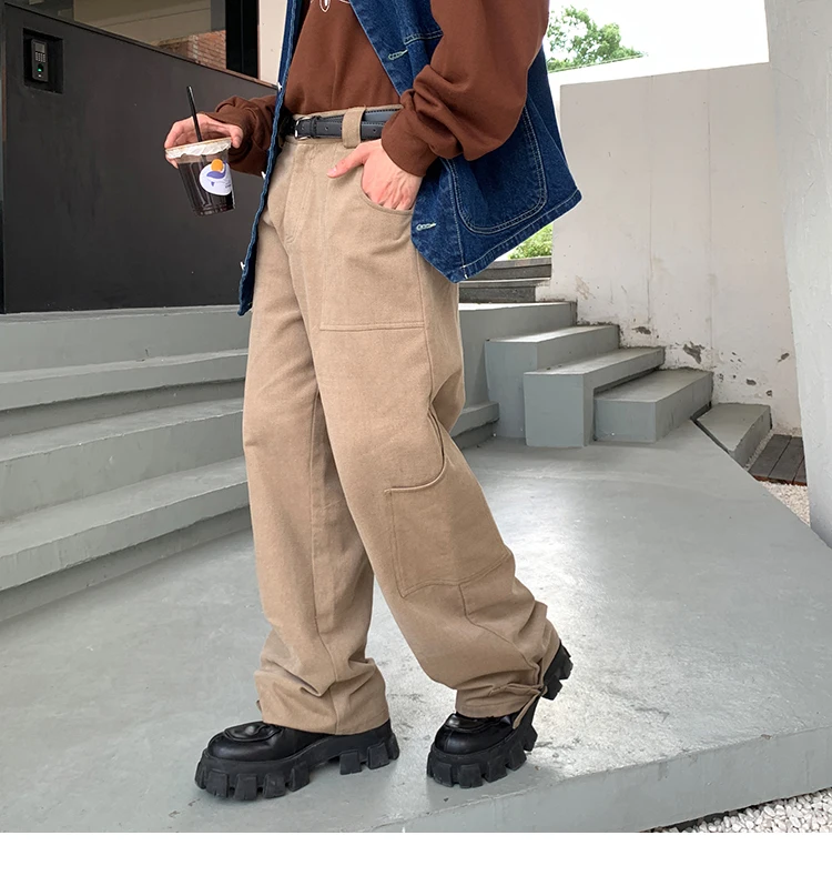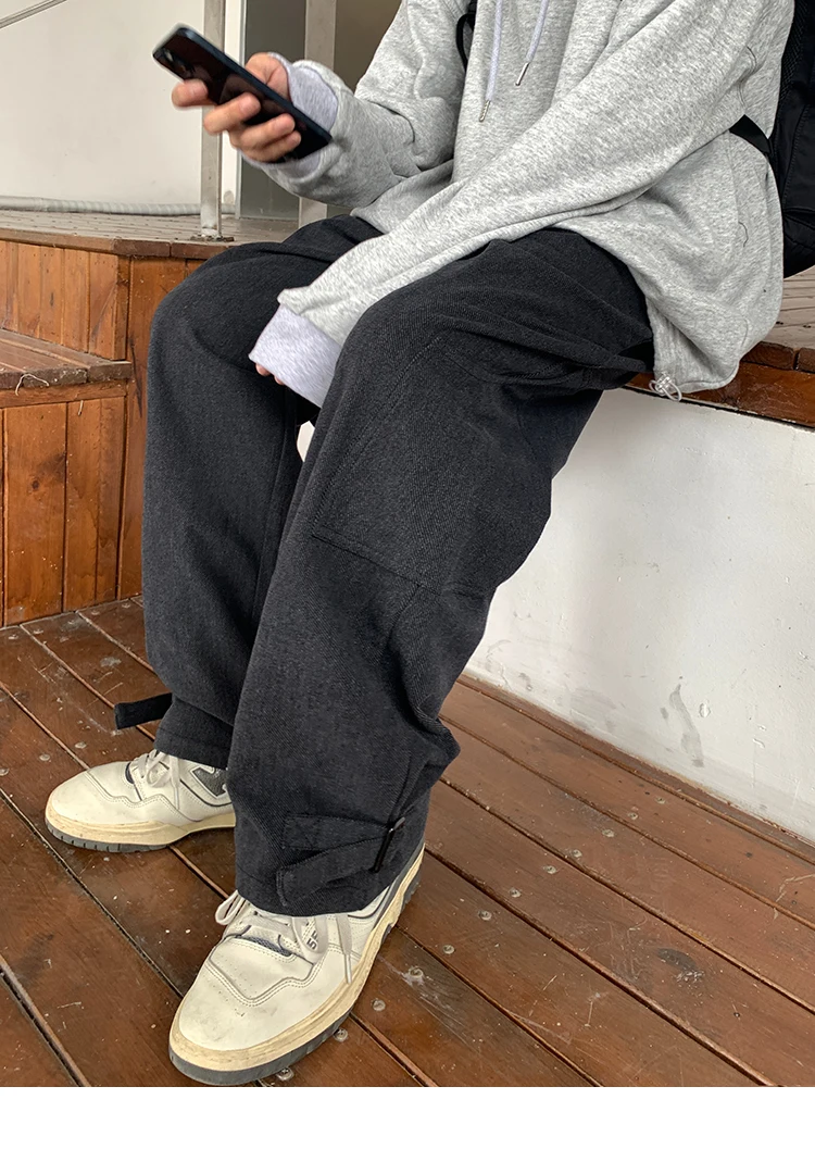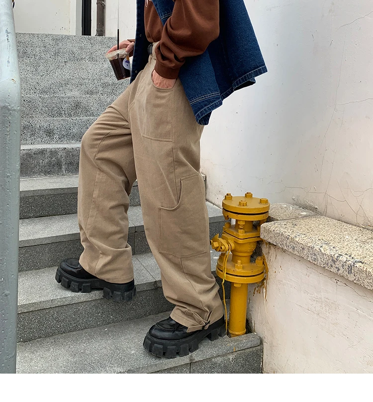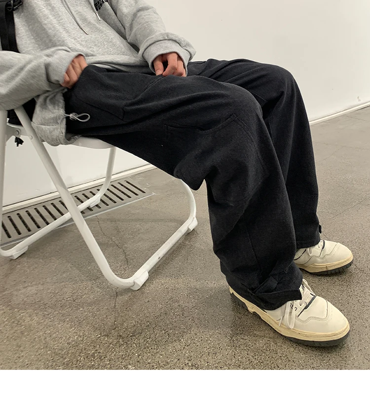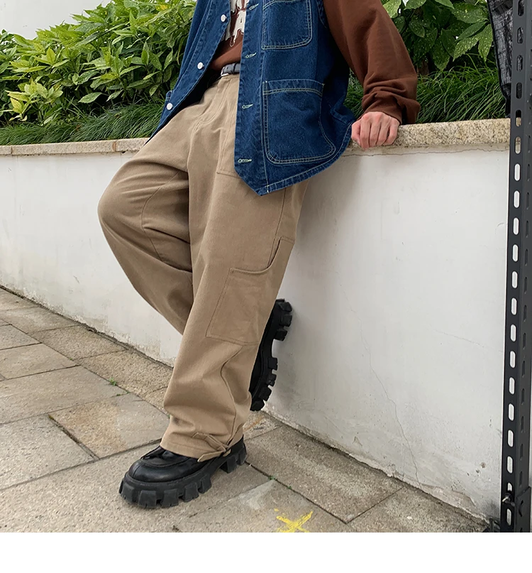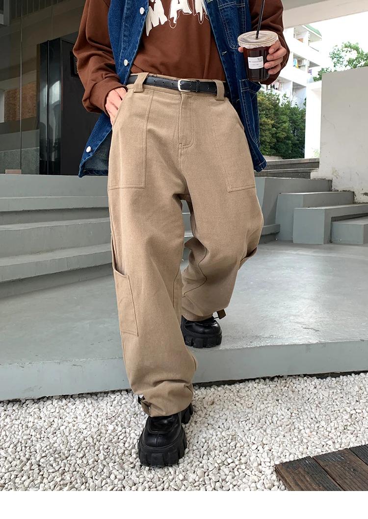 Bonsir Korean Loose Straight Pants Mens Trousers Oversized Cotton Cargo Pants Men Fashion Pocket Casual Pants Men Streetwear tide