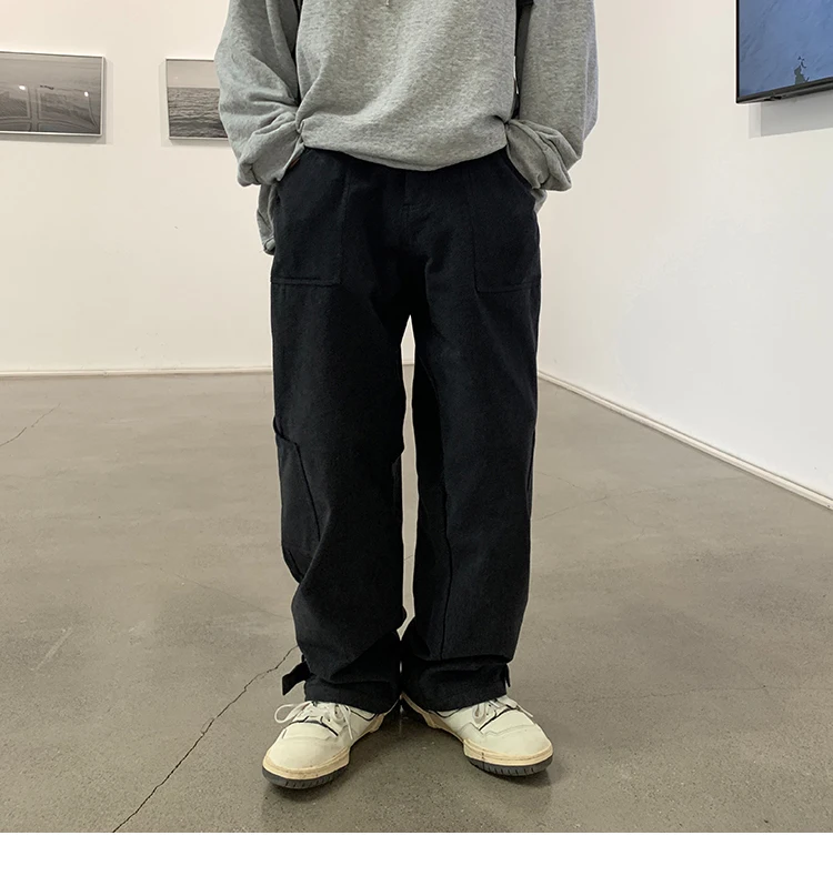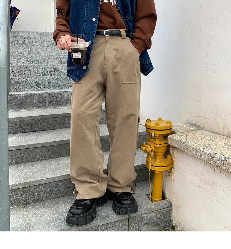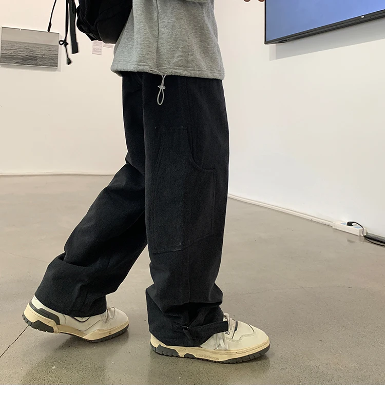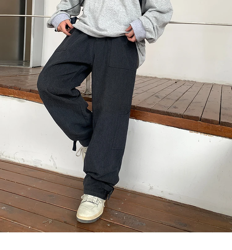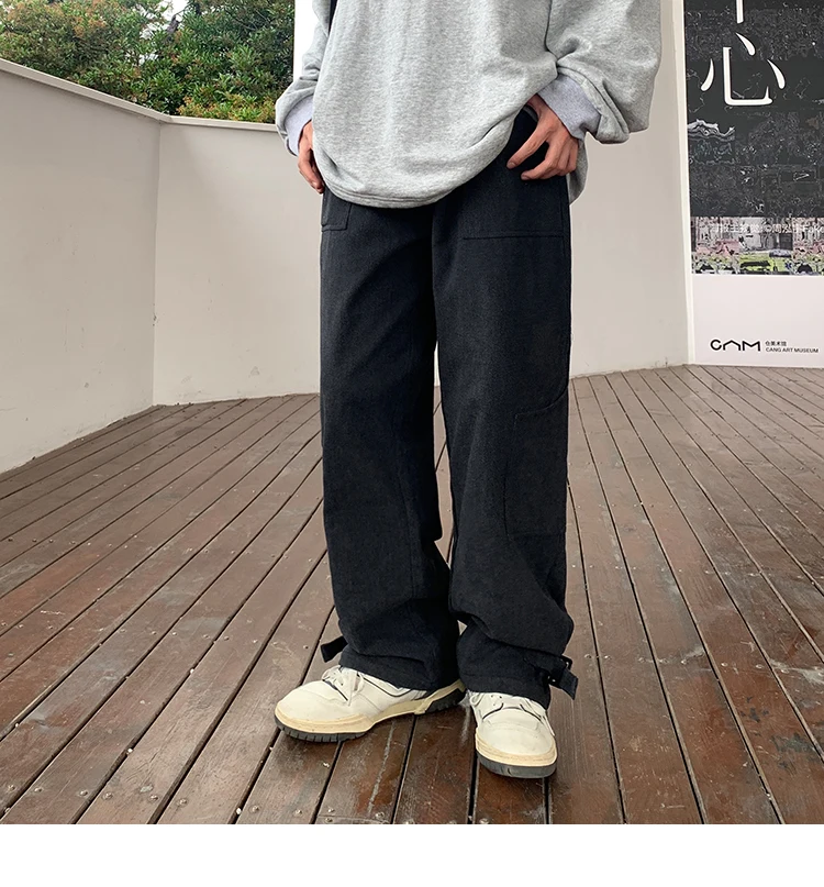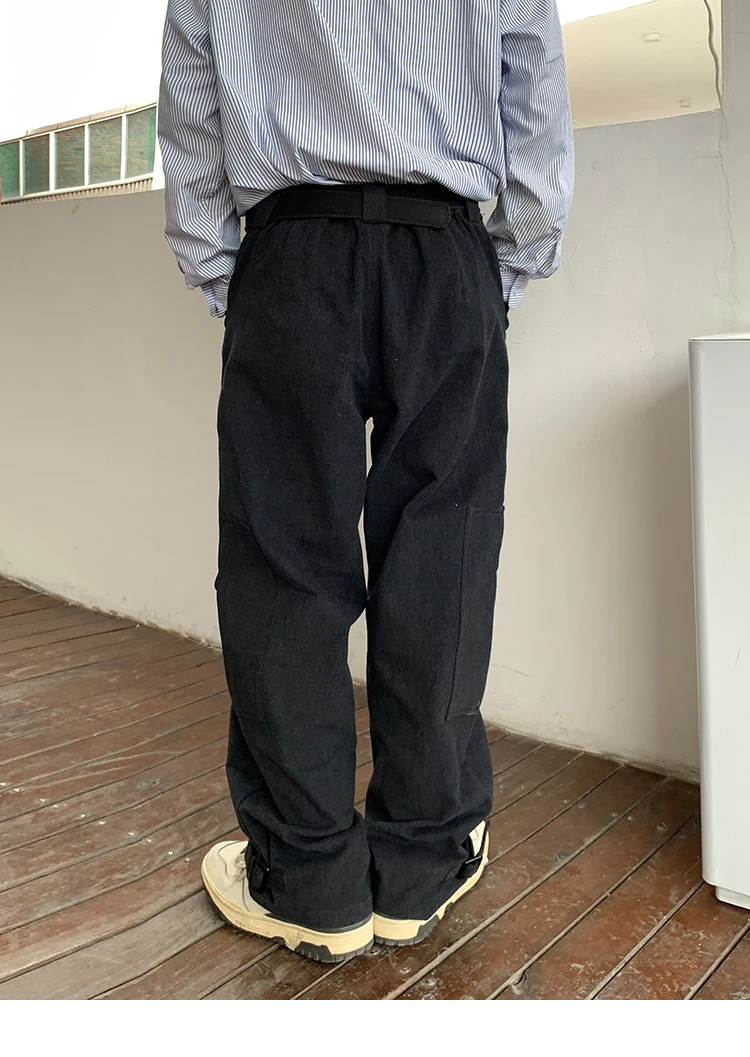 Bonsir Korean Loose Straight Pants Mens Trousers Oversized Cotton Cargo Pants Men Fashion Pocket Casual Pants Men Streetwear tide
