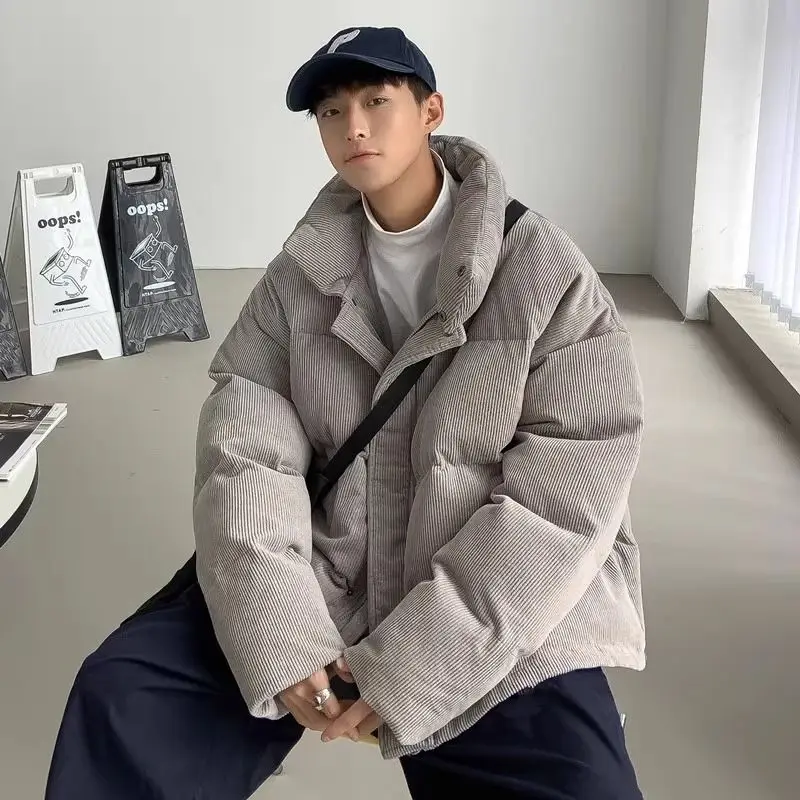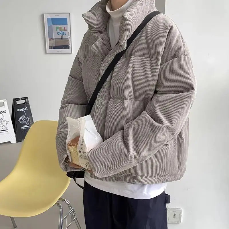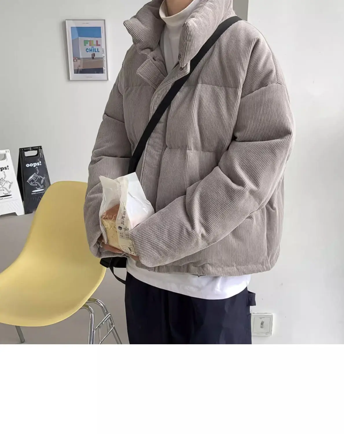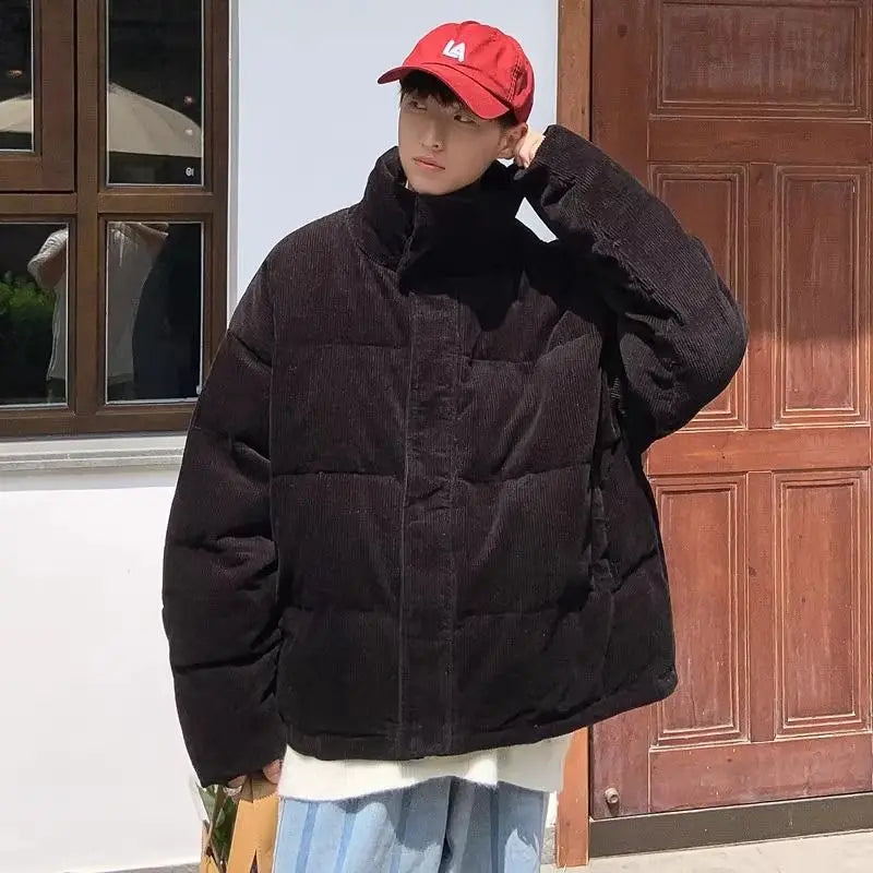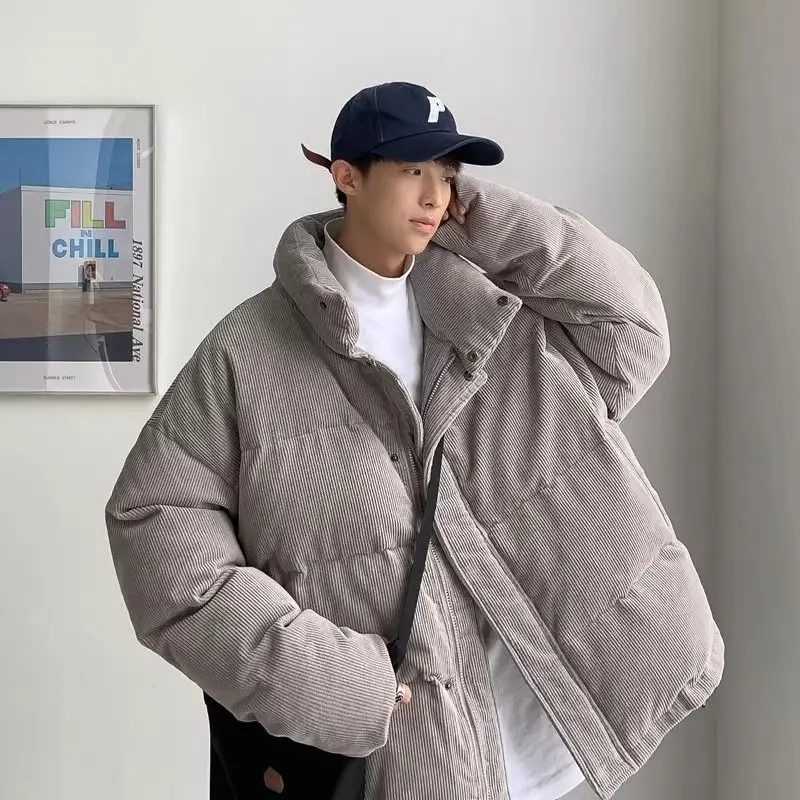 Bonsir Korean style high street men and women trendy personality corduroy stand up collar thick jacket couple loose retro casual top