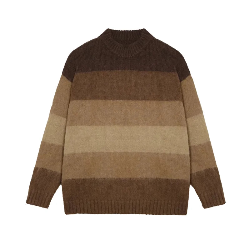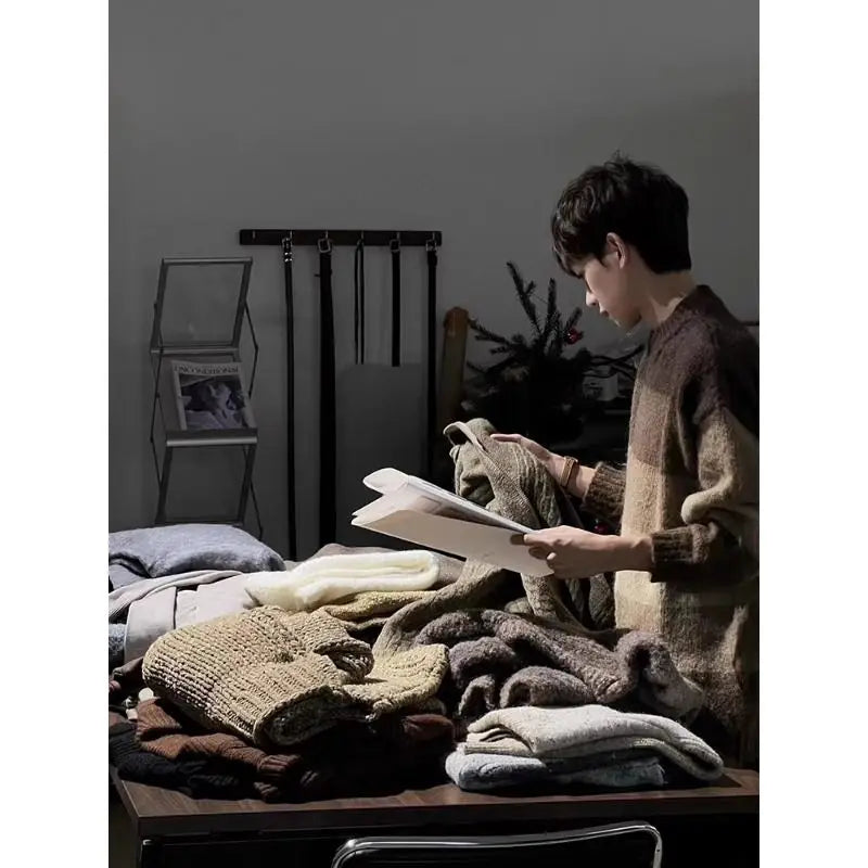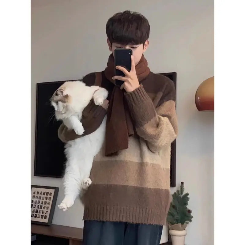 Bonsir Korean style high street men and women trendy personality retro round neck sweater couple retro loose casual knit sweater y2k