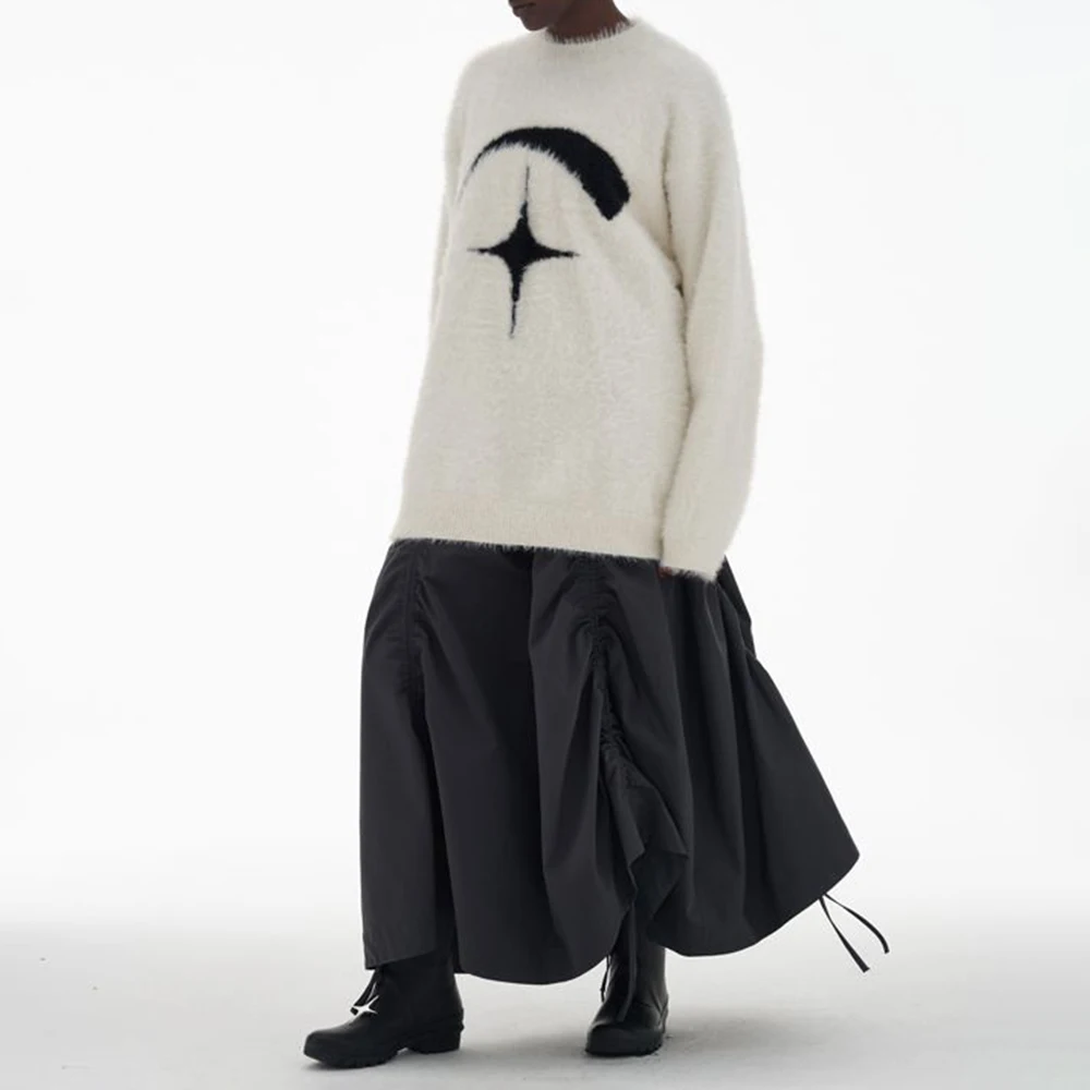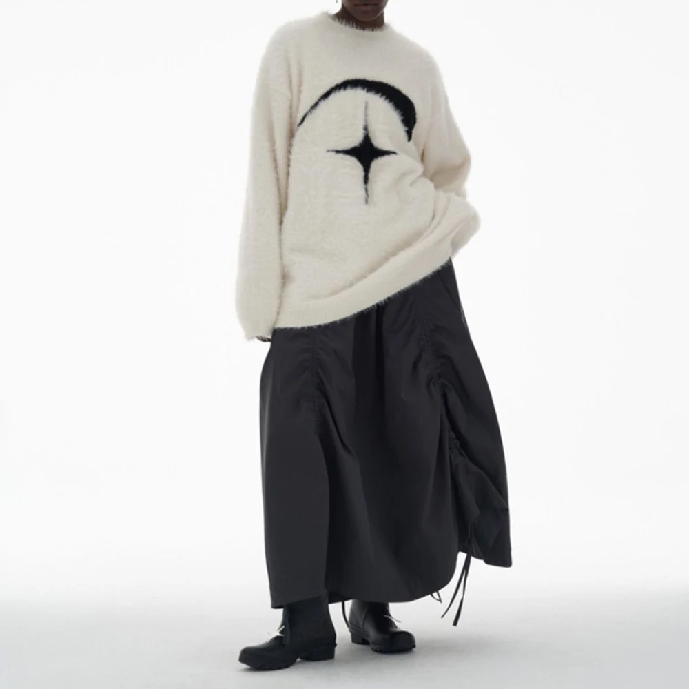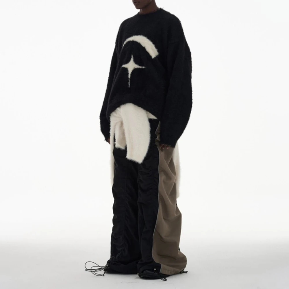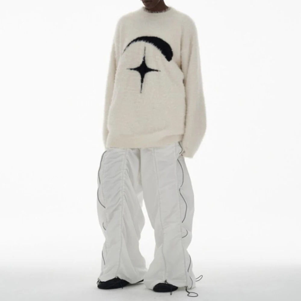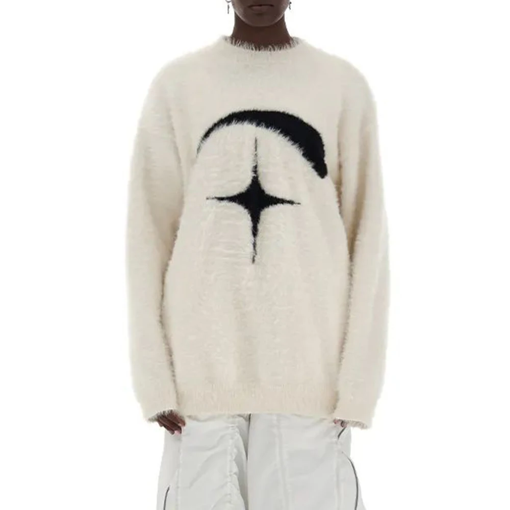Bonsir Men Casual Knitted Sweater New Autumn Winter Genderless Street Soft Four-Pointed Star Pattern Loose Couple Loose Top Unisex