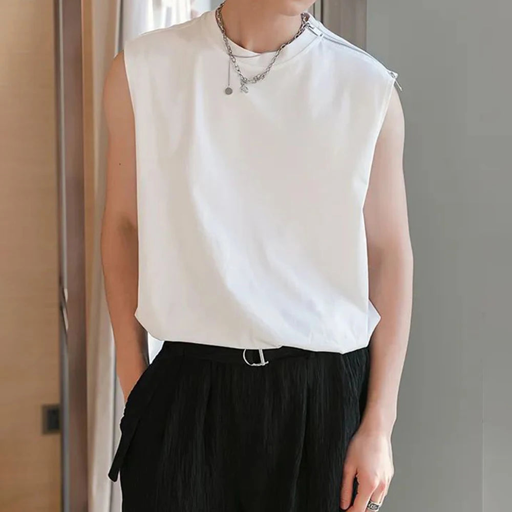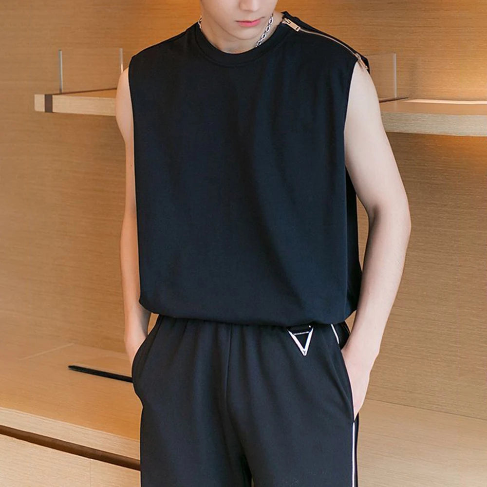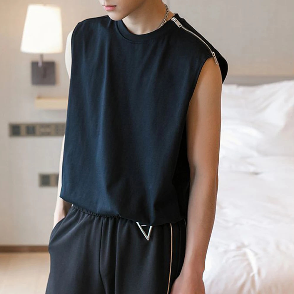 Bonsir Men Fashion Chic Design Zipper Vest Sexy Camisole Streetwear Summer Y2k Clothes Tank Tops Black Slim Fit Sleeveless Top Singlet