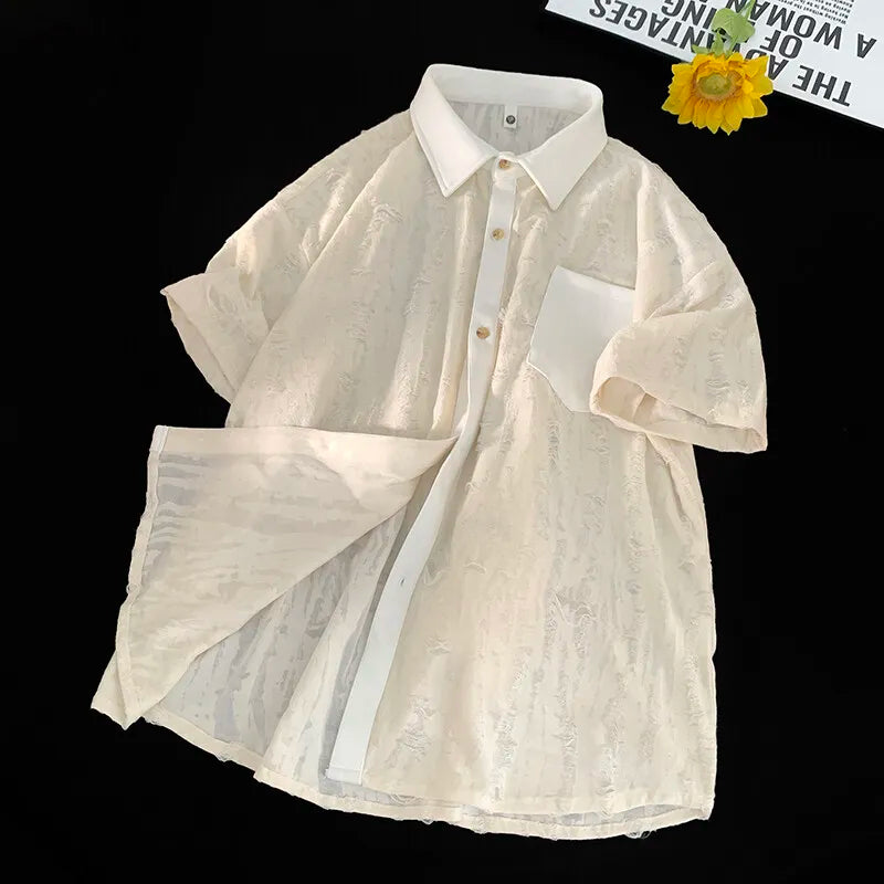 BONSIR - Men Streetwear Hollow Hole Short-sleeved T-shirt Hip Hop Single-breasted Short-sleeved Shirt Summer Trendy Couple Fashion Tops