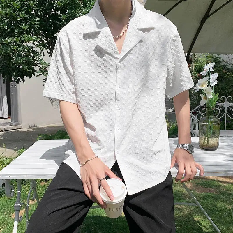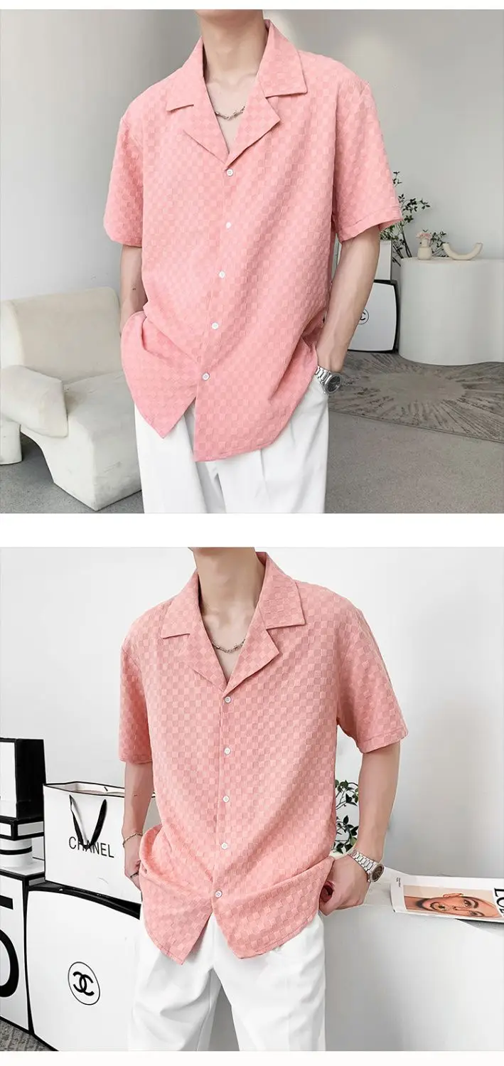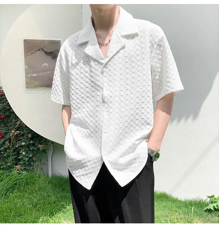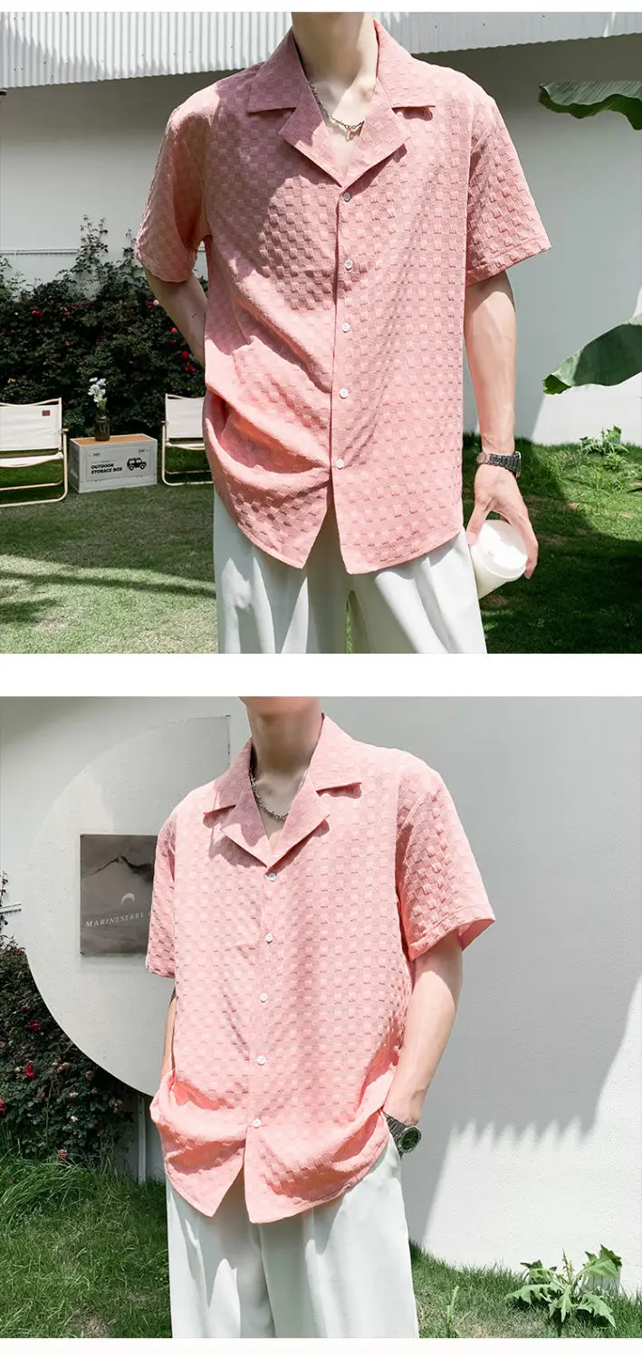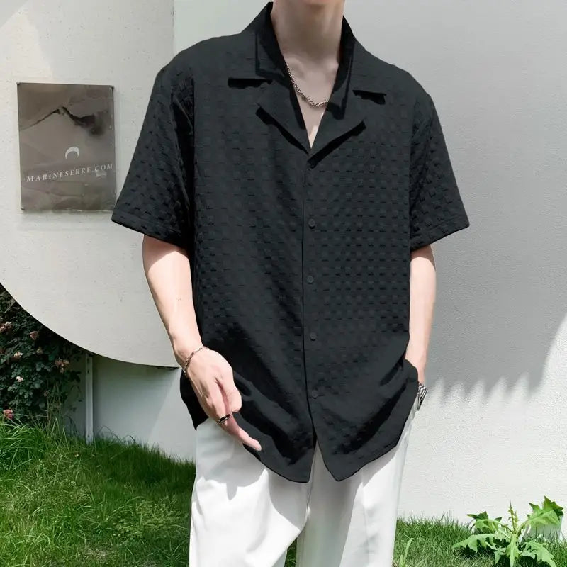 Bonsir Men Summer Korean Style Trendy High Street Short Sleeve Button Down Shirt Youth Casual Solid Loose Tops Camisas De Hombre S-4XL