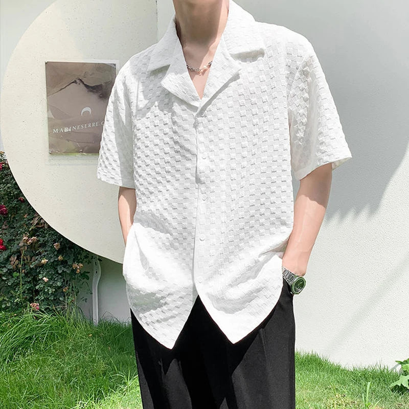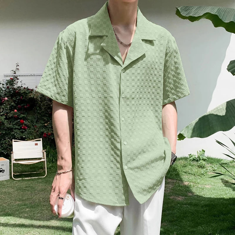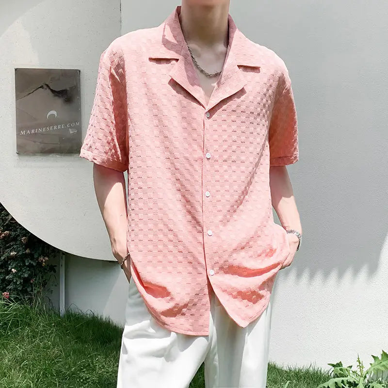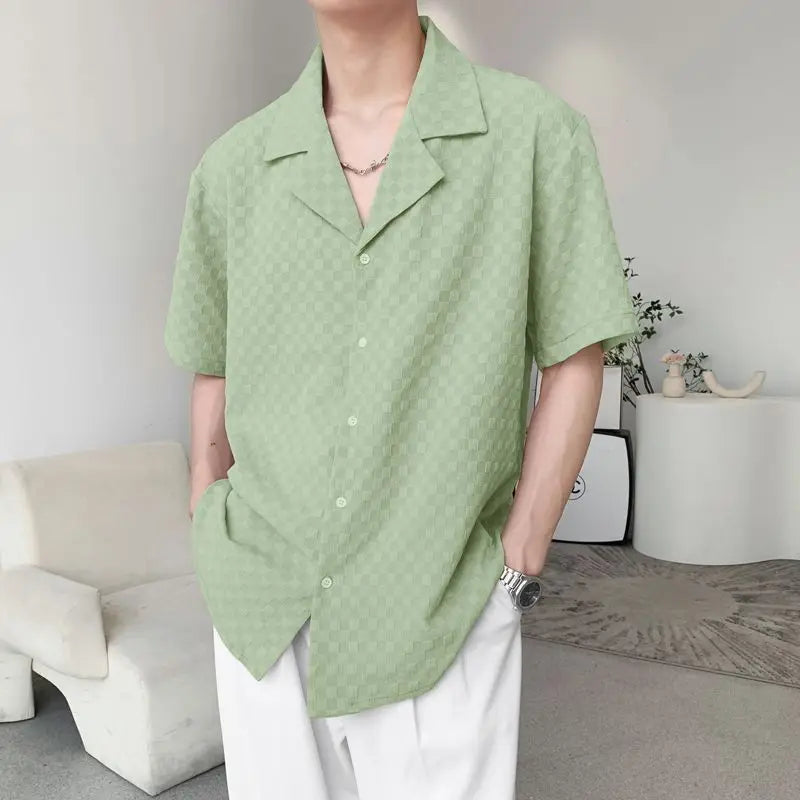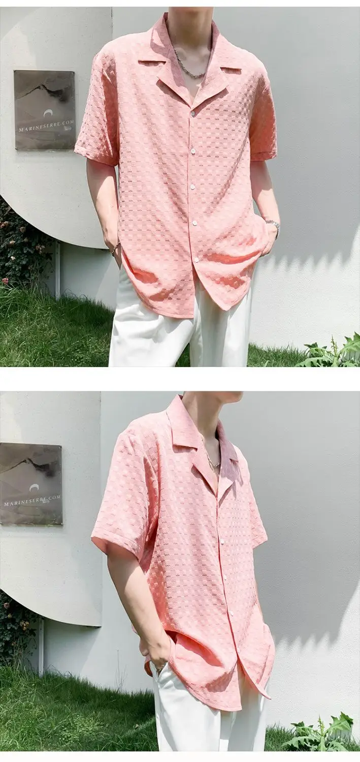 Bonsir Men Summer Korean Style Trendy High Street Short Sleeve Button Down Shirt Youth Casual Solid Loose Tops Camisas De Hombre S-4XL