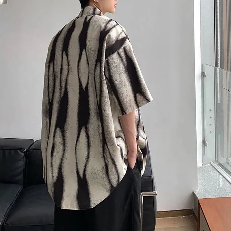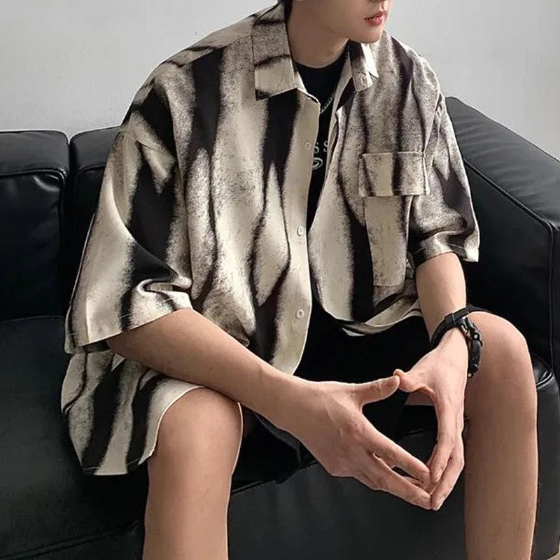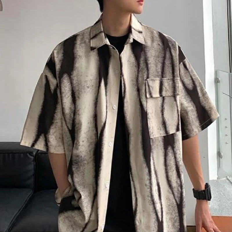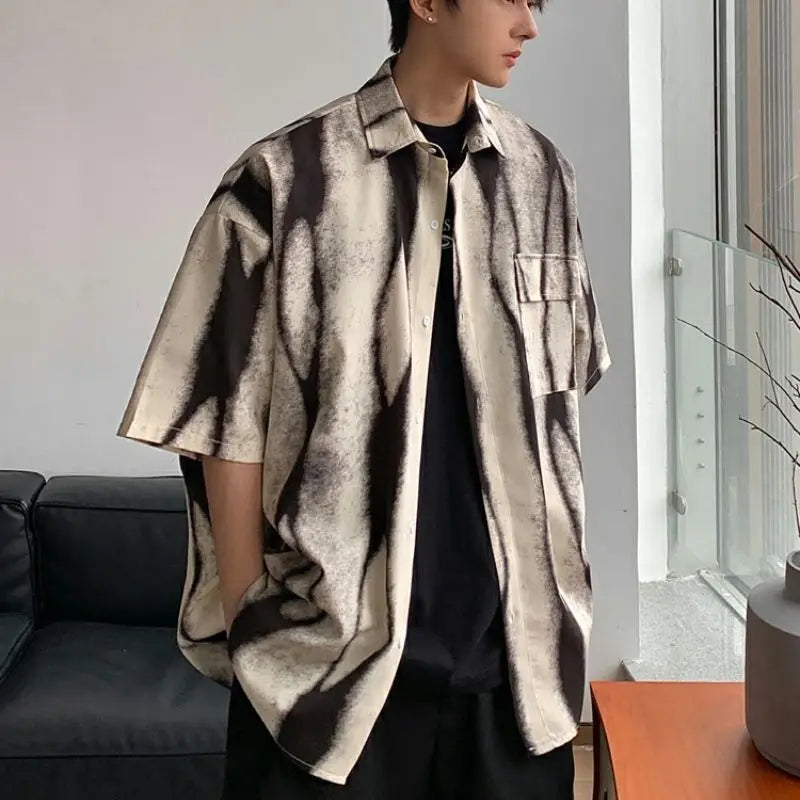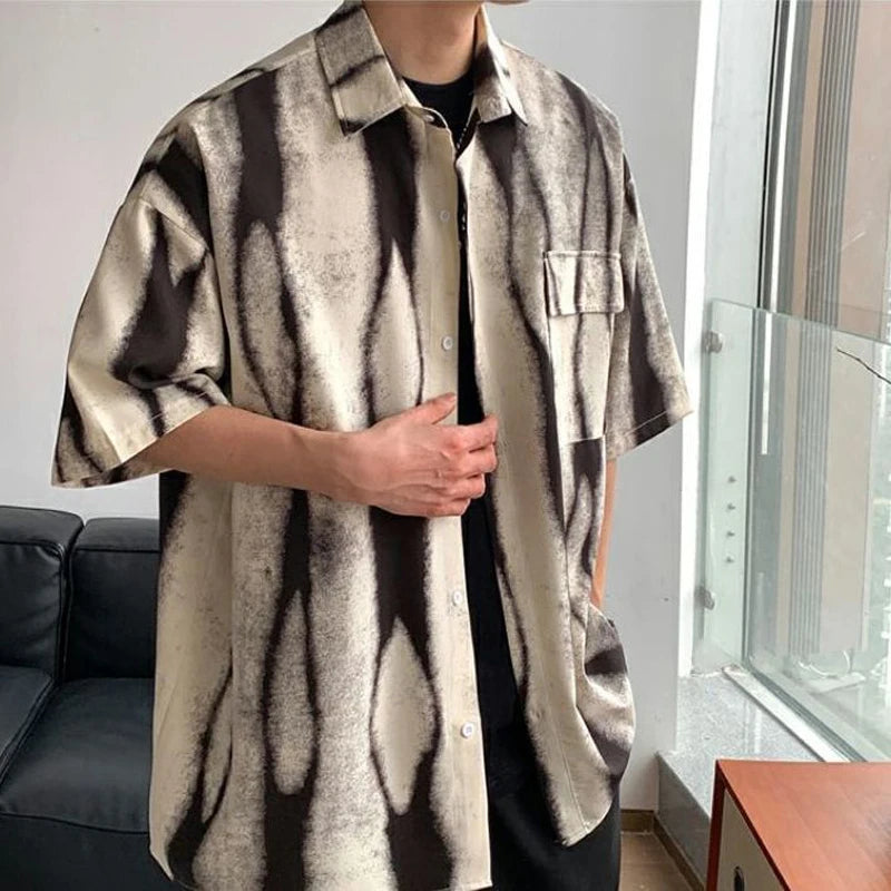 Bonsir Men Trendy Tie Dye Print Casual Streetwear Oversize Shirt Youth Summer Short Sleeve Y2K Harajuku Handsome Tops Camisas De Hombre