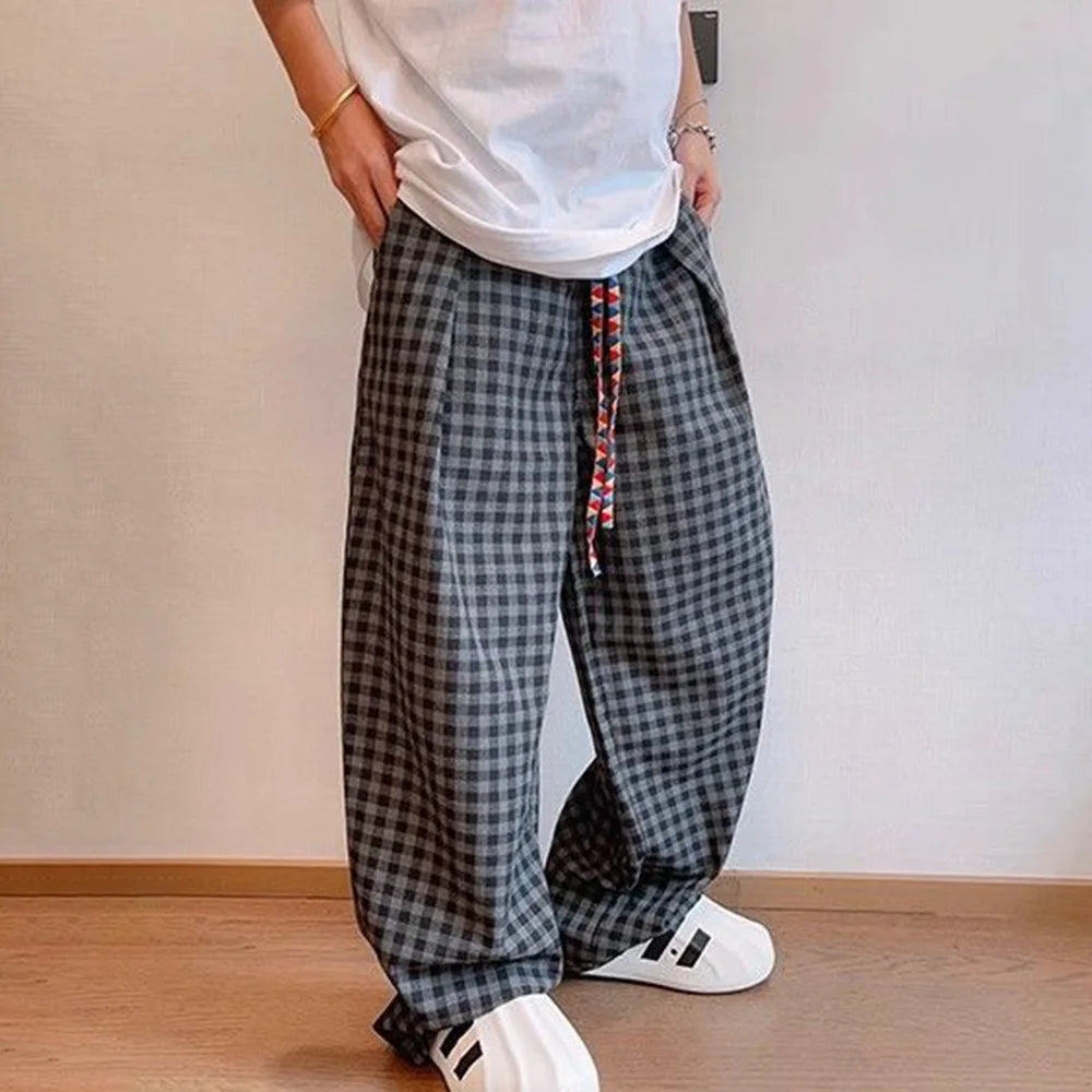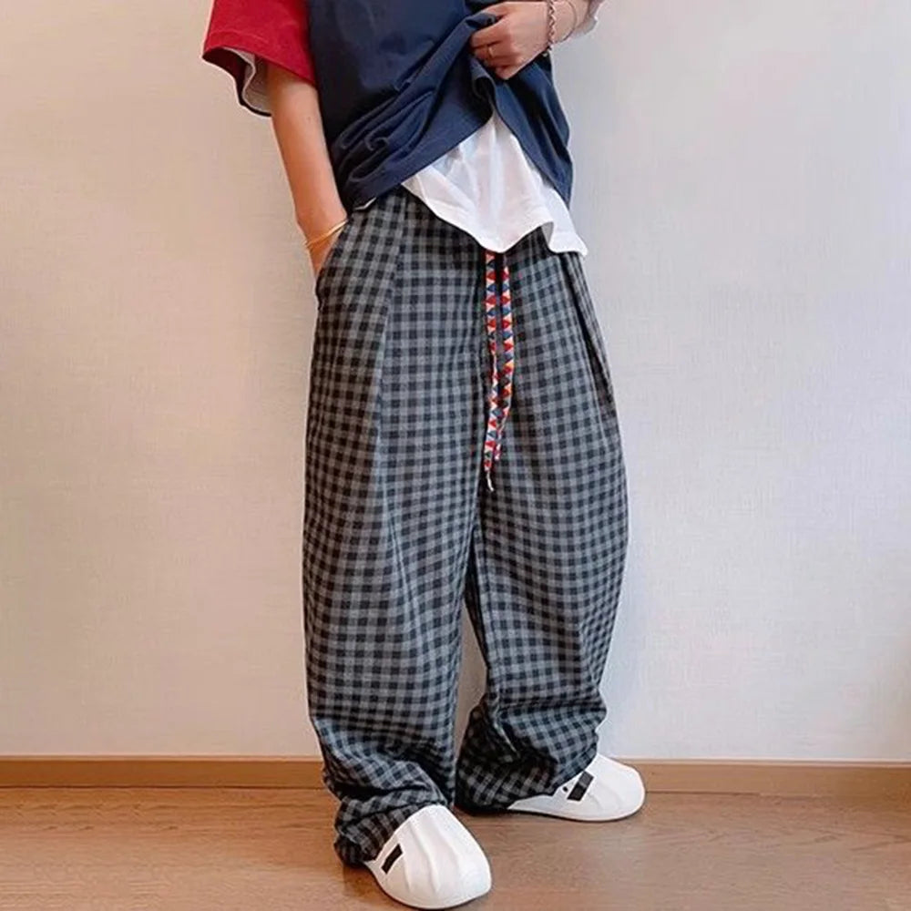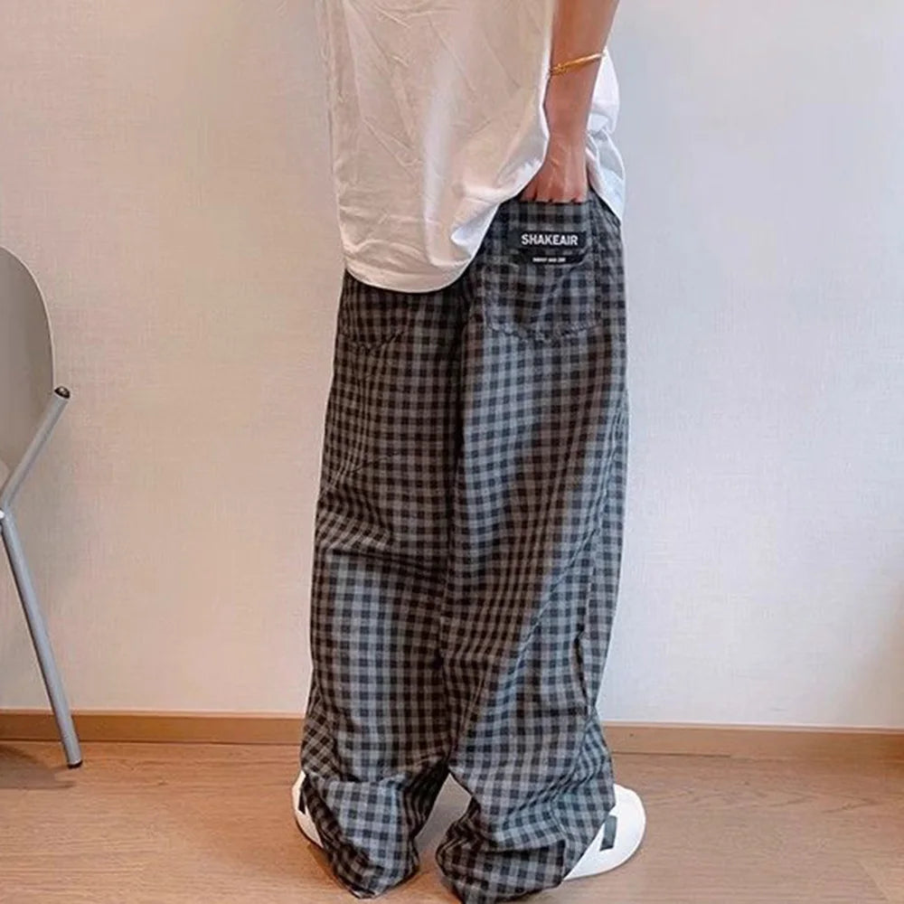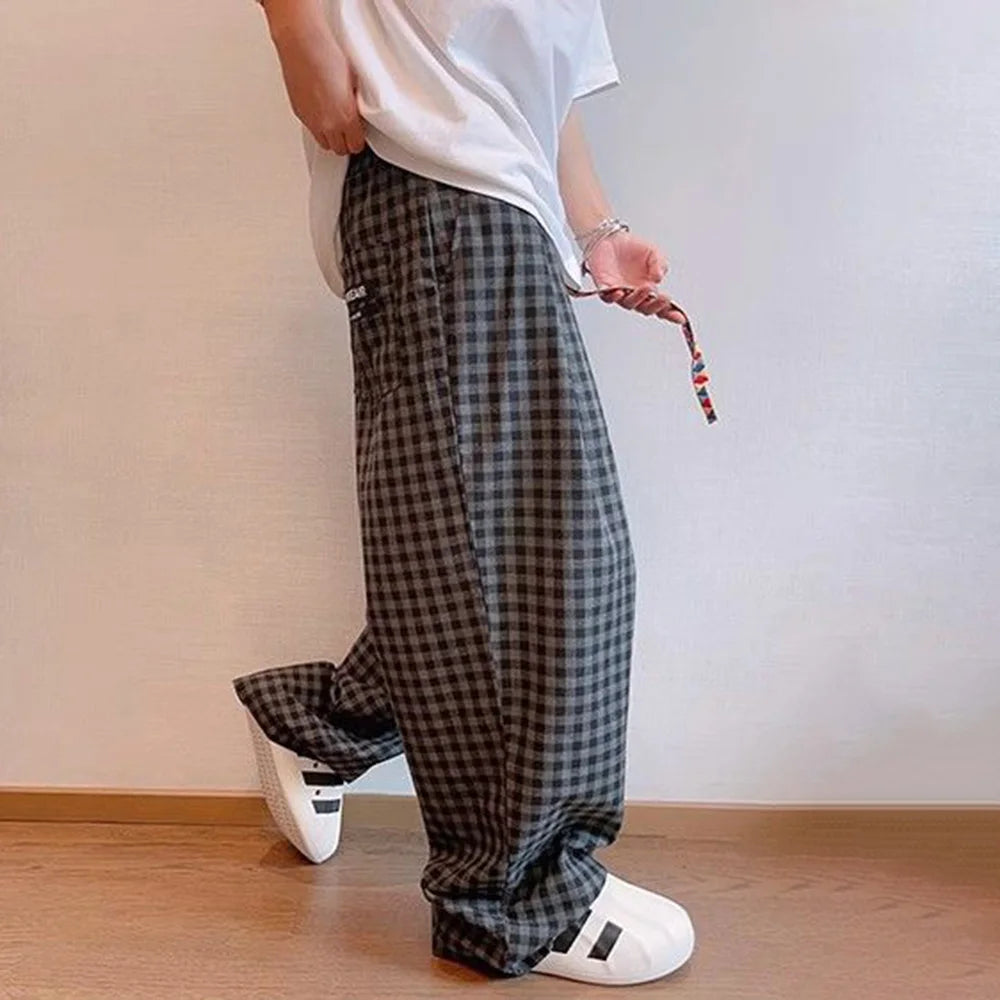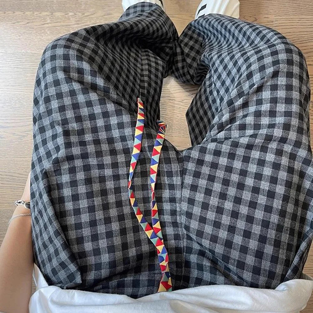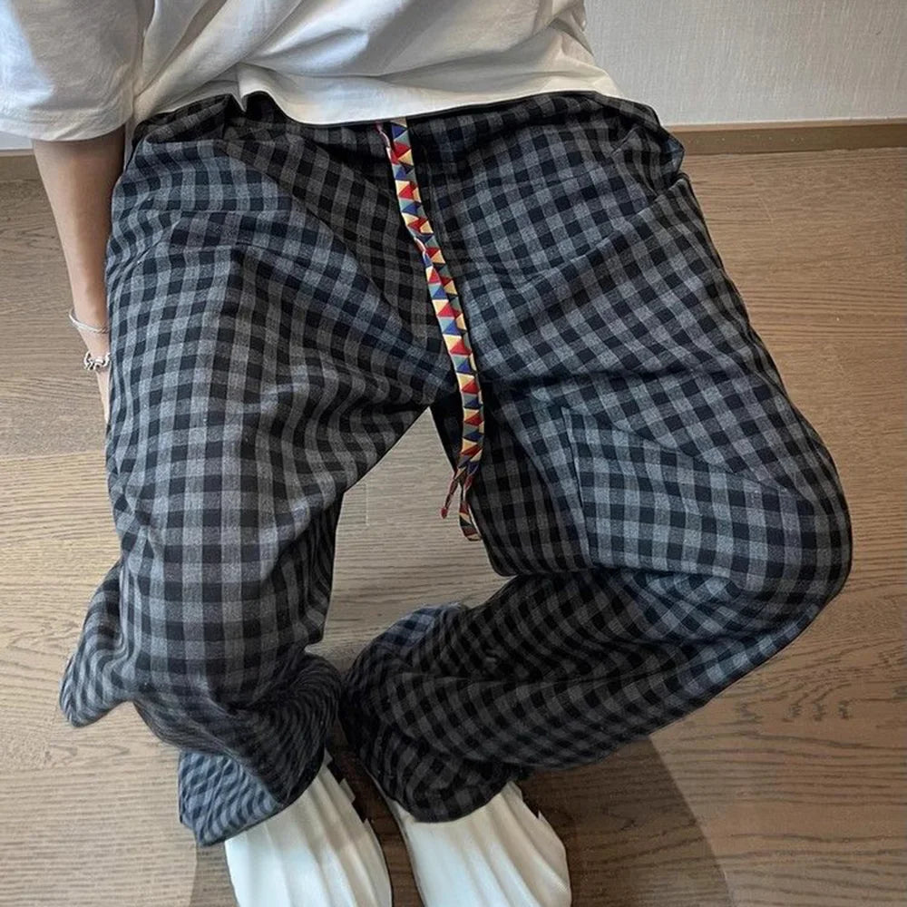 Bonsir Men Y2k Black Gray Contrast Plaid Casual Pants Daily Streetwear Casual Personality Versatile Comfortable Straight Pants Men 2024