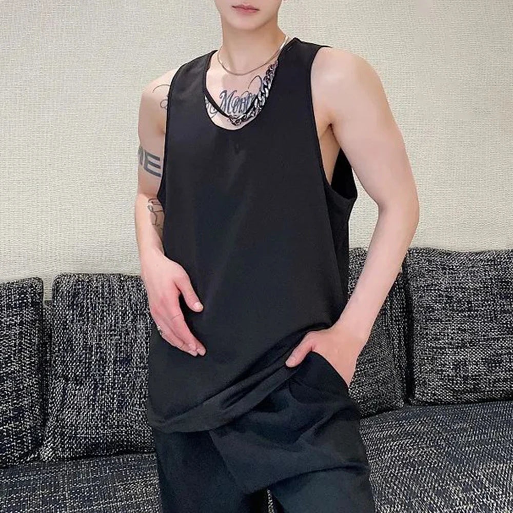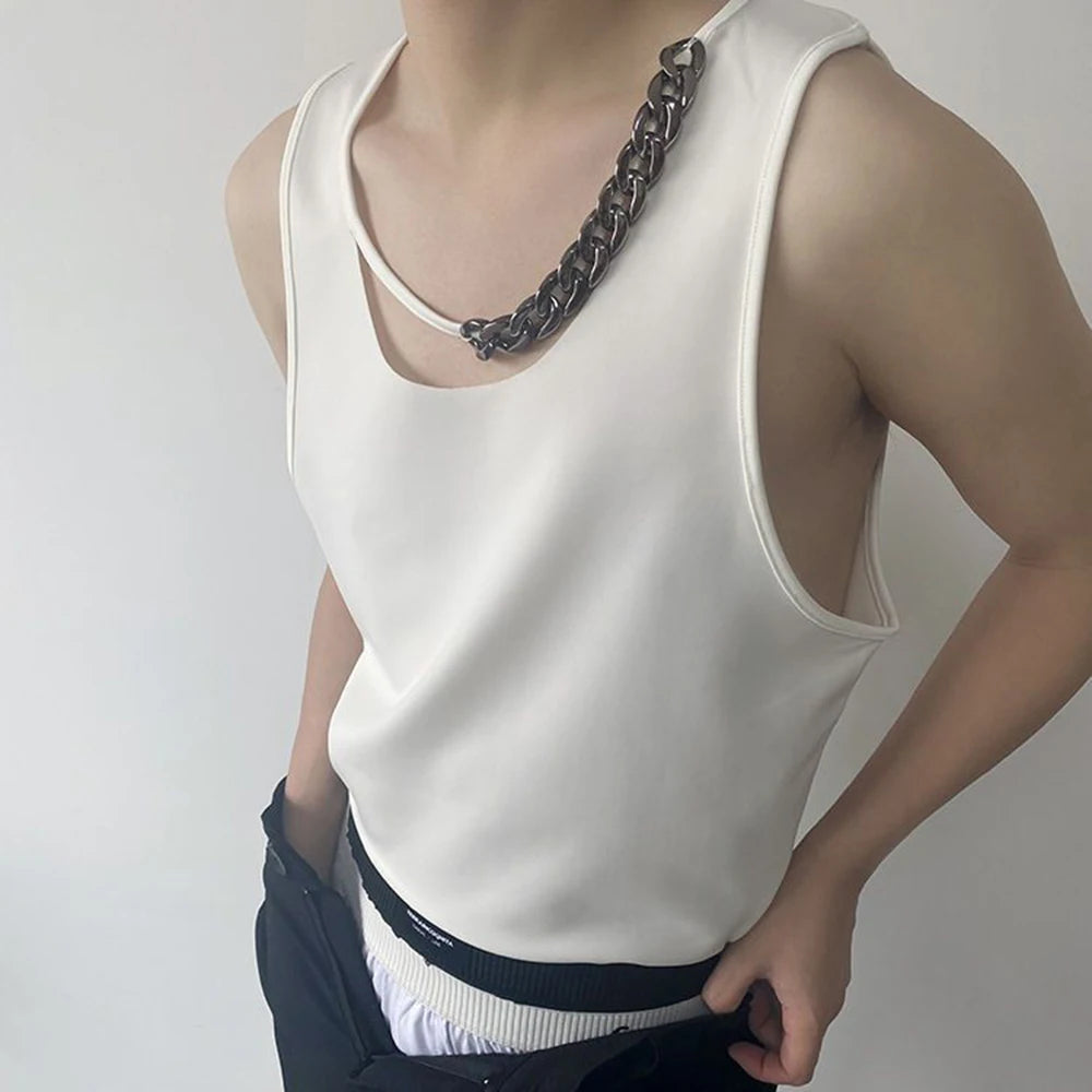 Bonsir Mens Casual Sexy Chain Design Vest New Genderless Streetwear Youth Trendy Nightclub Personalized Simple Top Unisex