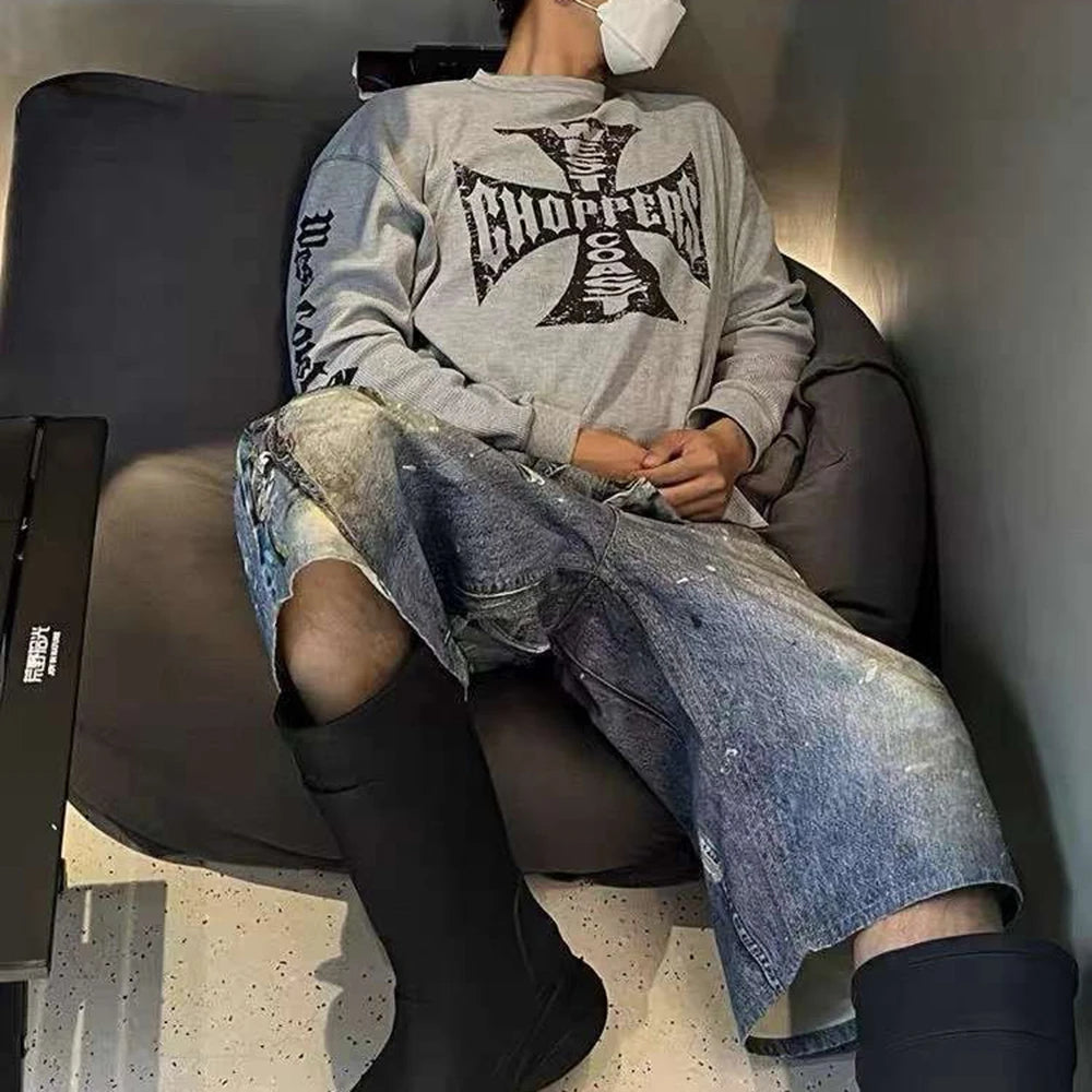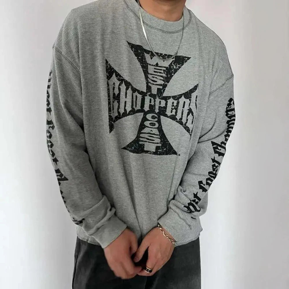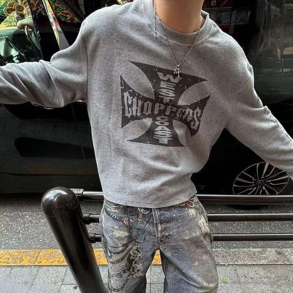 Bonsir Mens Clothing Spring Fashion Casual Loose Long-Sleeved T-Shirt American Street Trend Printing Retro Hip-Hop Y2k T-Shirt Men