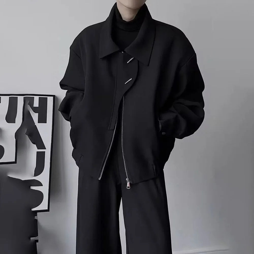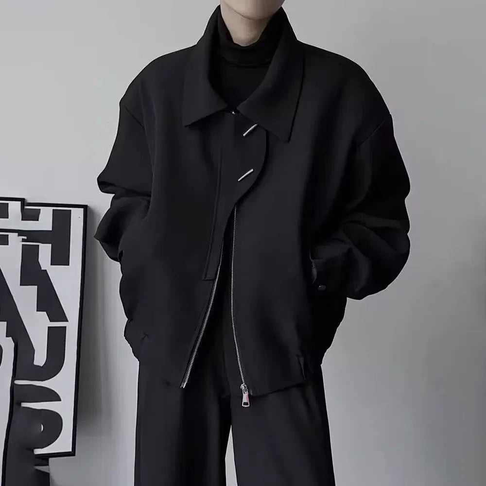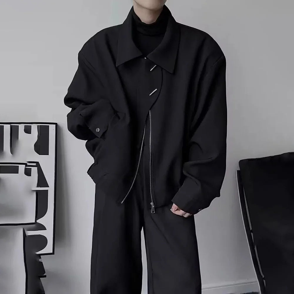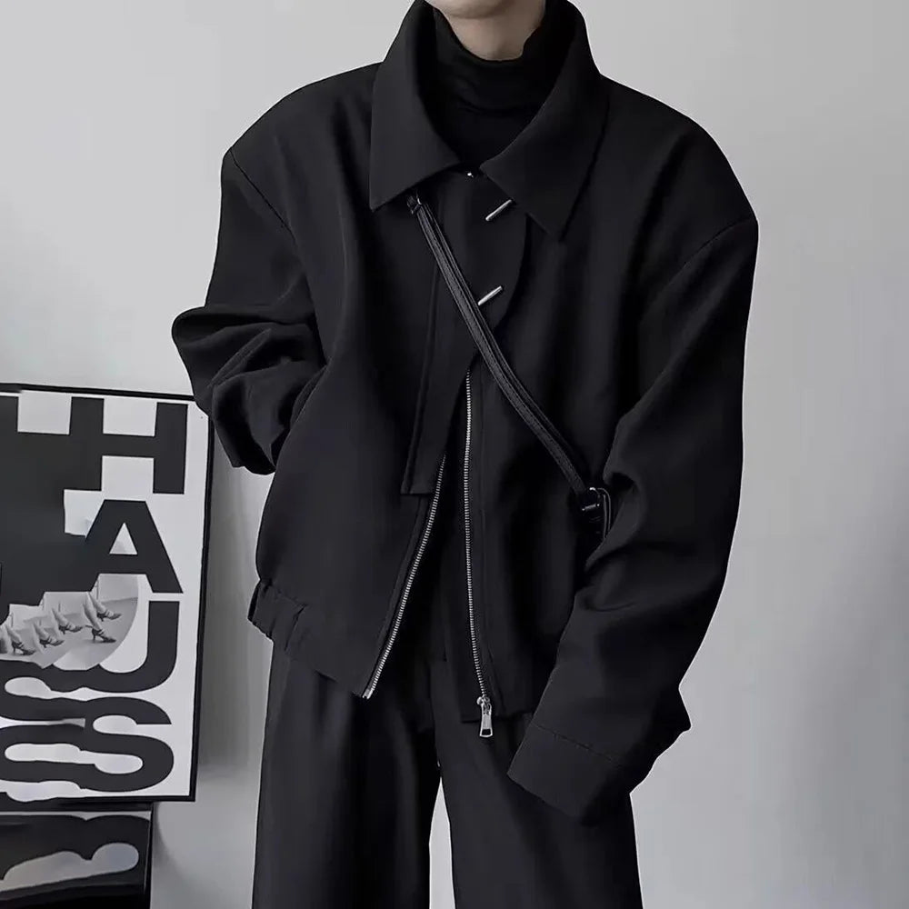 Bonsir Mens Jacket Short Asymmetric Placket Bomber Jacket Dark Streetwear Biker All-Match Trend Long Sleeve Top Men'S Clothing 2024