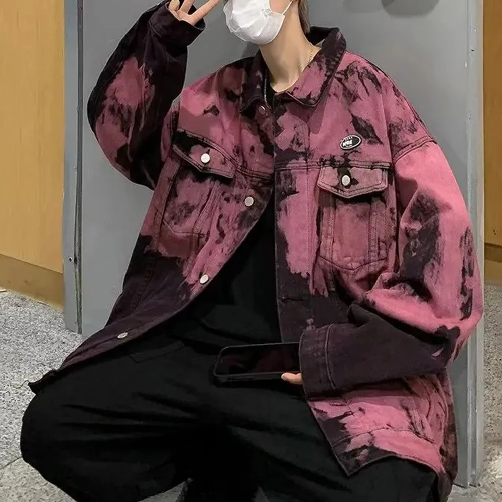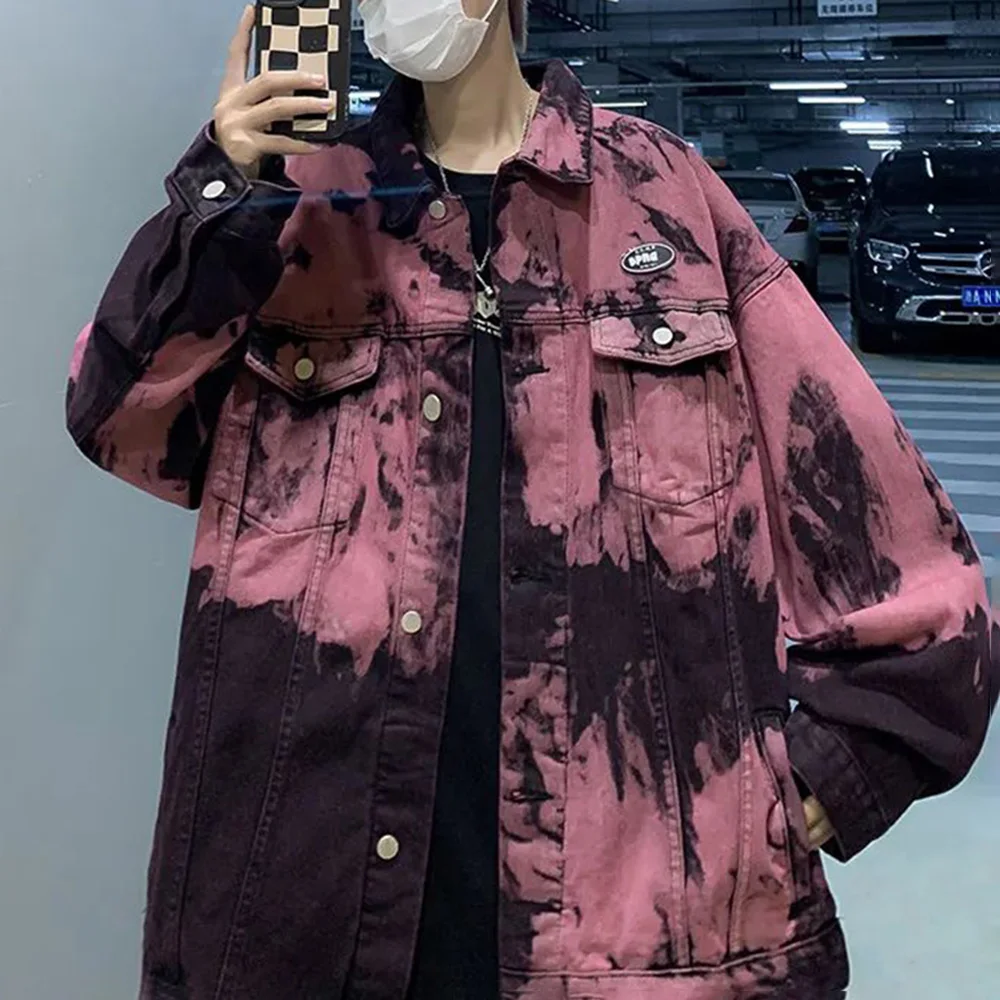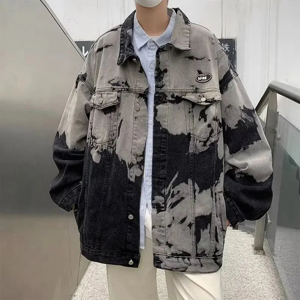 BONSIR - Mens Jackets High Street Hip Hop Retro Gradient Tie Dye American Style Denim Workwear Design Jacket Mens Spring Autumn New