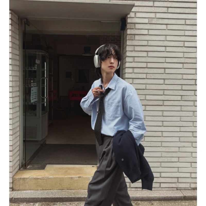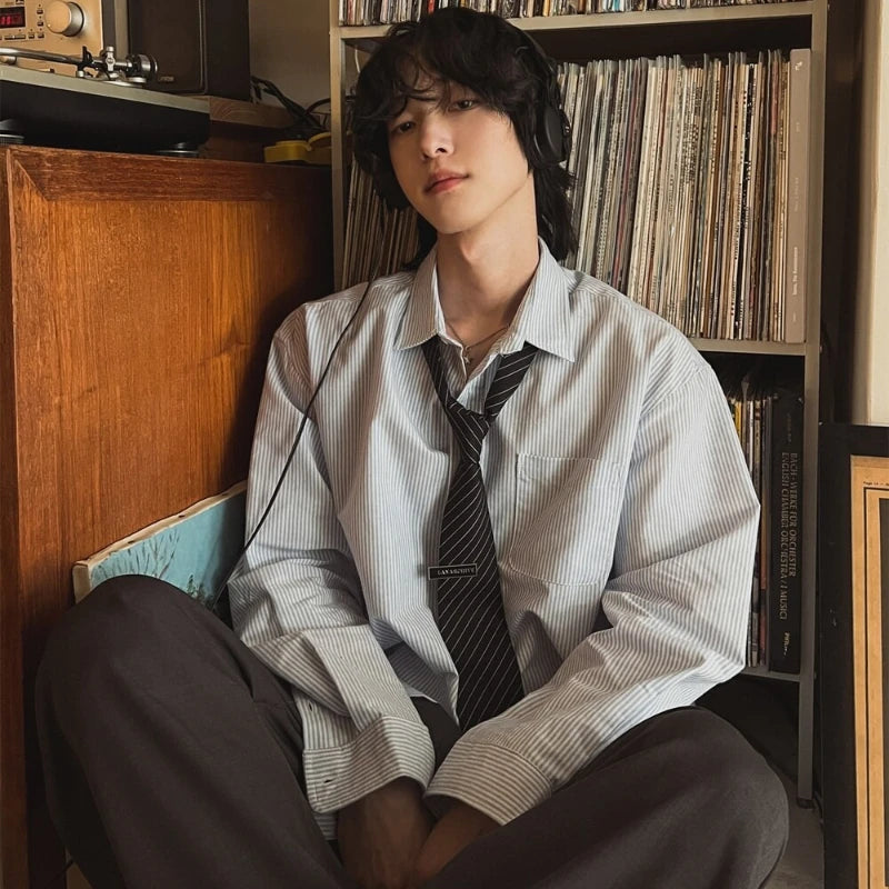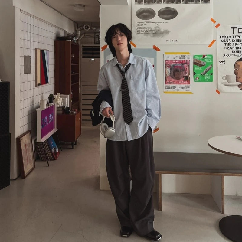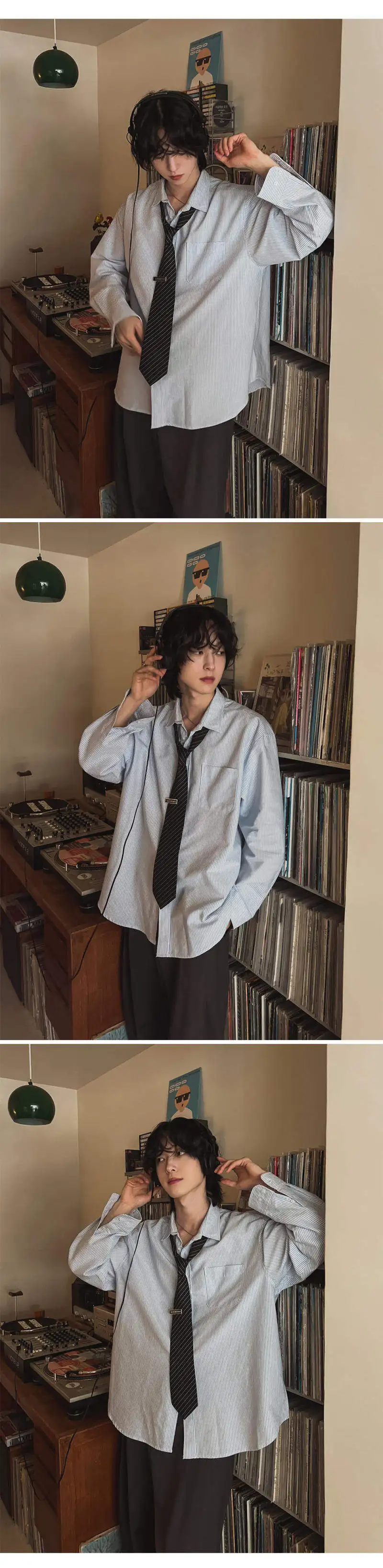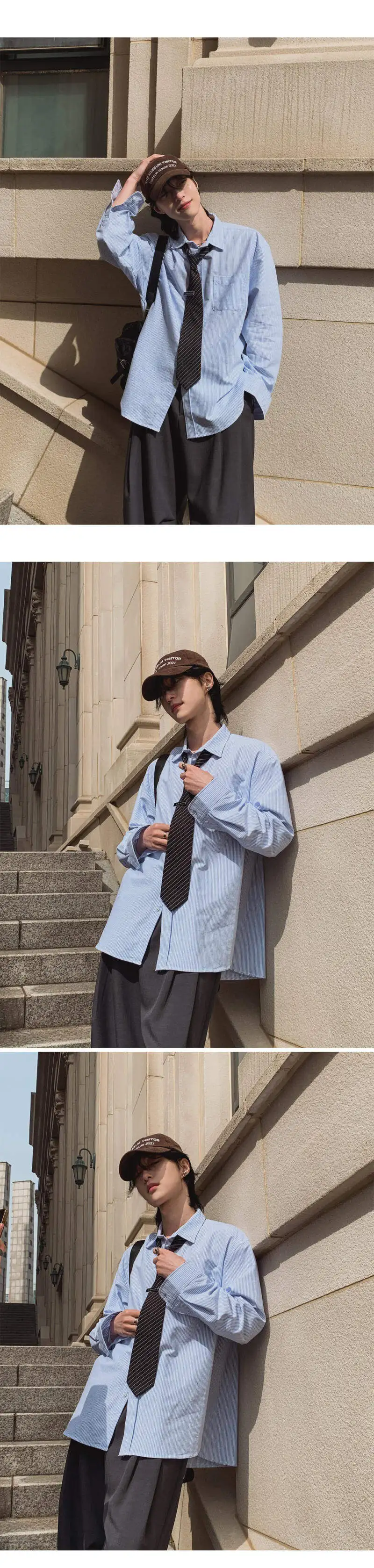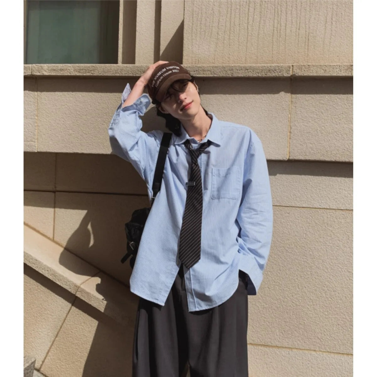 BONSIR - Men's Japanese-Inspired Oversized Long Sleeve Casual Shirt - Relaxed Fit Button-Down Streetwear Top for Trendy Layered Outfits