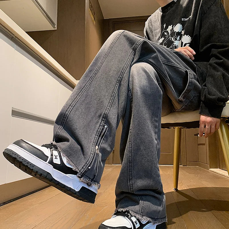 Bonsir Men's jeans 2024 Autumn Side Zipper Pants New Fashion men streetwear Jeans Loose Straight Denim Pant Mens jeans homme hip hop