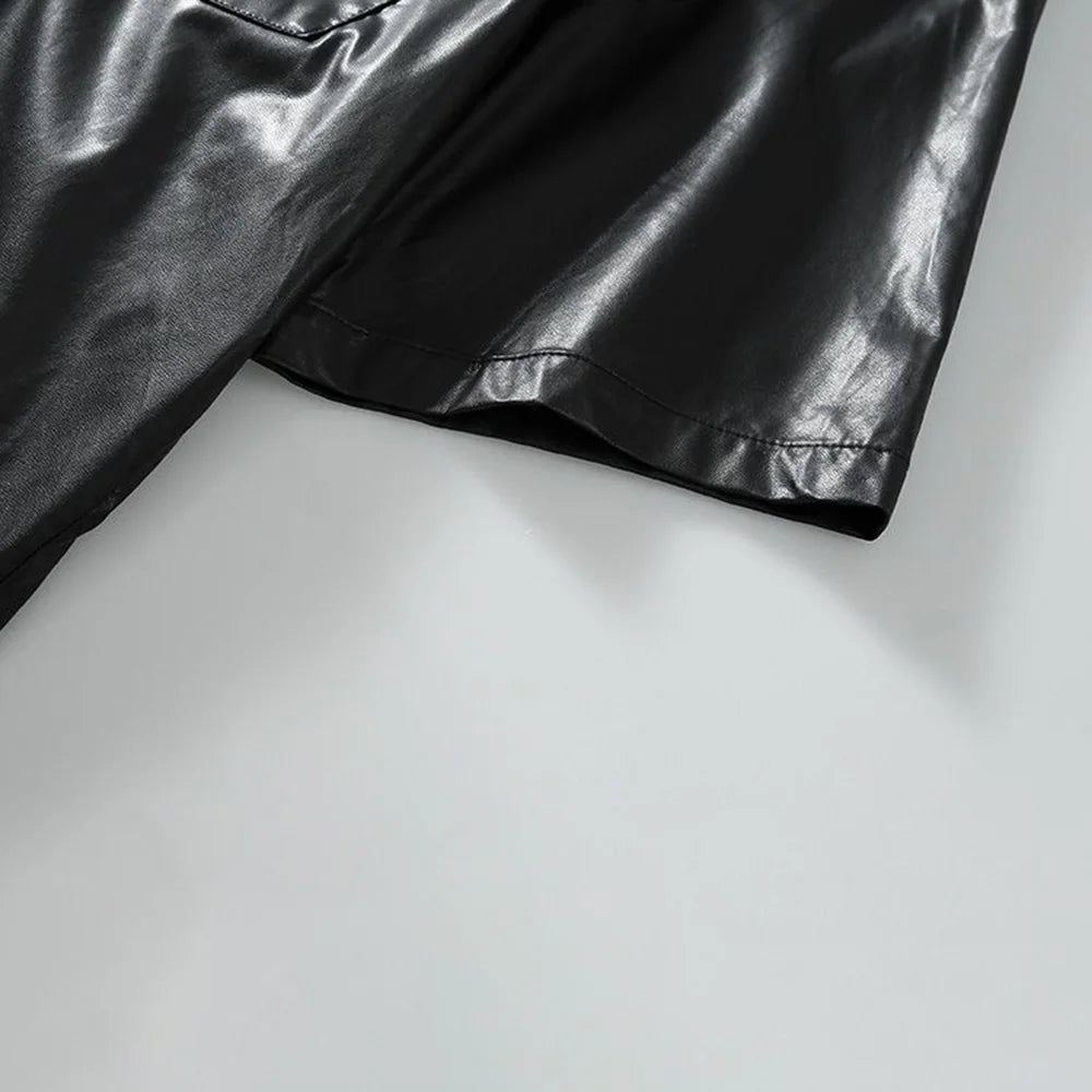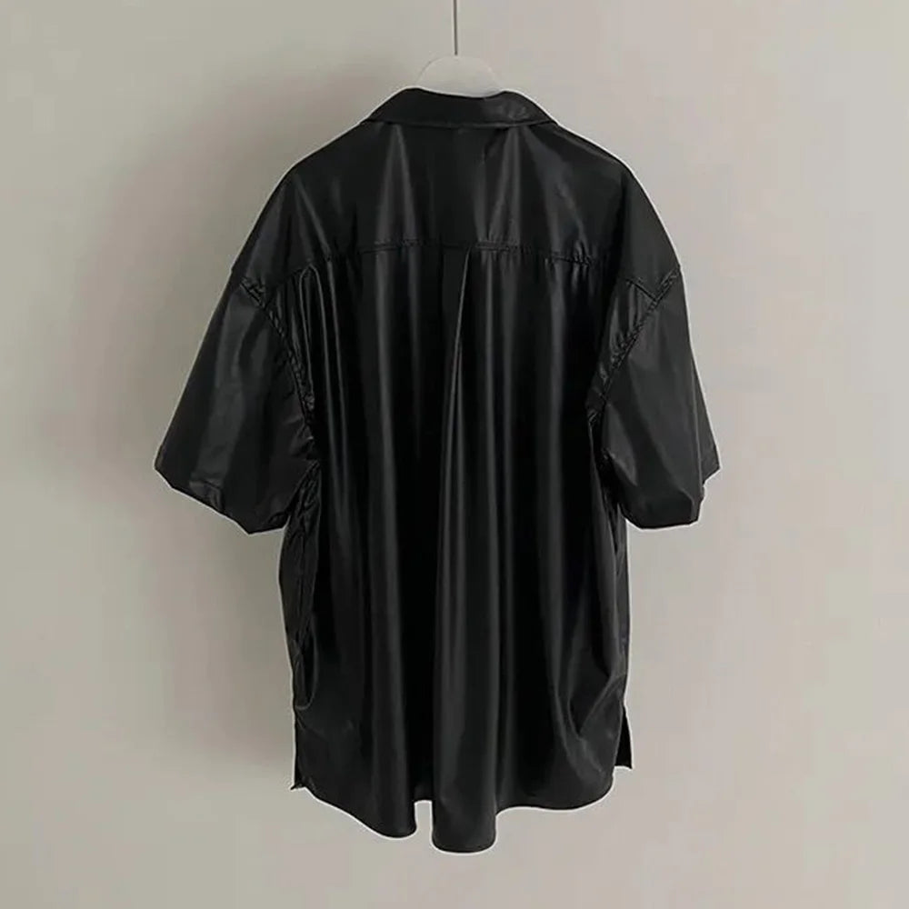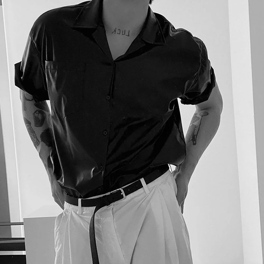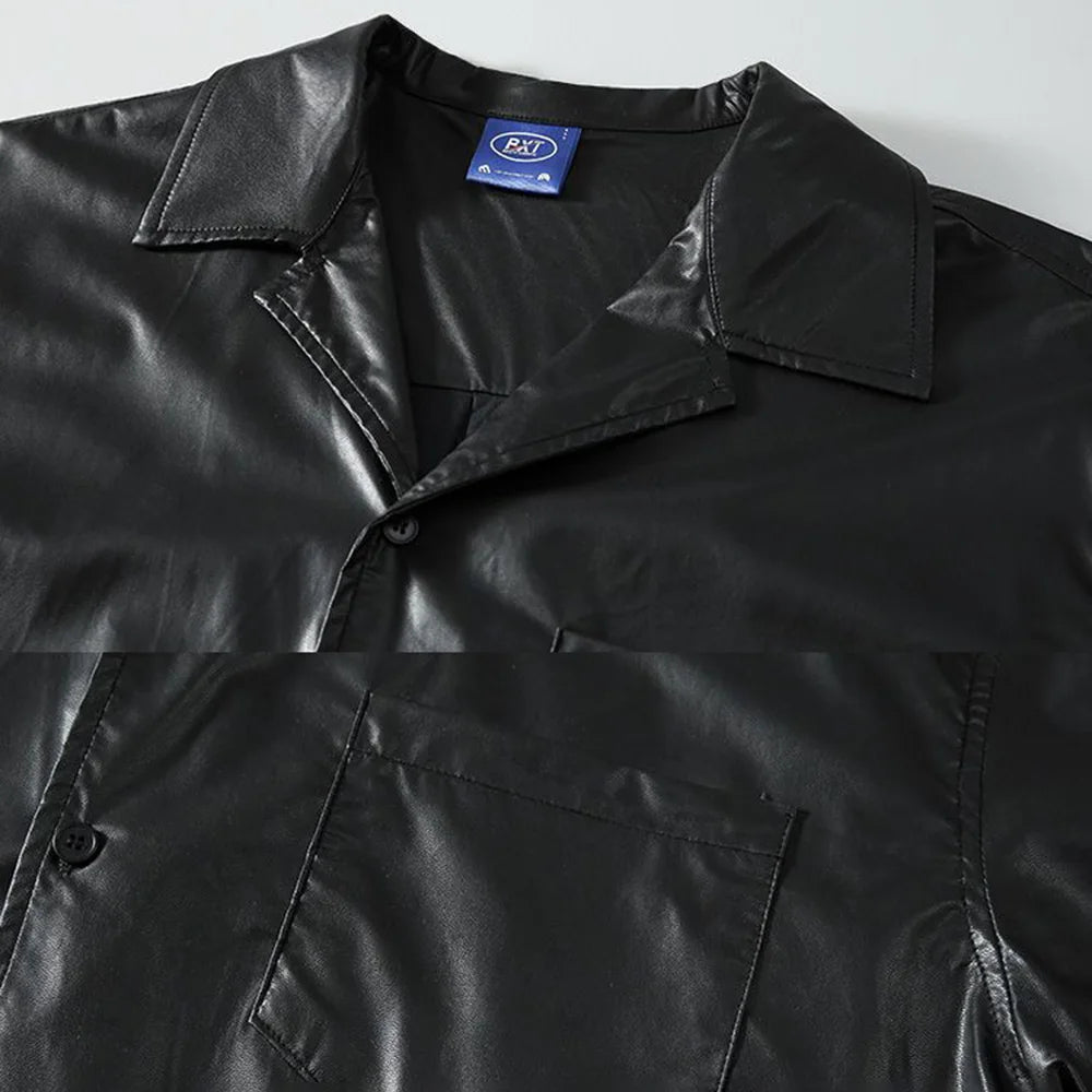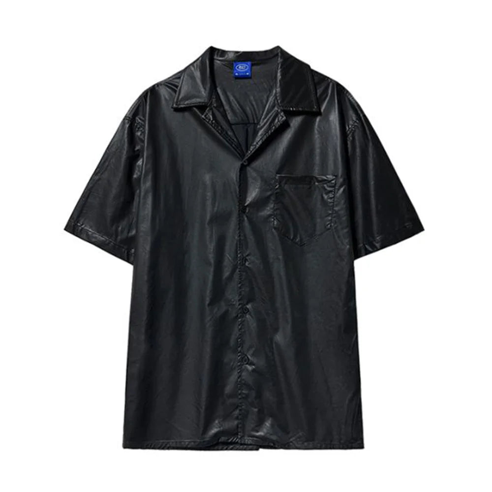 Bonsir Mens Leather Shirt Motorcycle Short-Sleeve Fashion Streetwear Niche Teenager Temperament Personality Shirt Top Men'S Clothing