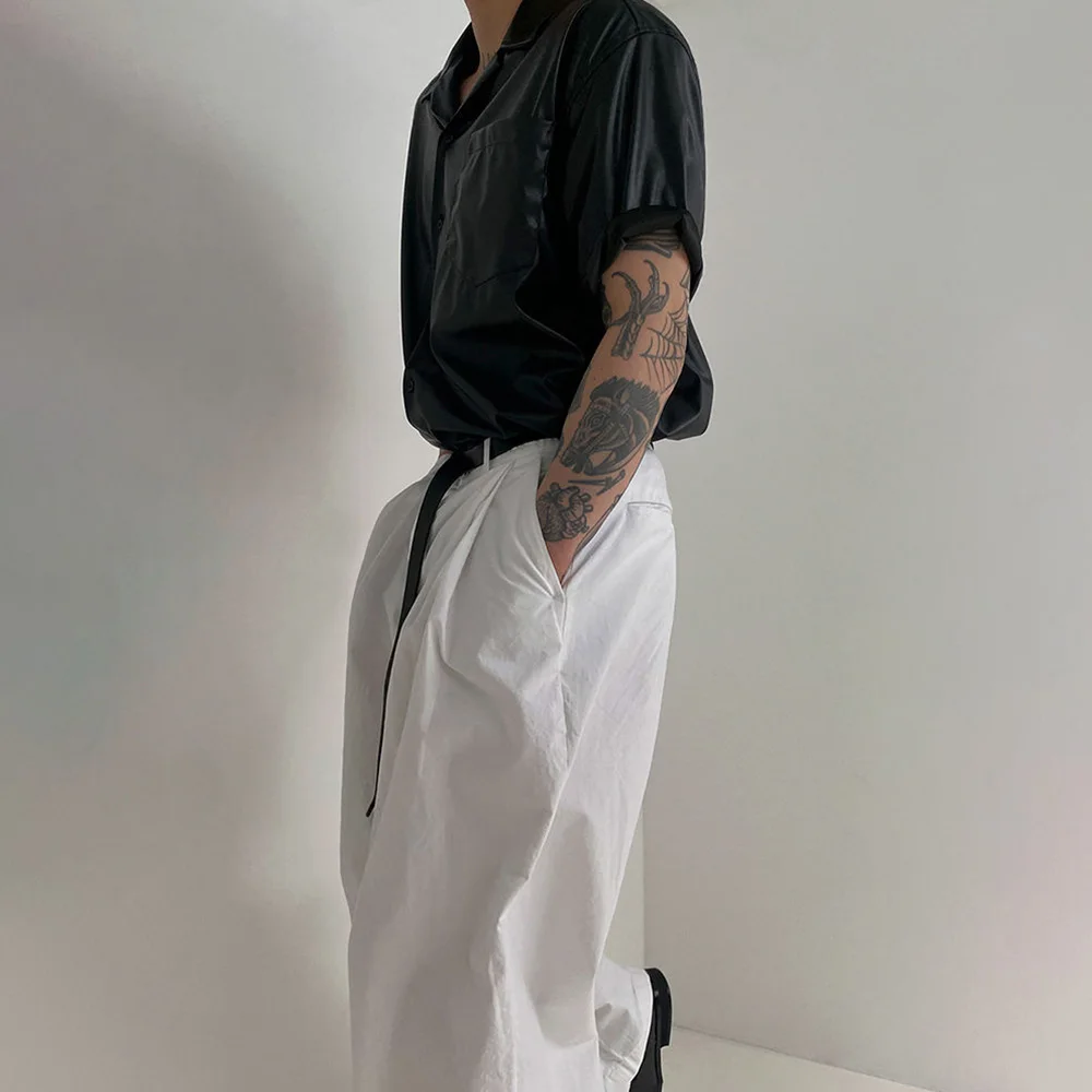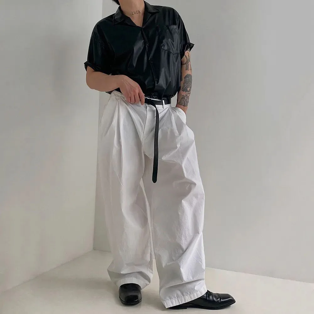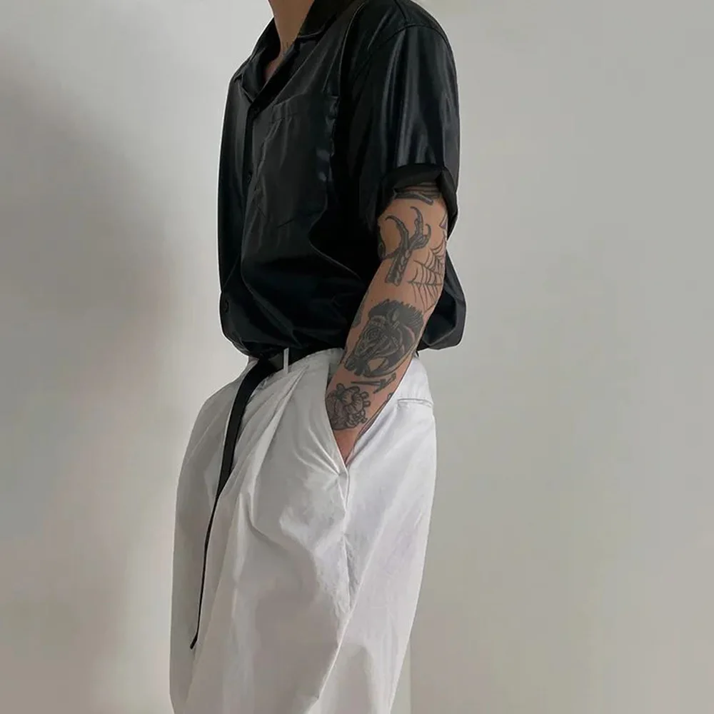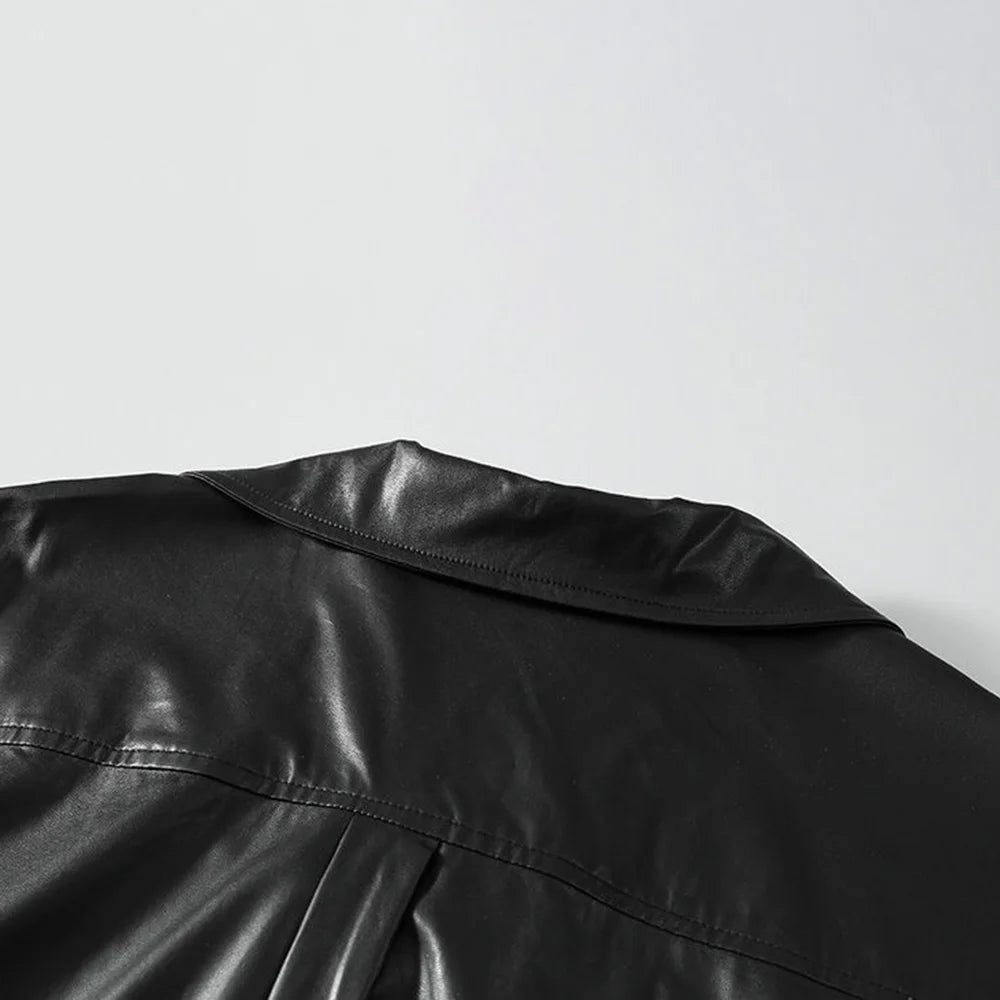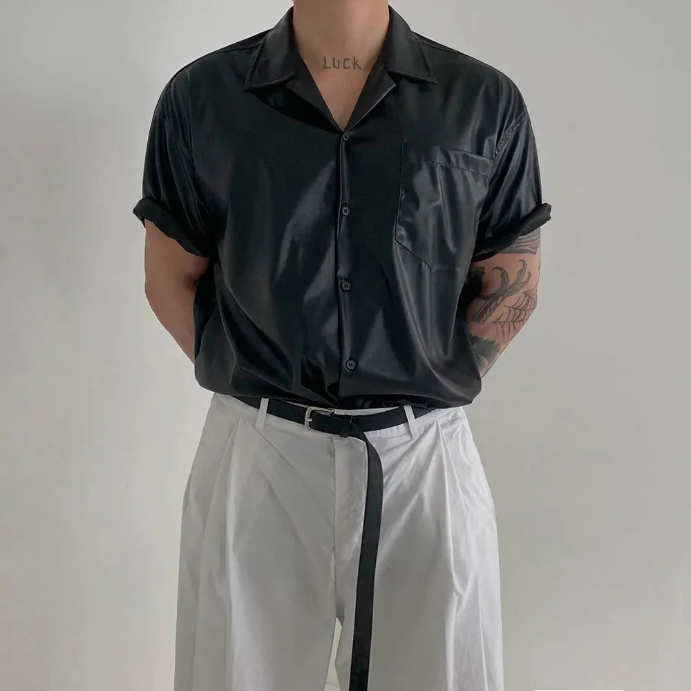 Bonsir Mens Leather Shirt Motorcycle Short-Sleeve Fashion Streetwear Niche Teenager Temperament Personality Shirt Top Men'S Clothing