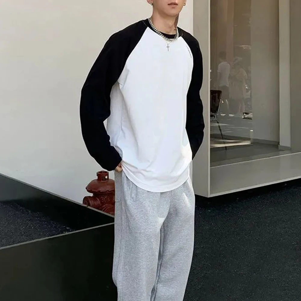 Bonsir Men's Long-Sleeved Tops Cotton Fleece Fashion Comfortable Versatile Hip-Hop Street American Style Contrasting Color Pullovers