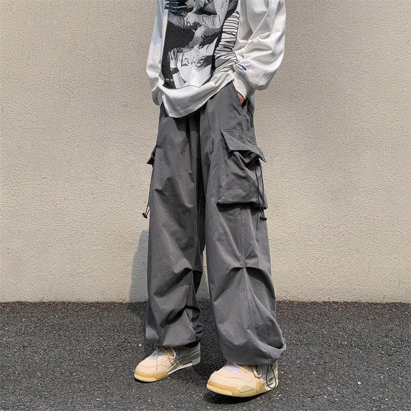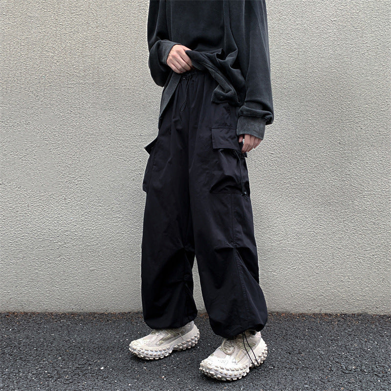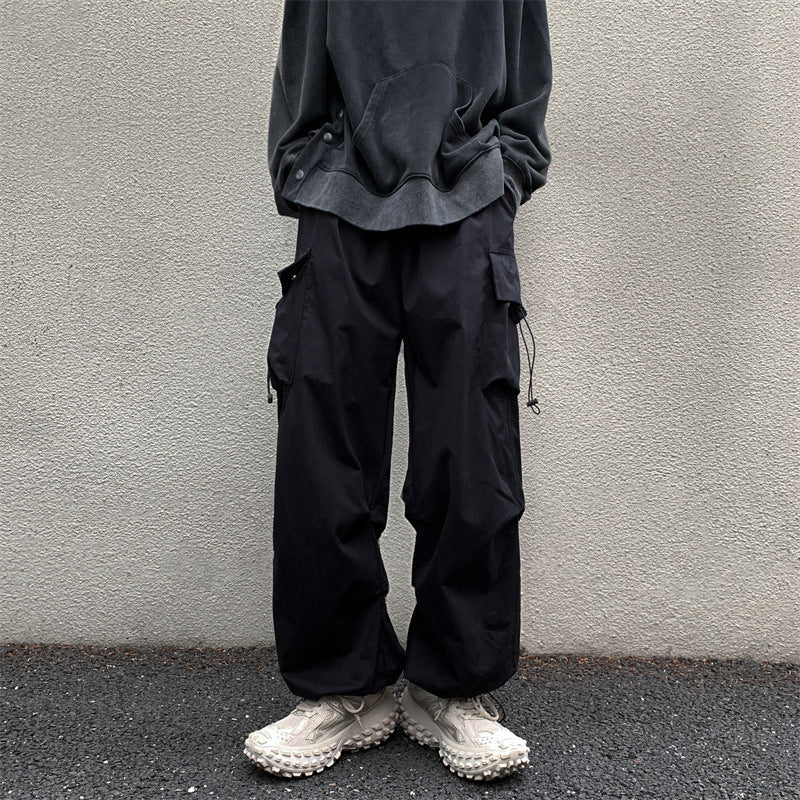 Bonsir mens outfit inspiration American Style Overalls Men's Vintage Retro High Street Loose Casual Pants Functional Wind Drawstring Ankle-Tied Trousers