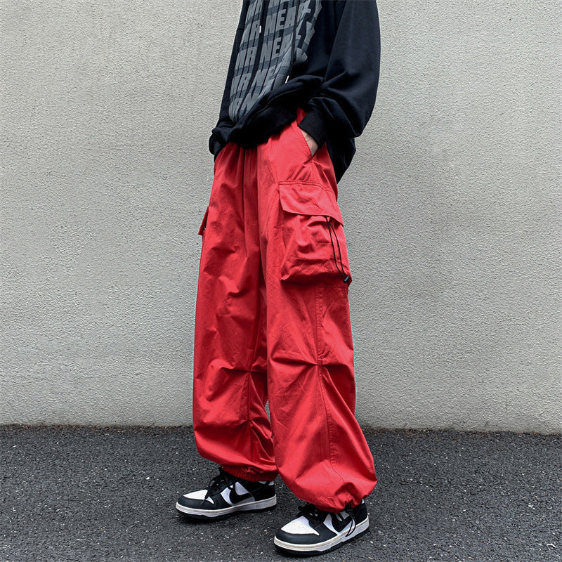 mens outfit inspiration American Style Overalls Men's Vintage Retro High Street Loose Casual Pants Functional Wind Drawstring Ankle-Tied Trousers