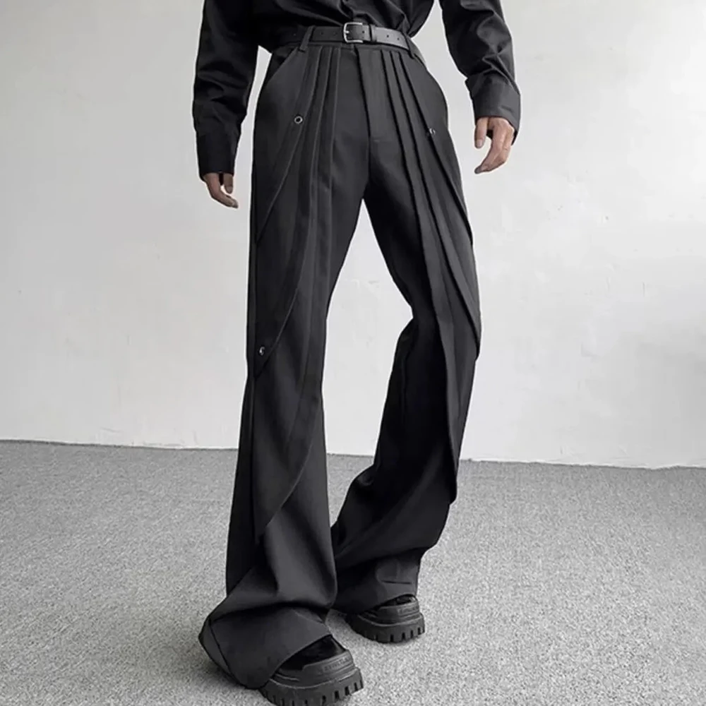 Bonsir Mens Pants Line Pleated Metal Casual Pants Streetwear Y2k Fashion Youth Campus Micro Bell Bottom Pants Men'S Clothing New