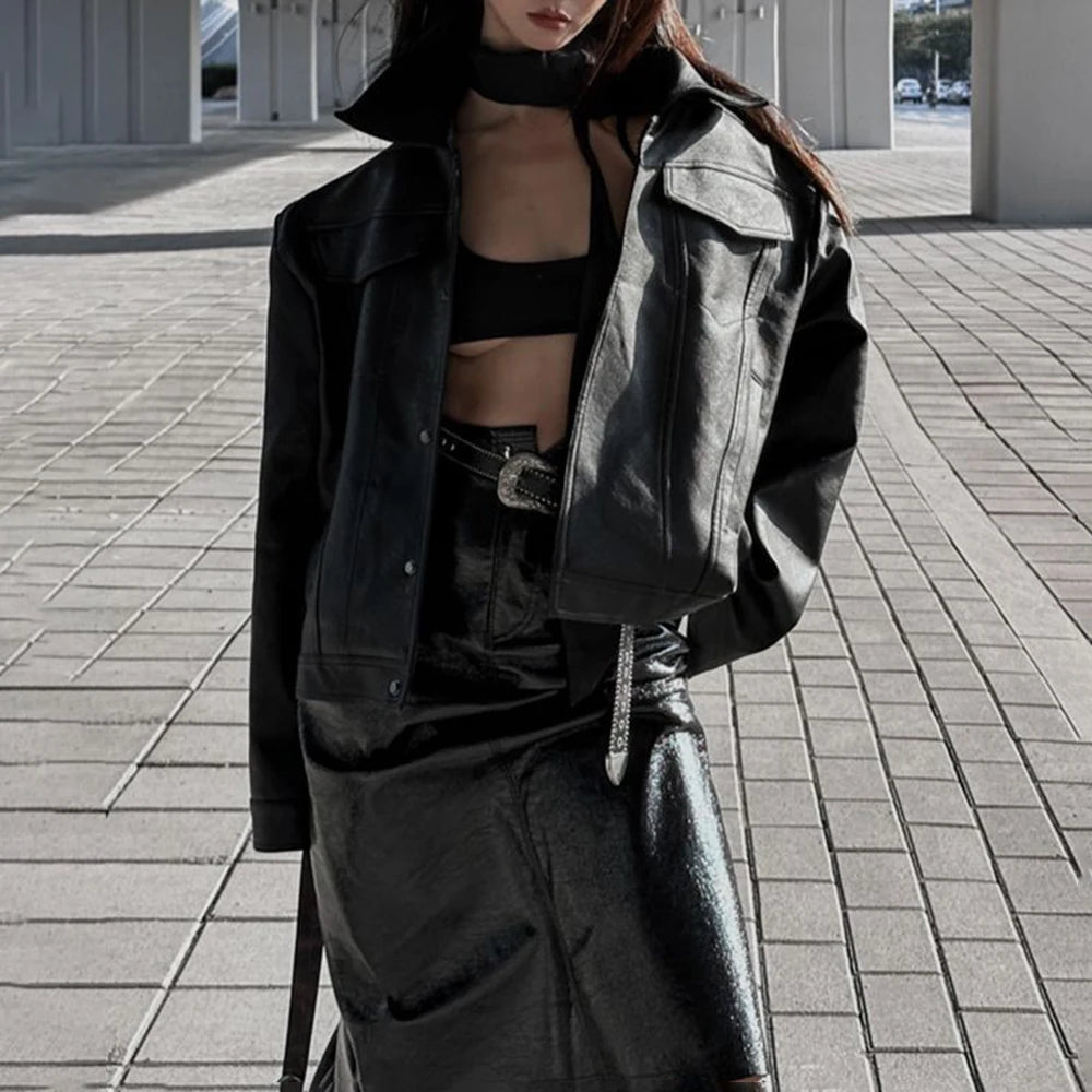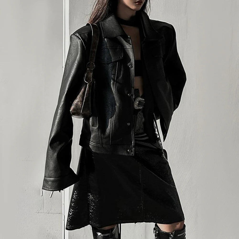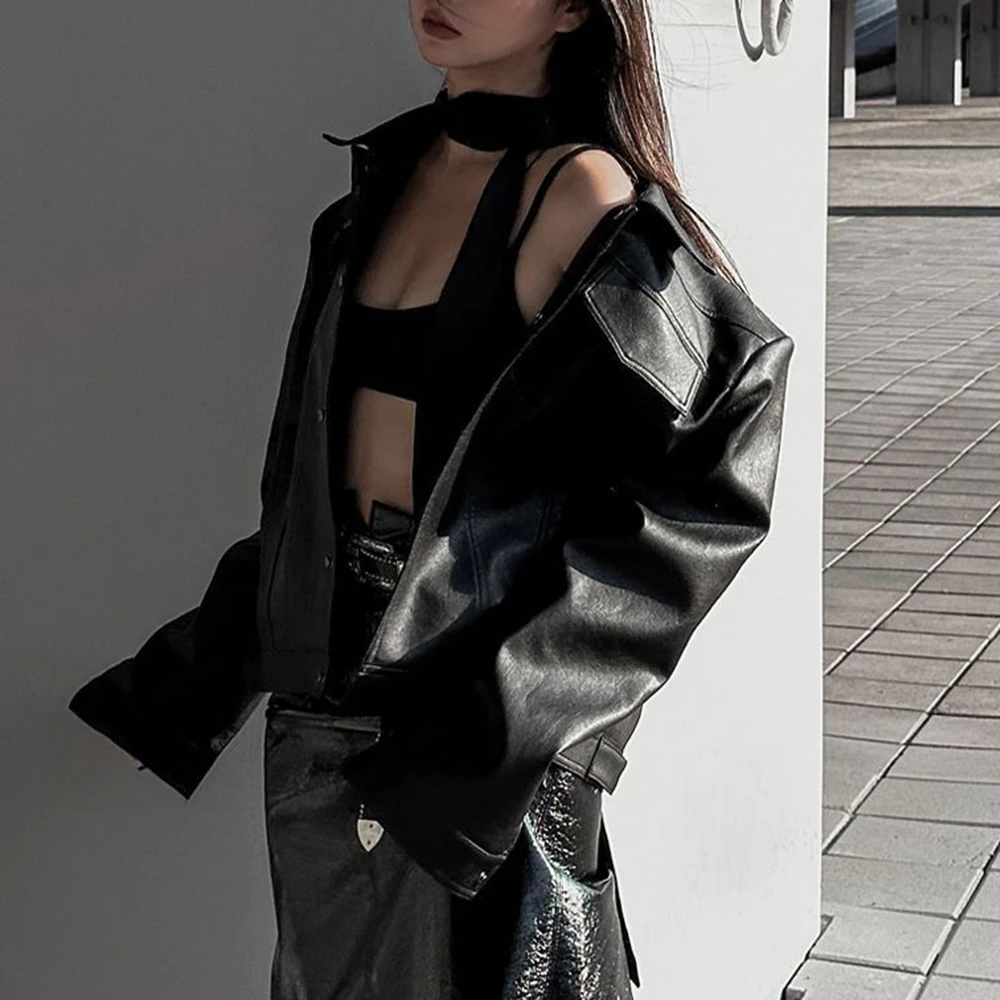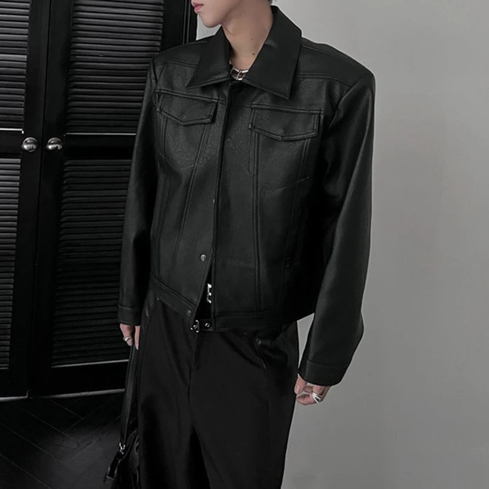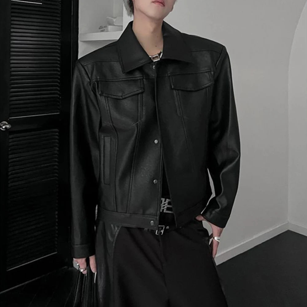 Bonsir Mens Pu Jacket Motorcycle Pocket Pu Leather Jacket Spring Streetwear Fashion Harajuku Grunge Coat Old Money Men'S Wear 2025 New