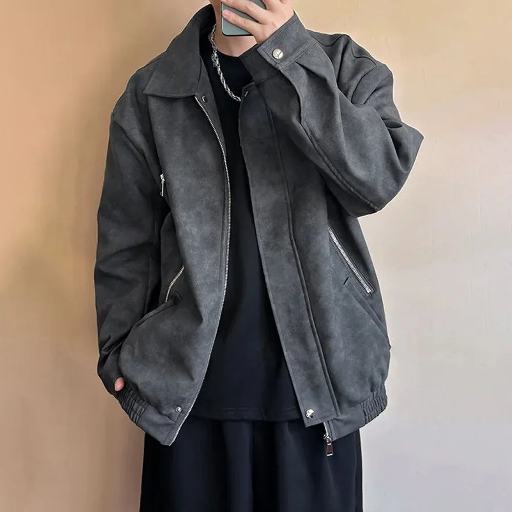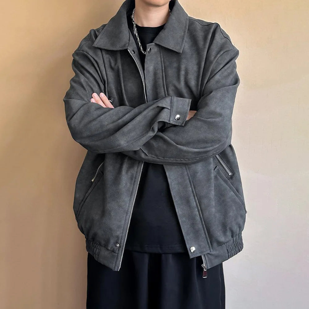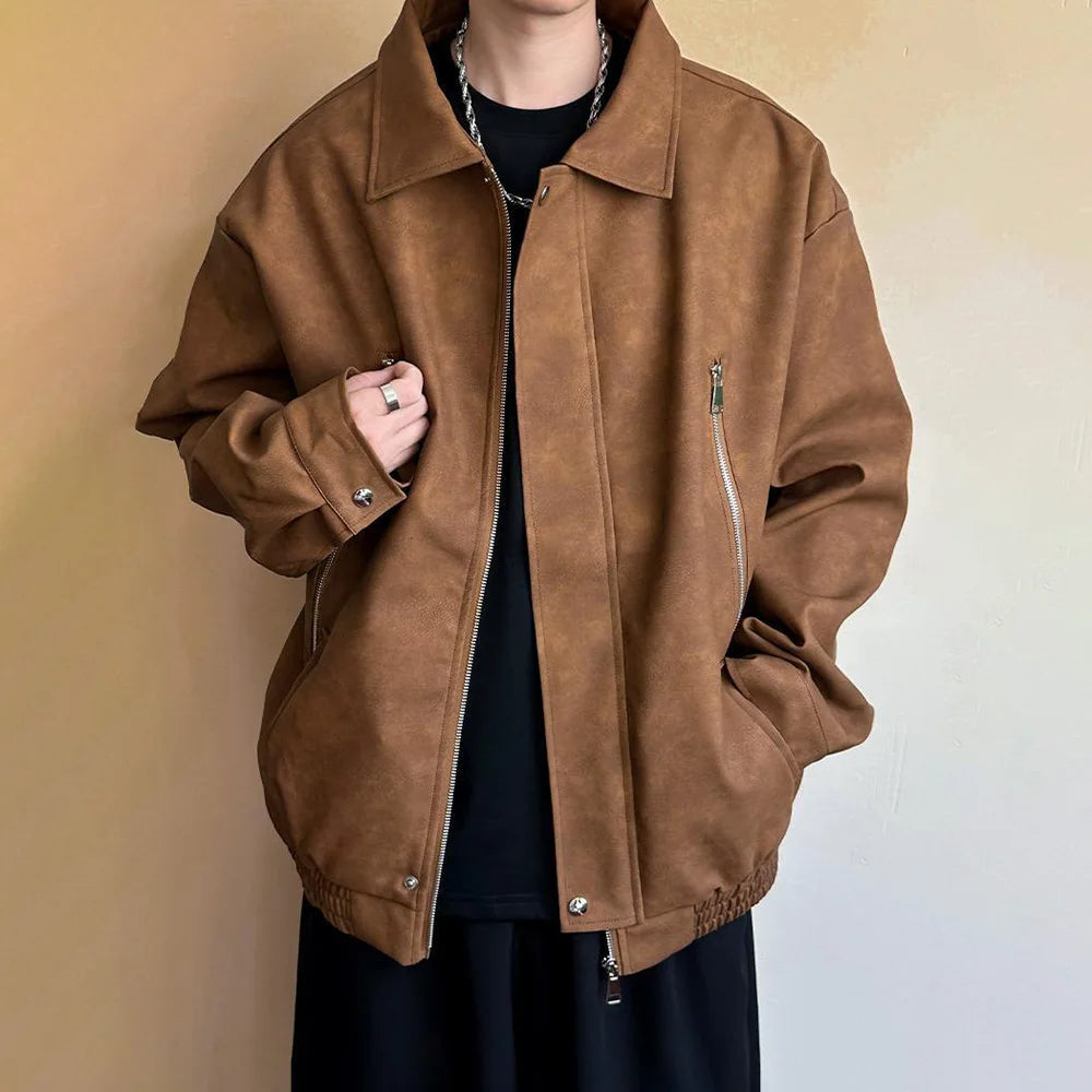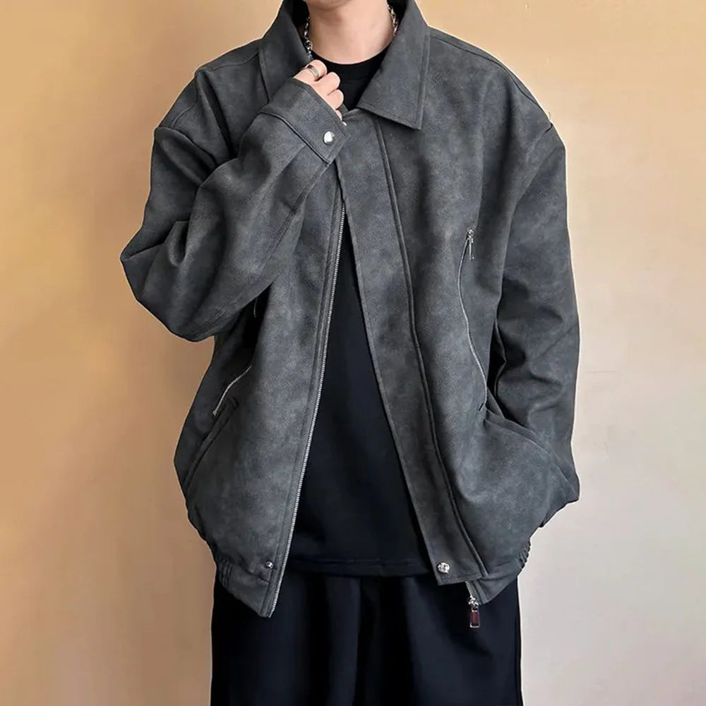 Bonsir Mens Pu Leather Jacket Workwear Style Side Zipper Jacket Fashion Streetwear Versatile Trend Leather Casual Jacket Men'S Clothing