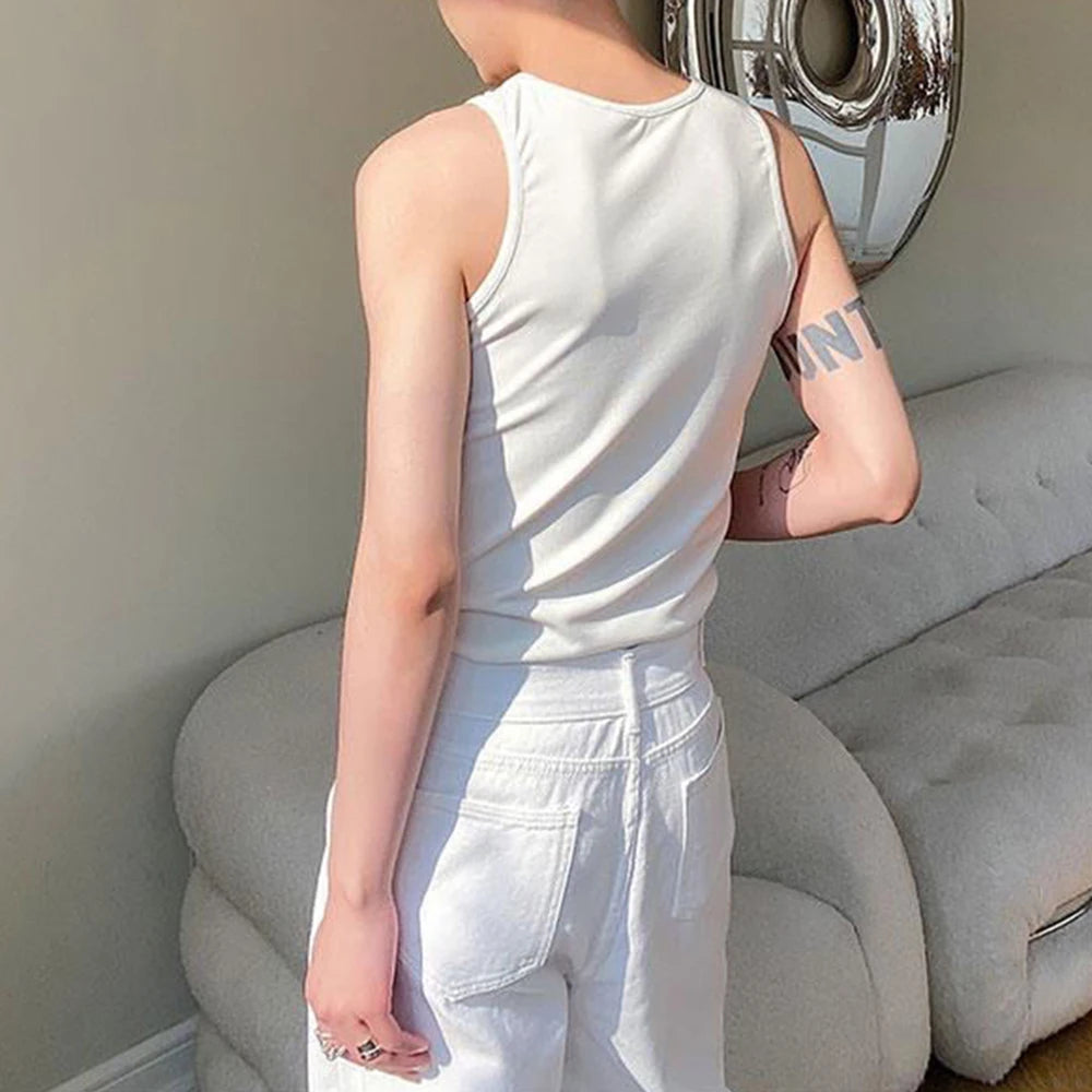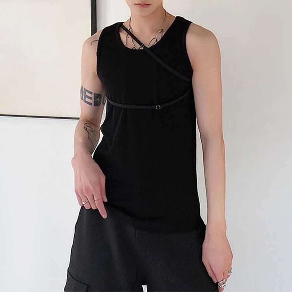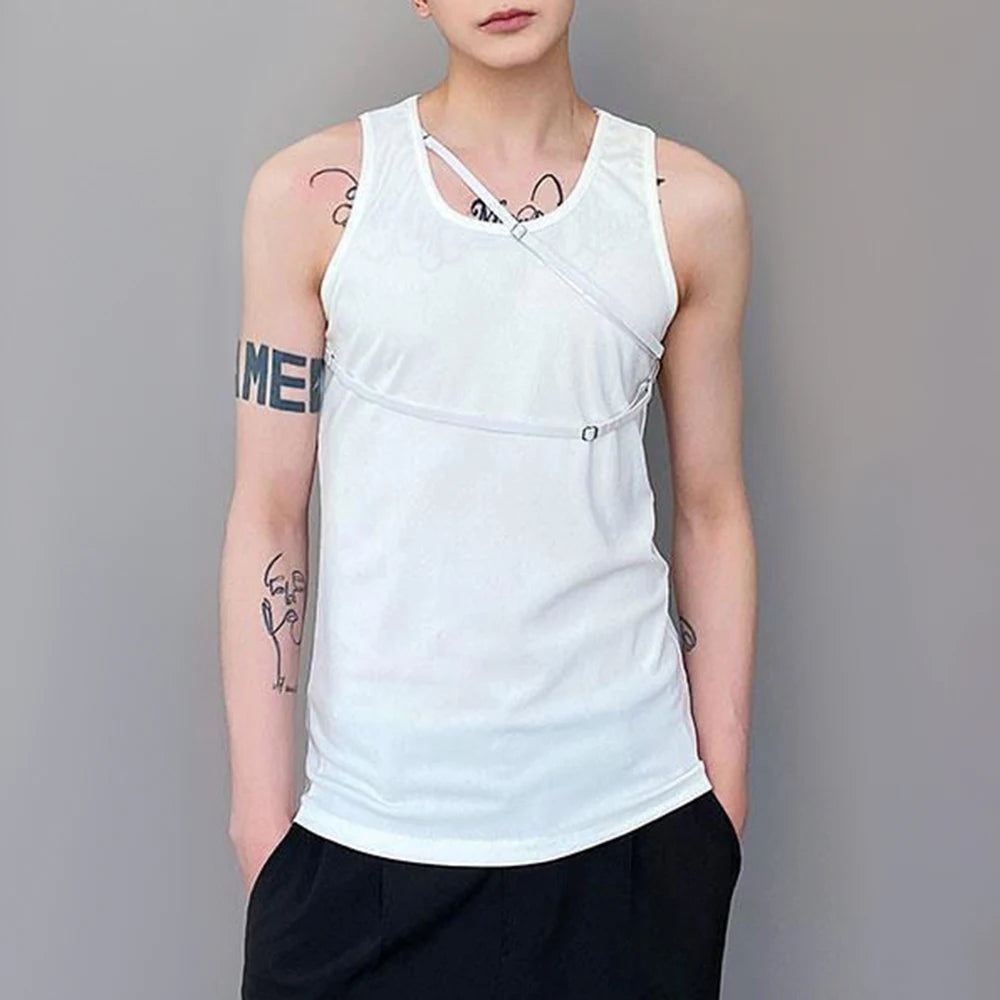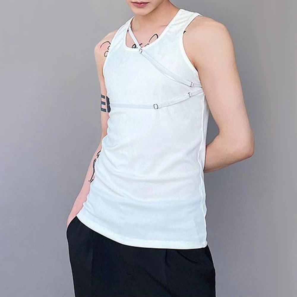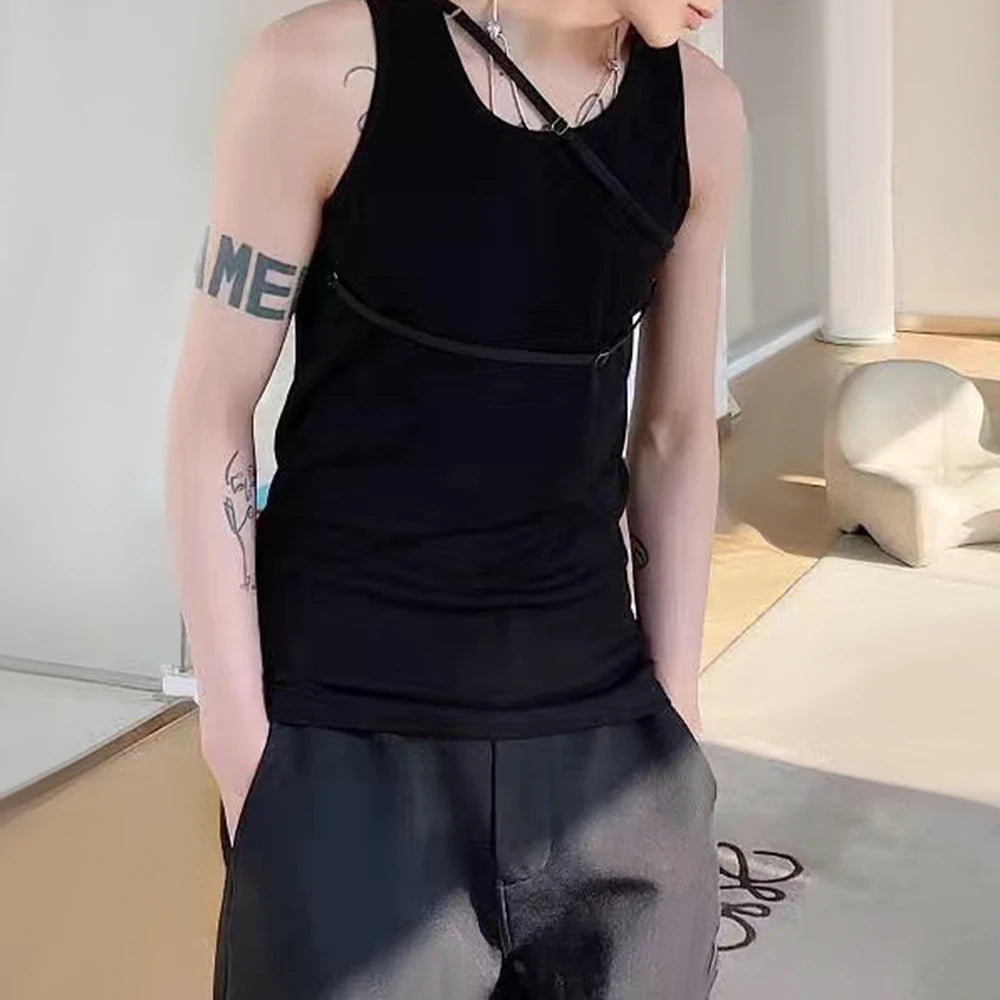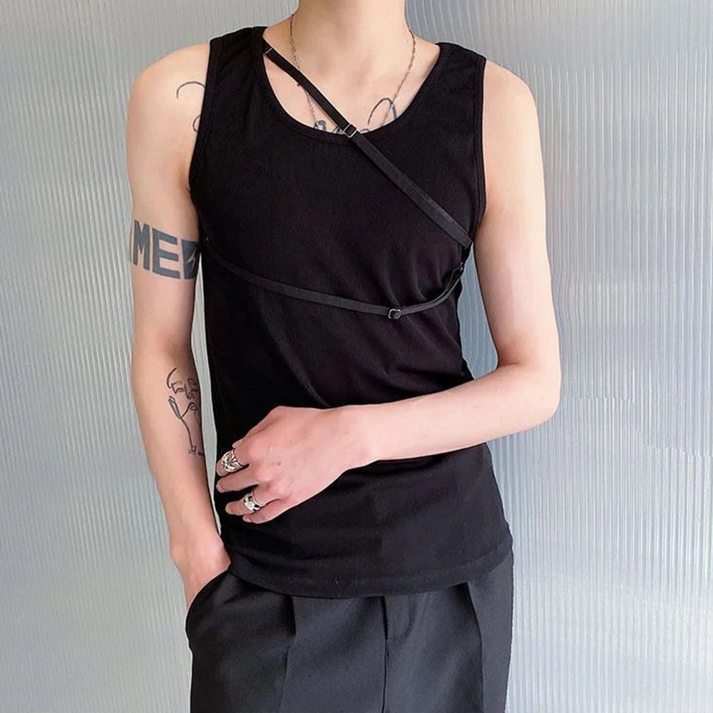 Bonsir Mens Sexy Strap Design Vest New Genderless Fashion Casual Streetwear Shaping Nightclub Versatile Solid Color Vest Unisex