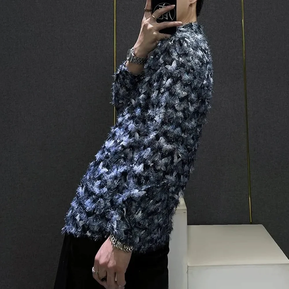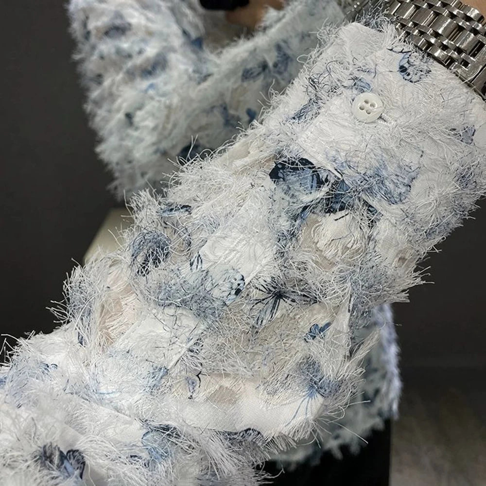Bonsir Mens Shirt Butterfly Raw Edge Fringe Shirt Autumn Streetwear Niche Campus Performance Casual Long Sleeve Top Men'S Clothing