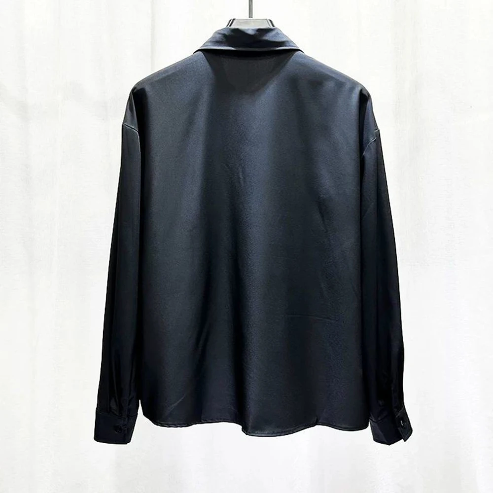 Bonsir Mens Shirt Ribbon Tassel Shirt Spring Streetwear Niche Personality Casual Youth Trend Funny Long-Sleeve Top Men'S Clothing
