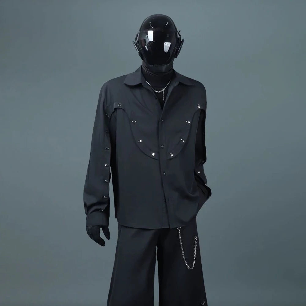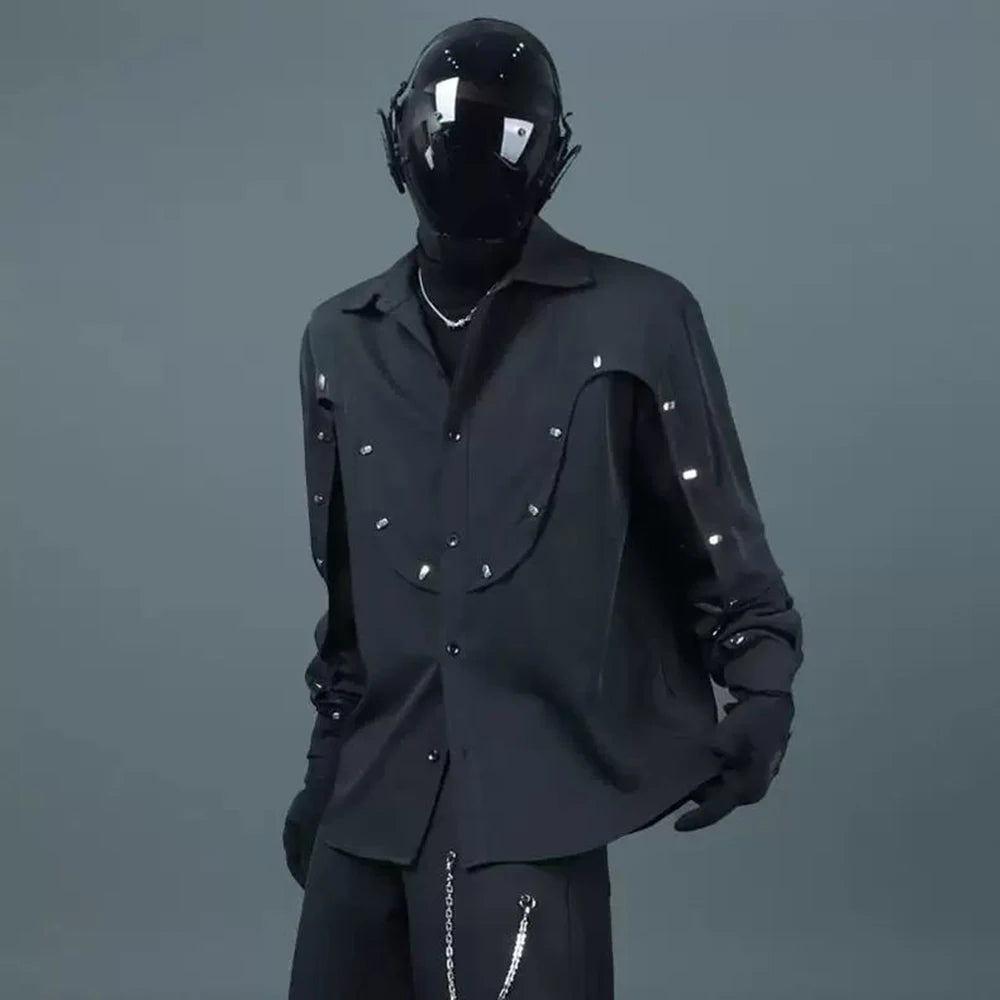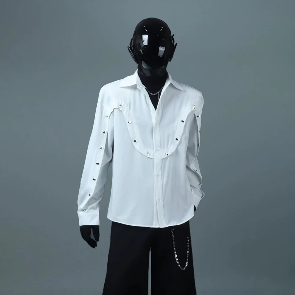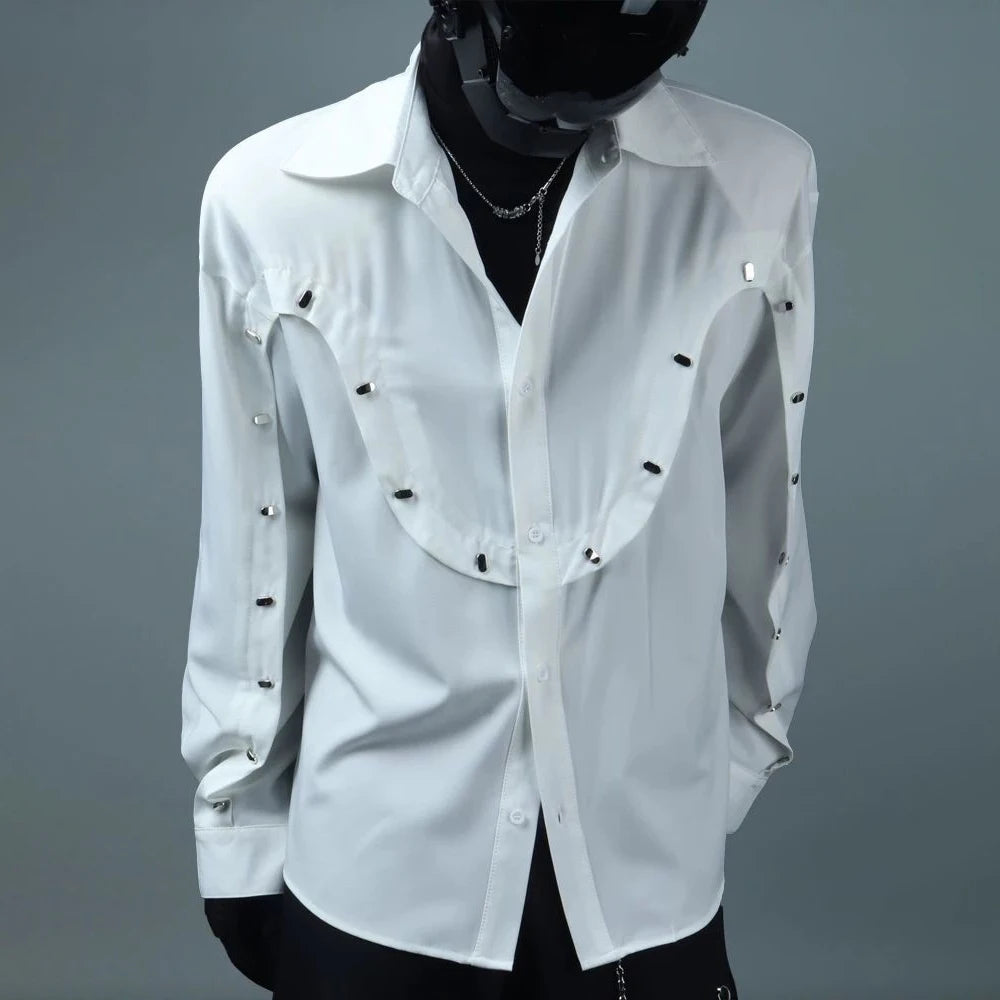 Bonsir Mens Shirt Rivet Stitching Casual Shirt Spring Street Wear Fashion Personality All-Match Long-Sleeve Top Men'S Clothing 2025 New