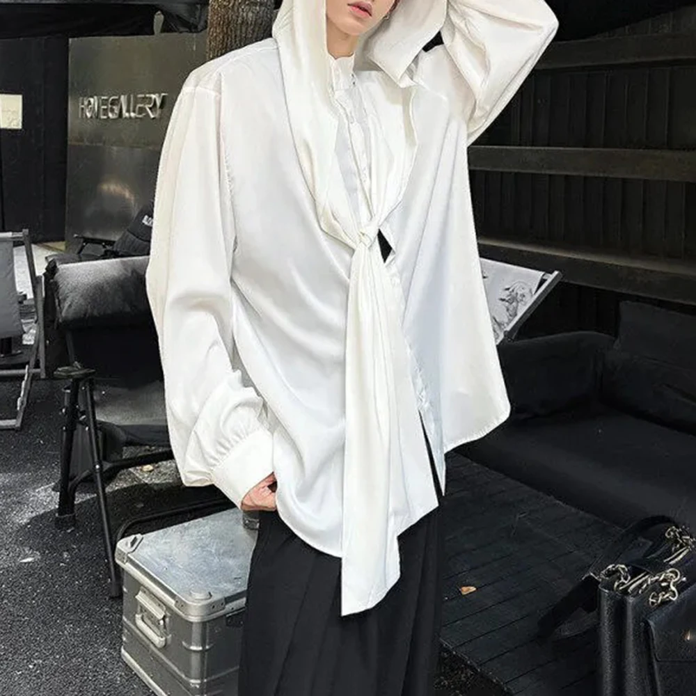 Bonsir Mens Shirts Shawl Hooded Casual Shirts Streetwear Fashion Harajuku Old Money Men Luxury Long Sleeve Tops Men'S Clothing