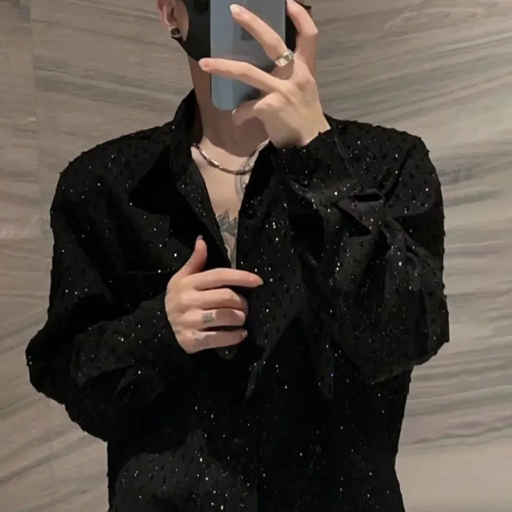 Bonsir Mens Shirts Starry Sky Hot Diamond Shirts Autumn Streetwear Fashion Niche Personality Sequins Performance Tops Men'S Clothing